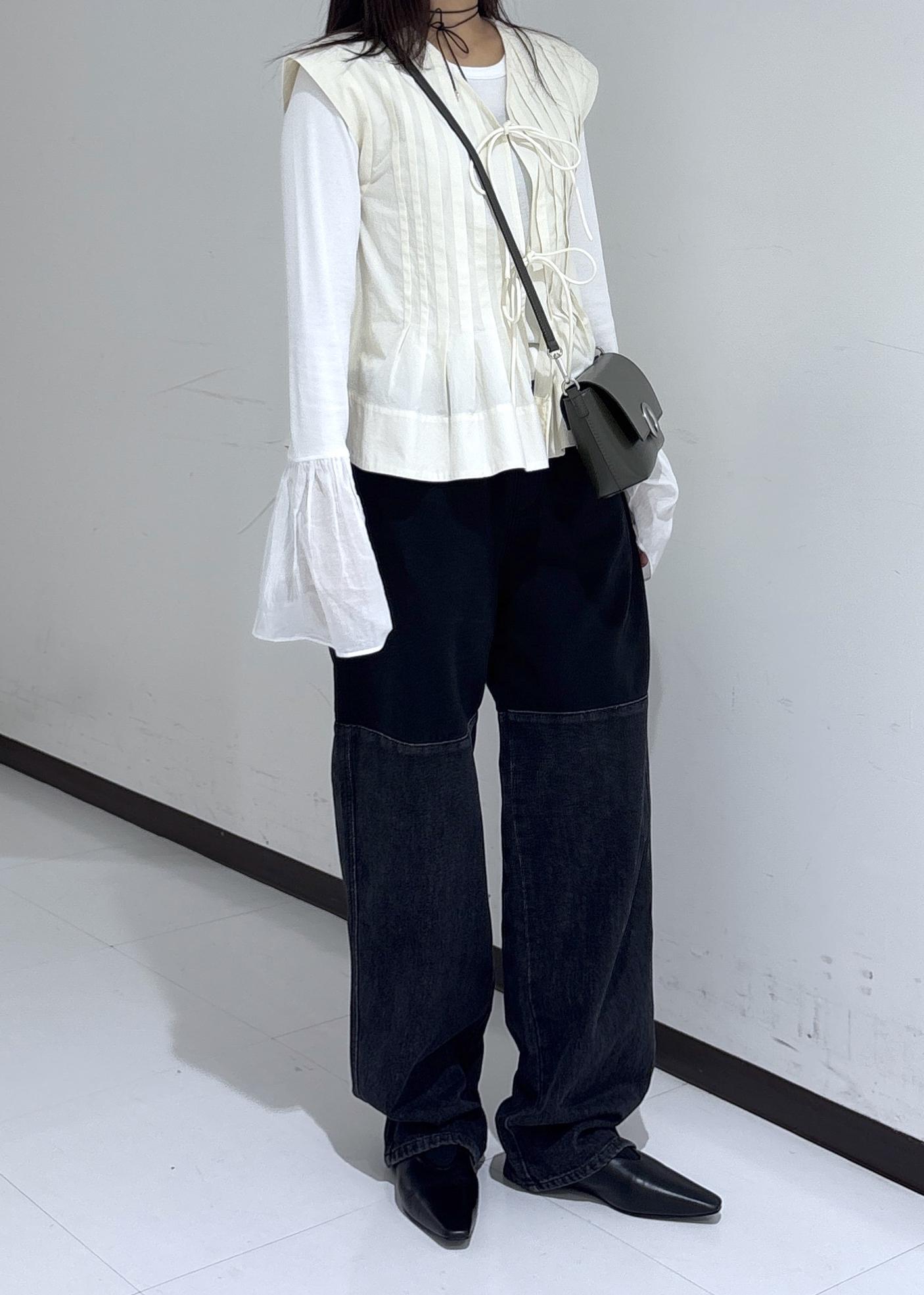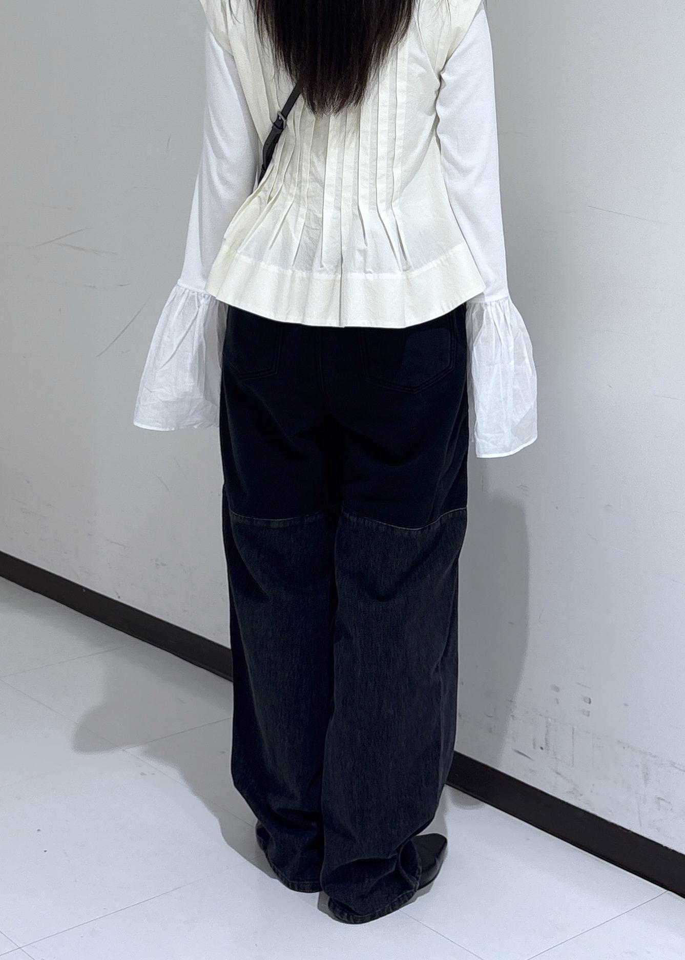 こちらのAMOMENTとコラボしたデニムですが、下がデニム、上がスウェットのデザインになっていてデザイン性はありつつもとても合わせやすいパンツです。