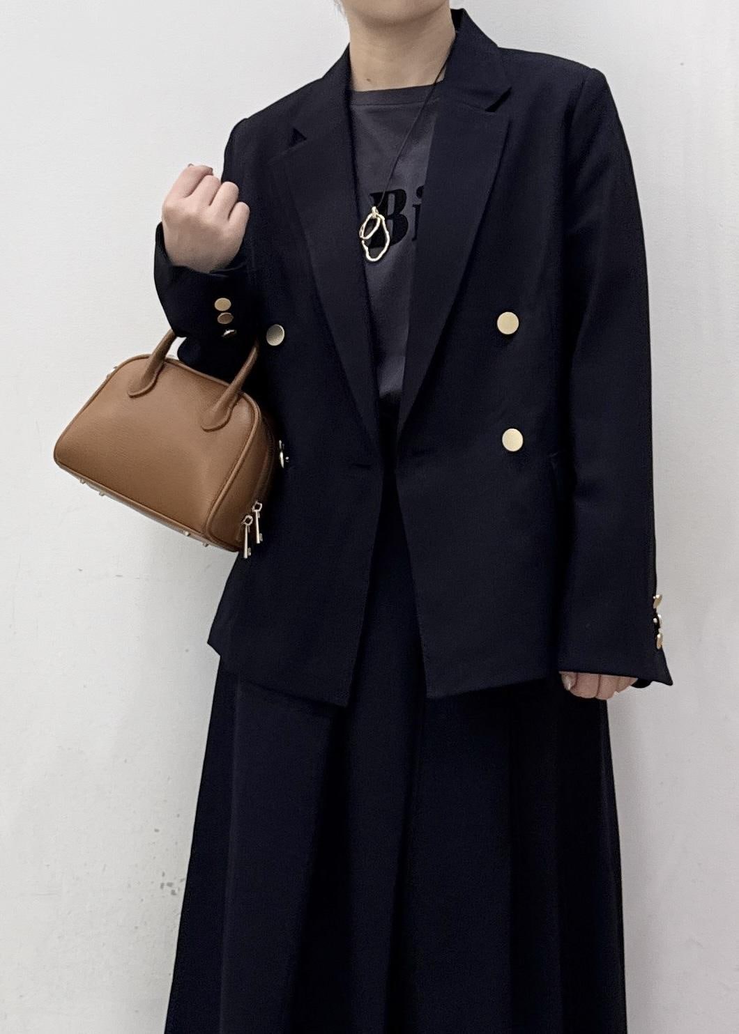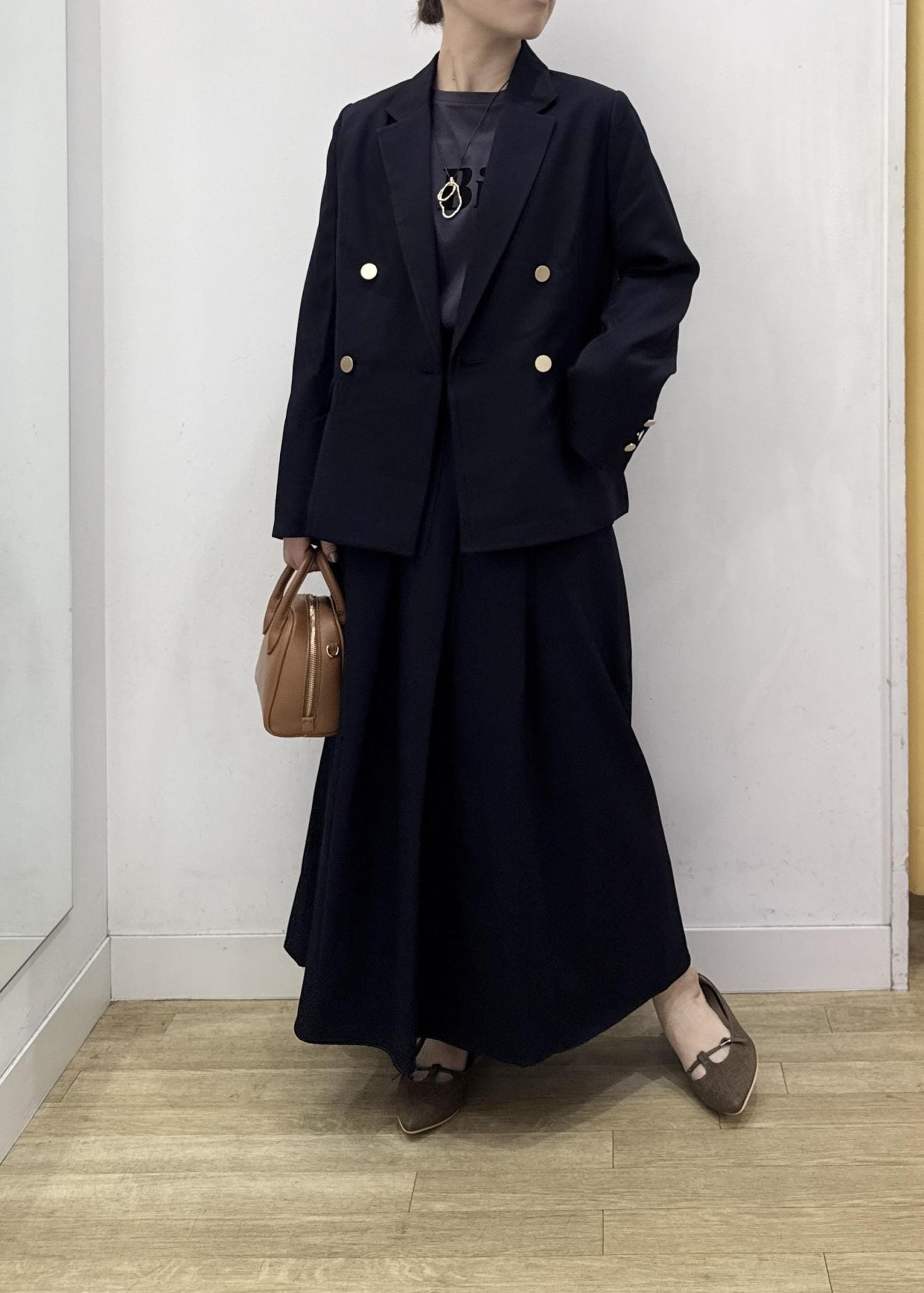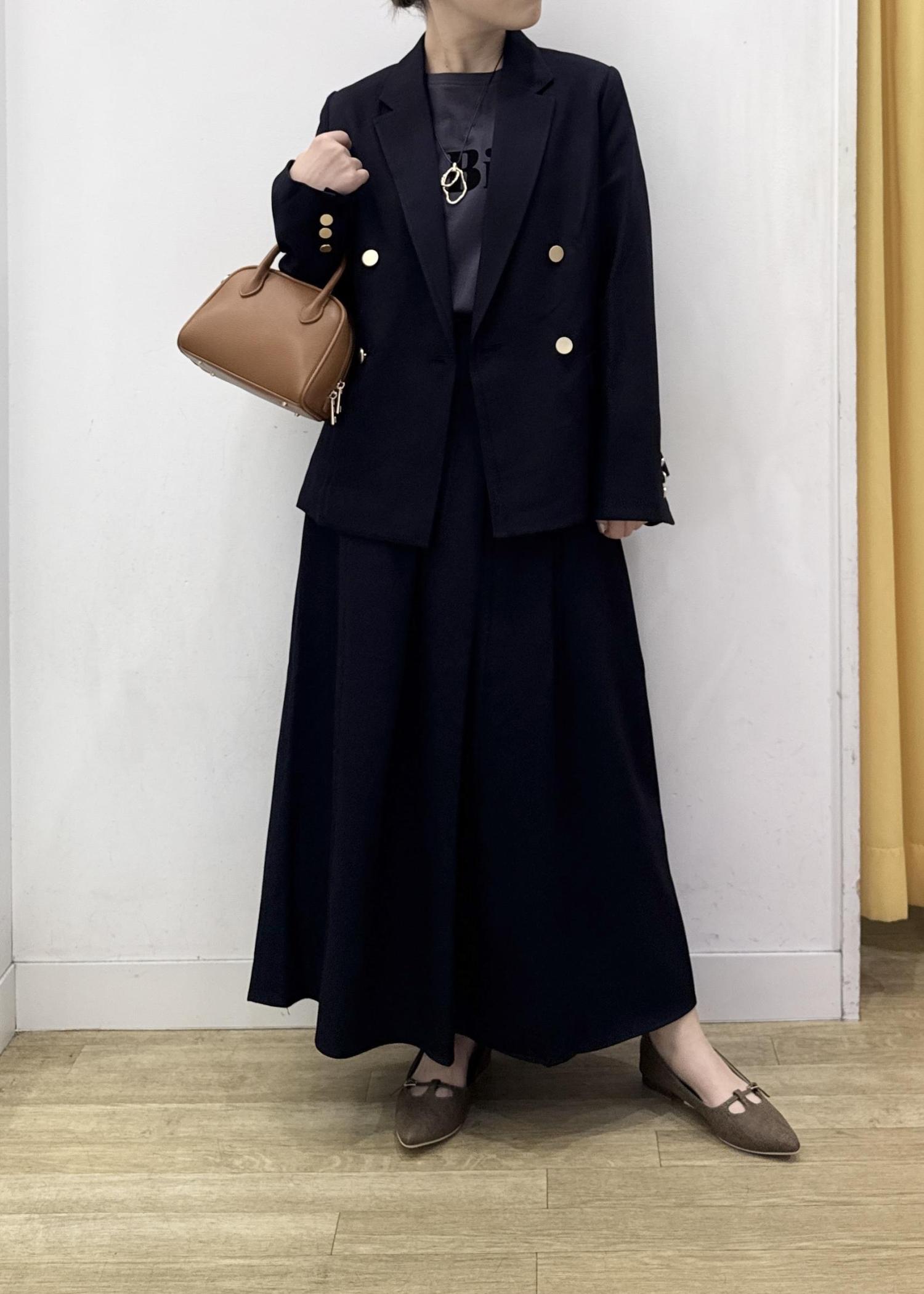 着丈はヒップにかかるぐらいの長さで、スカート、パンツどちらにも合わせやすい着丈です。 -