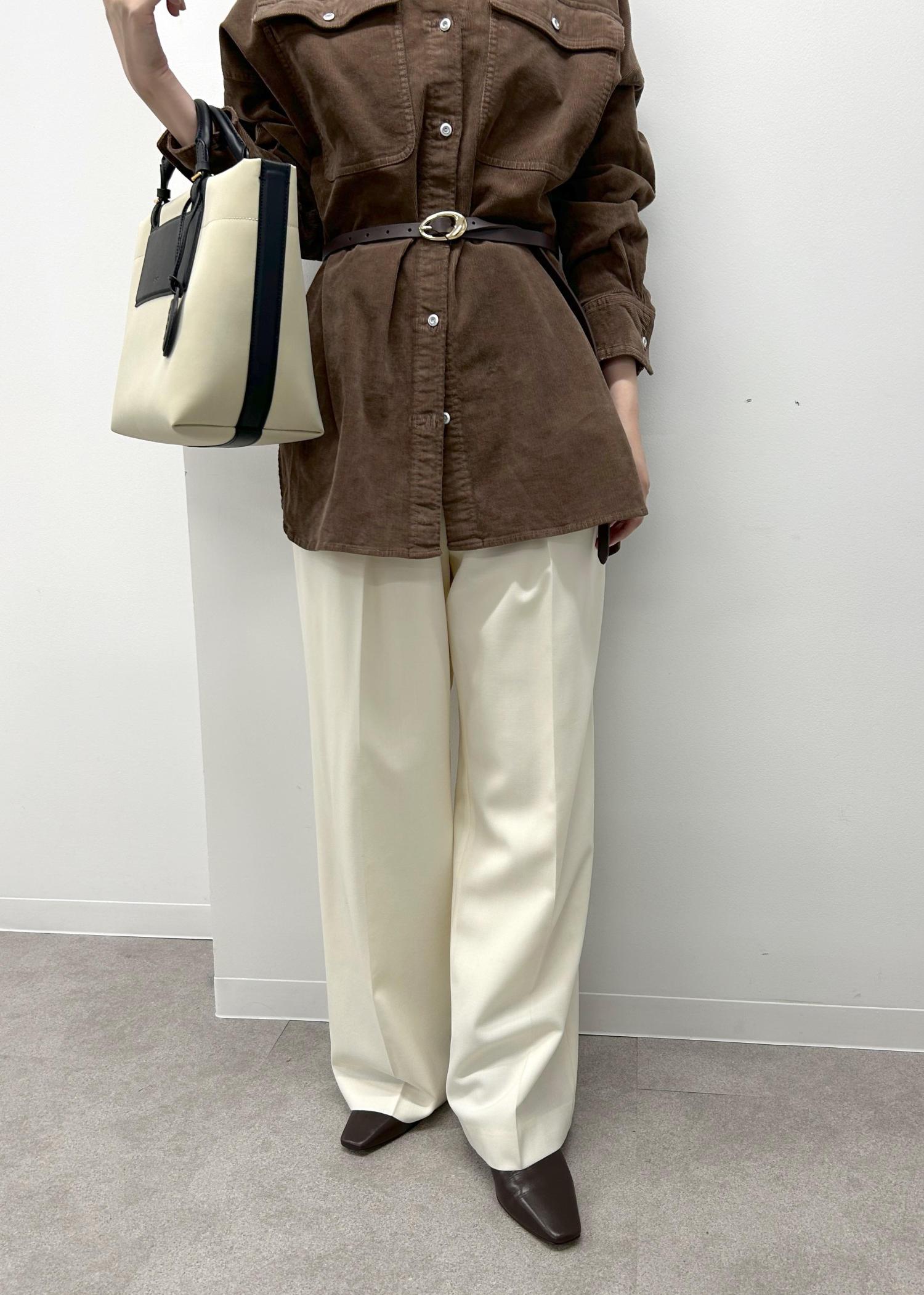 アウトレットROPÉ【撥水】ウールタックトラウザーパンツ【雑誌掲載】ホワイト / 38¥12,650レビュータックが入っているのでウエストはスッキリ見えし、腰回りのラインも拾いづらいです。太めのパンツですが落ち感があるのでシルエットが綺麗に見えます。