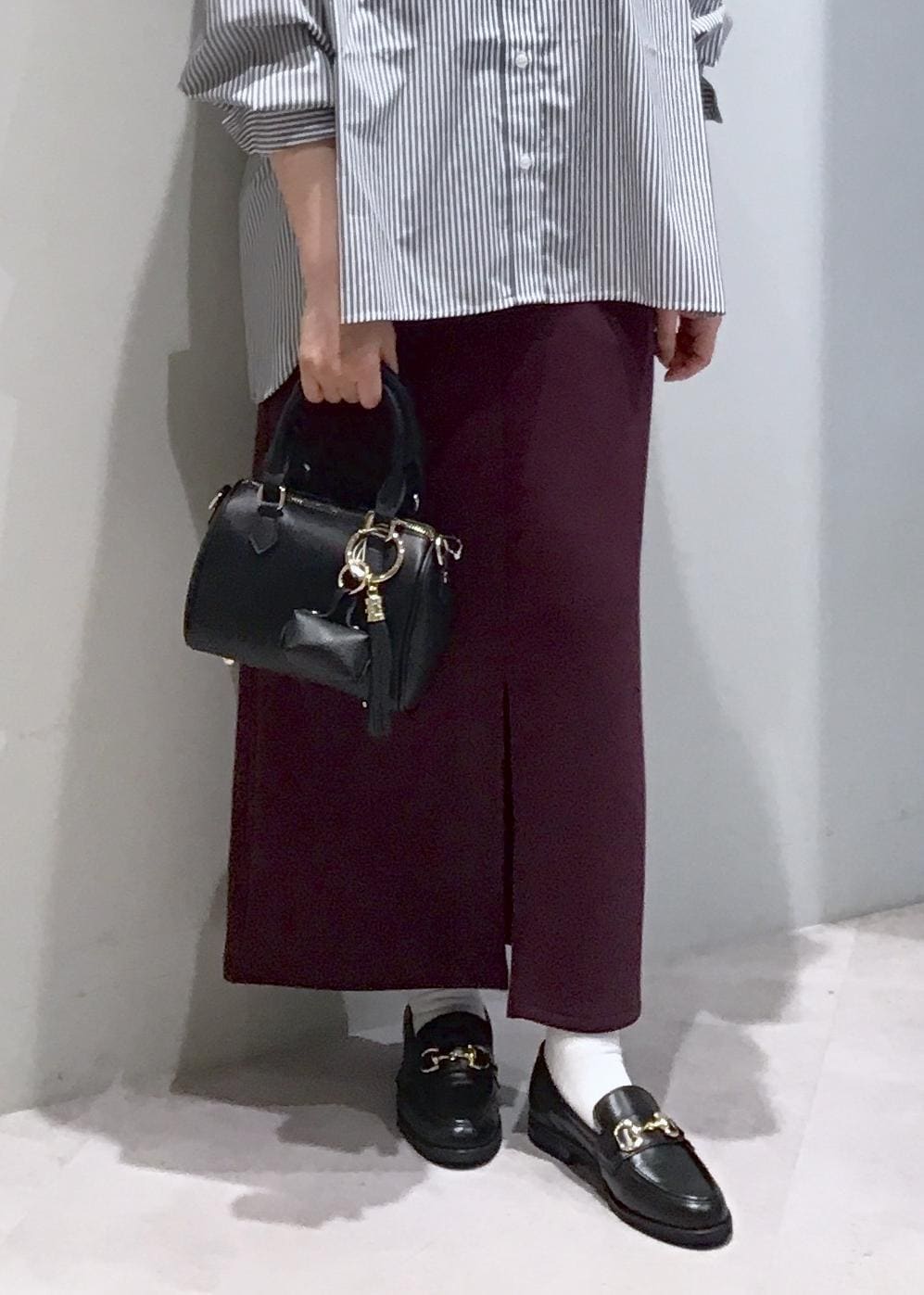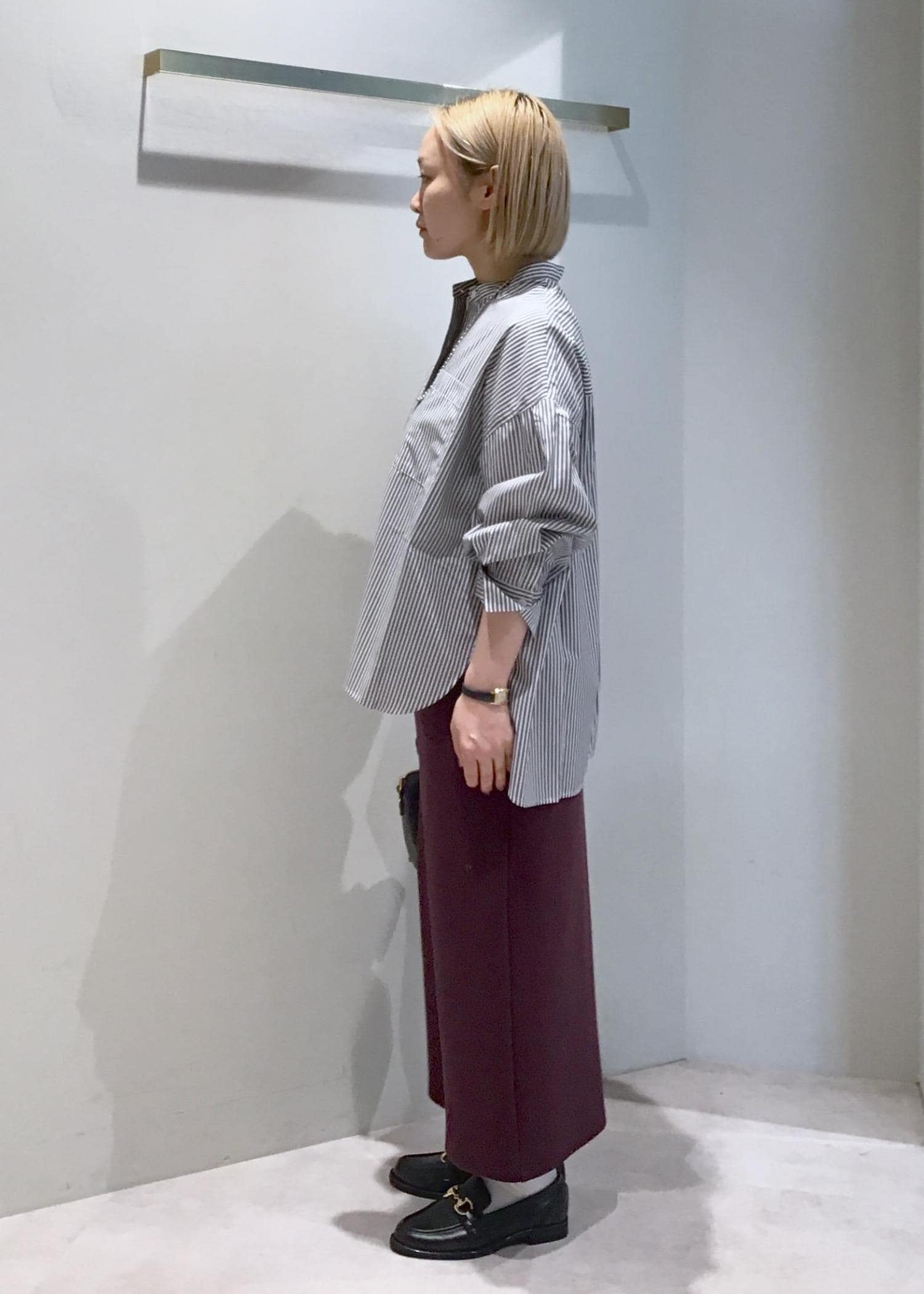ボルドーのボトムと合わせて秋カラーでコーディネートしました。