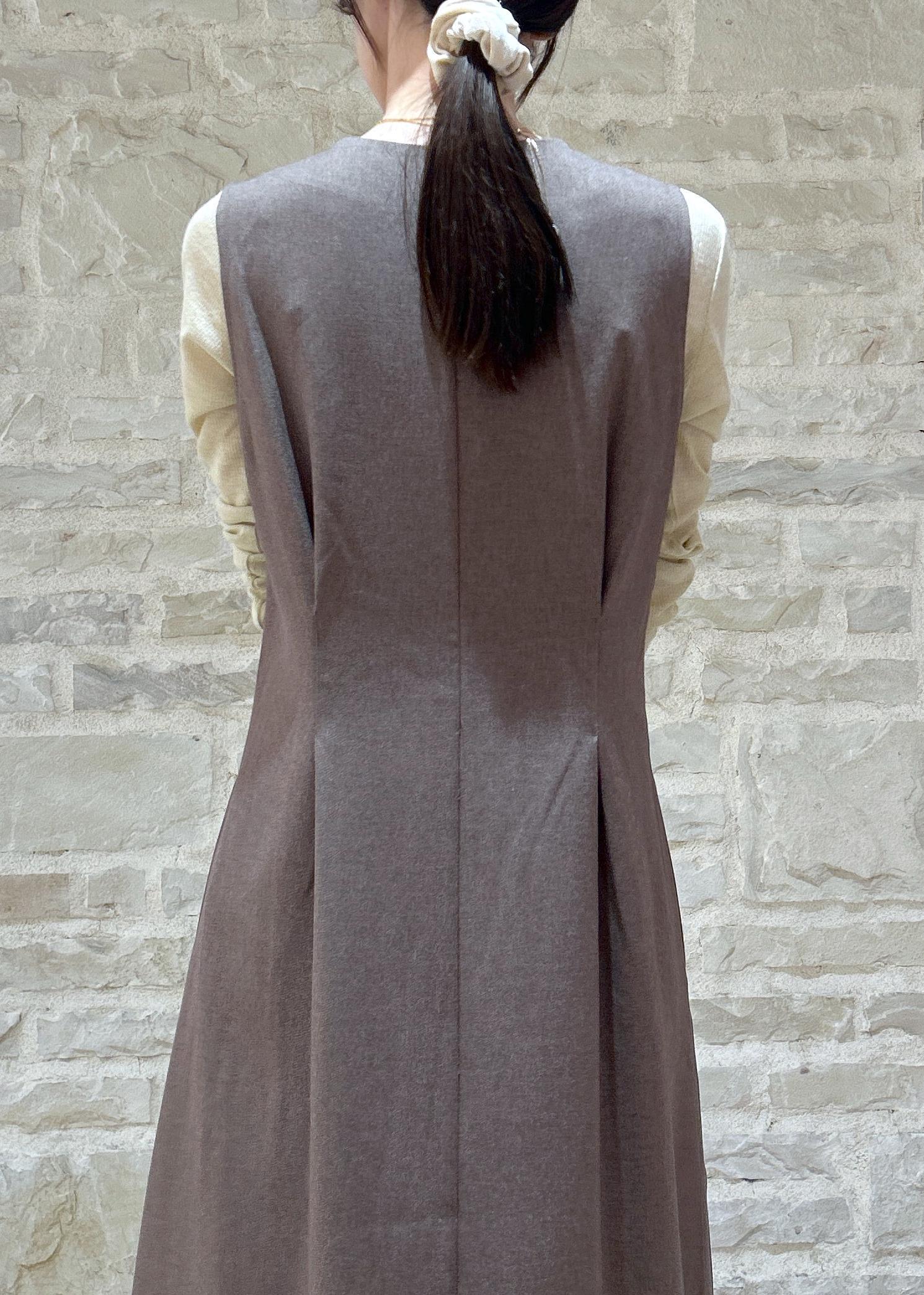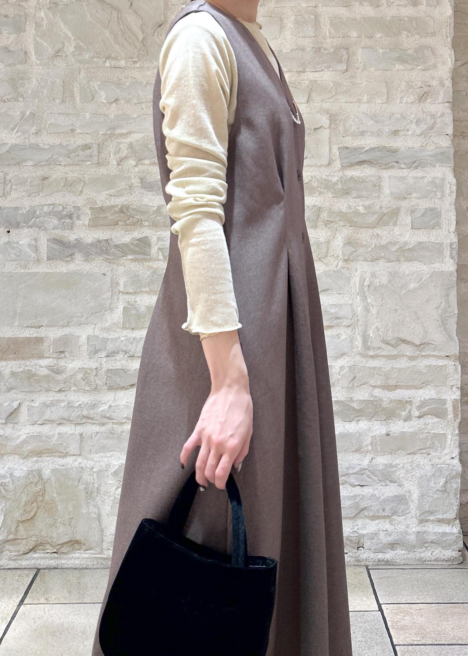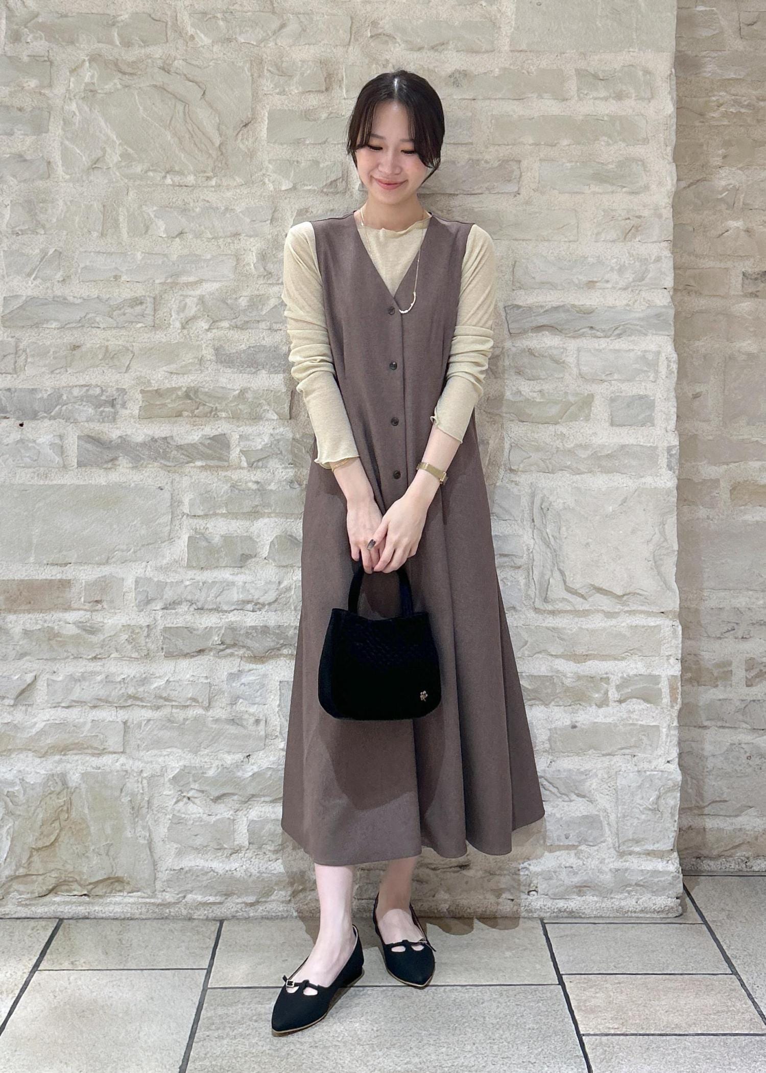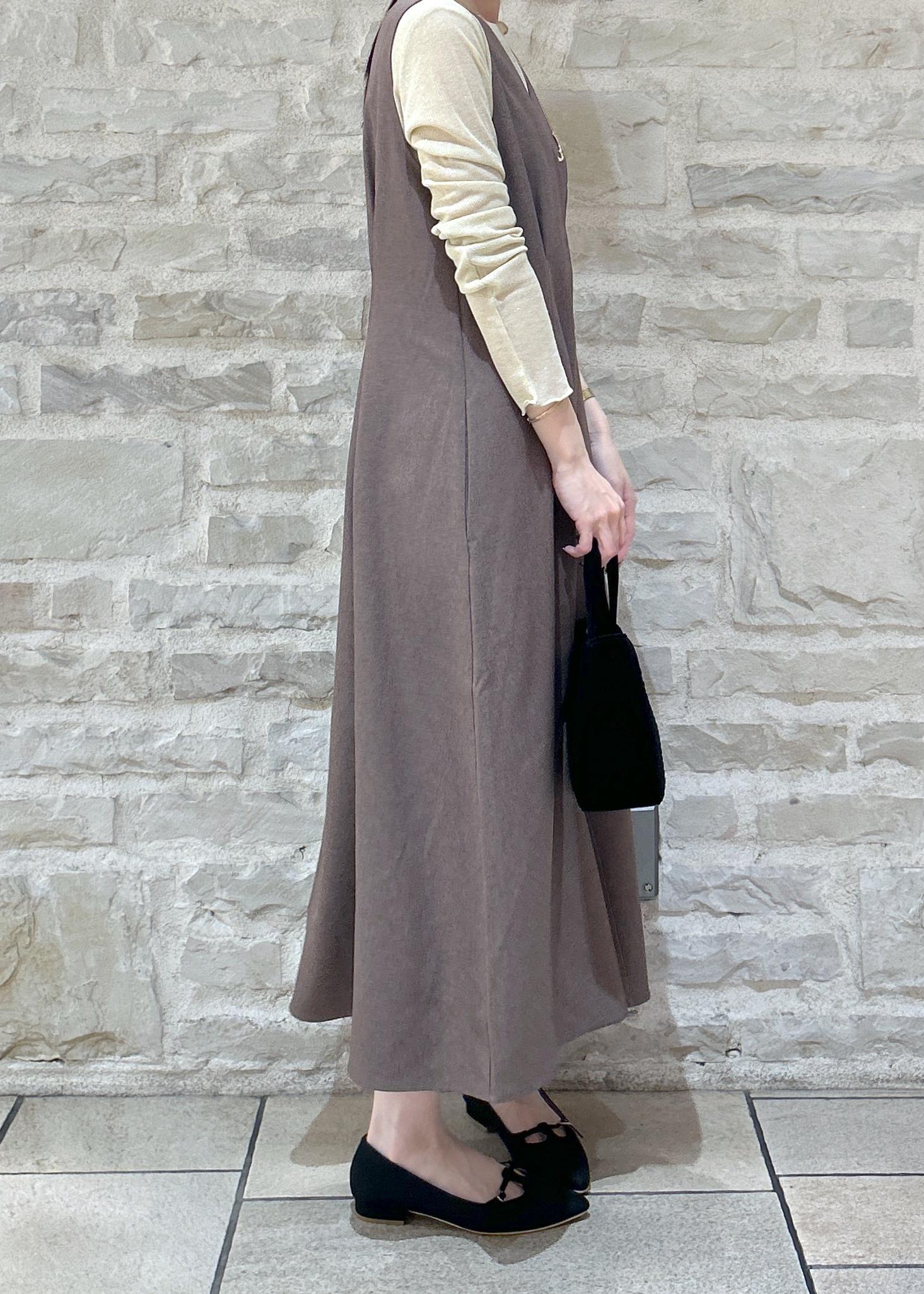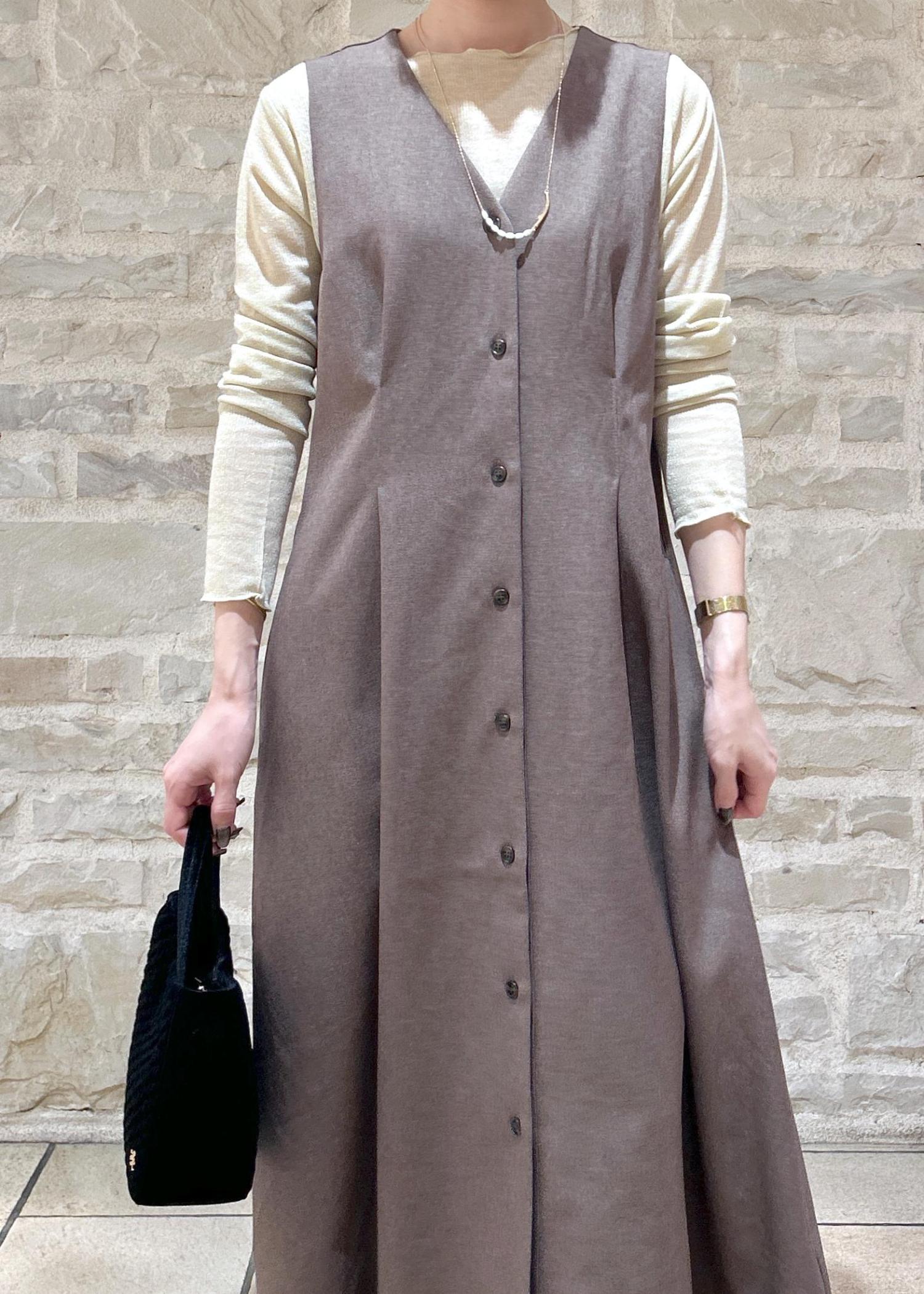 ブラウンのワンピースにラメのシアーインナーで秋のお出かけスタイリングにしました。