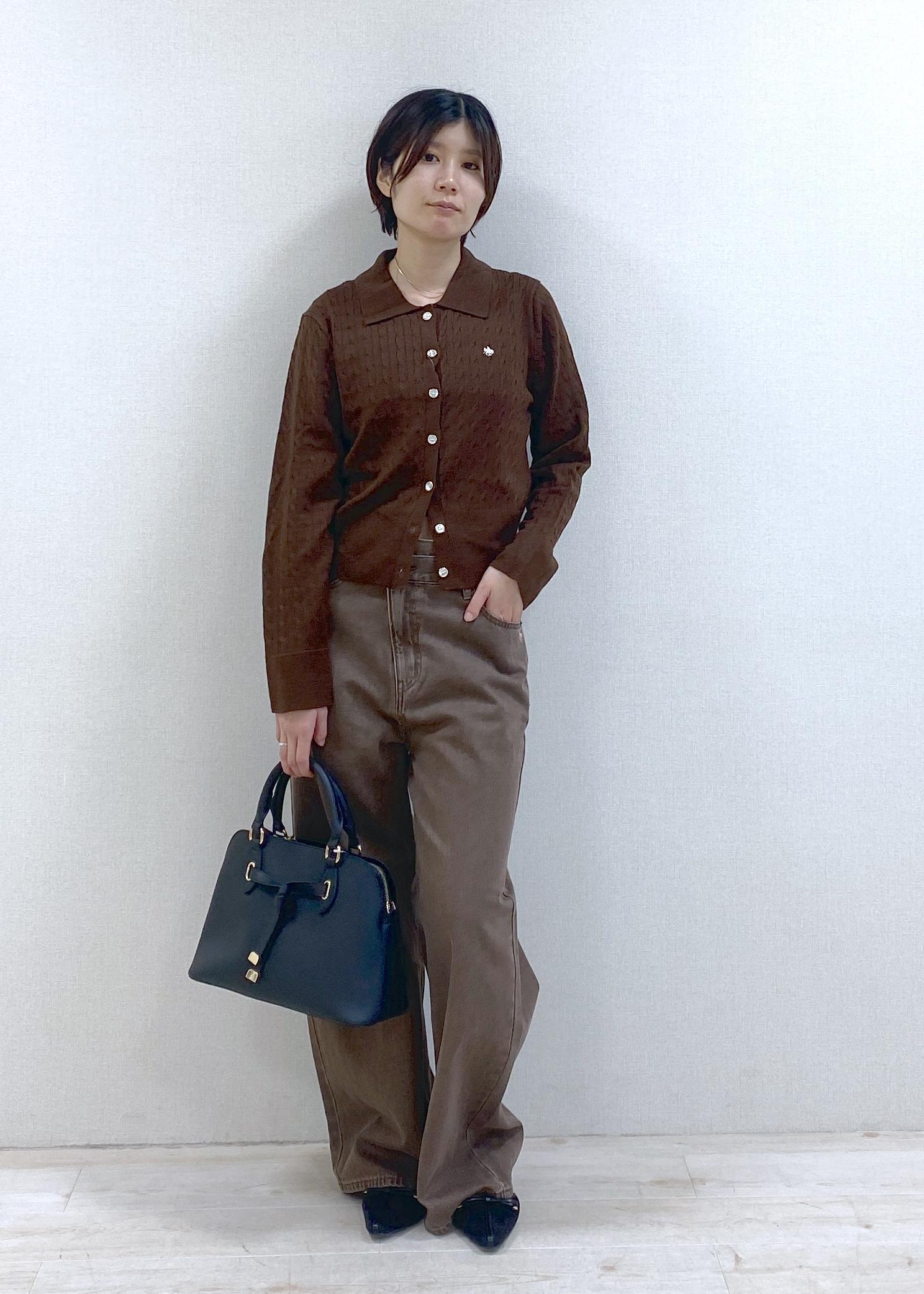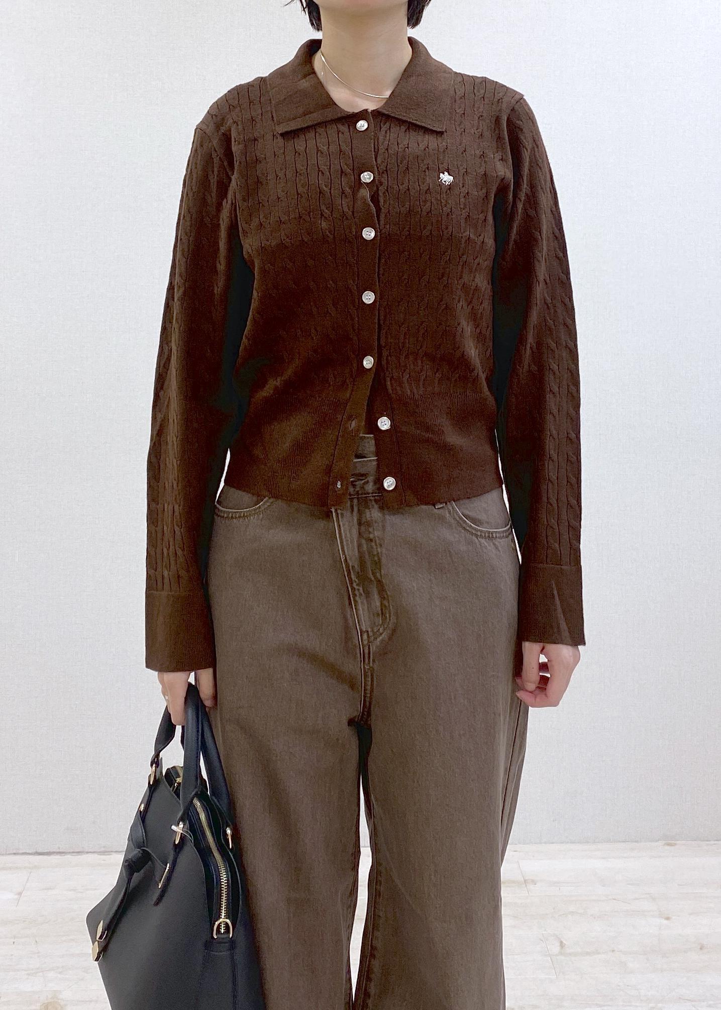 VIS【POLO BCS】VIS別注ミニケーブルポロ襟ニットカーディガンダークブラウン / F¥7,150レビュー襟付きのケーブルデザインがトレンド感あり可愛いです。