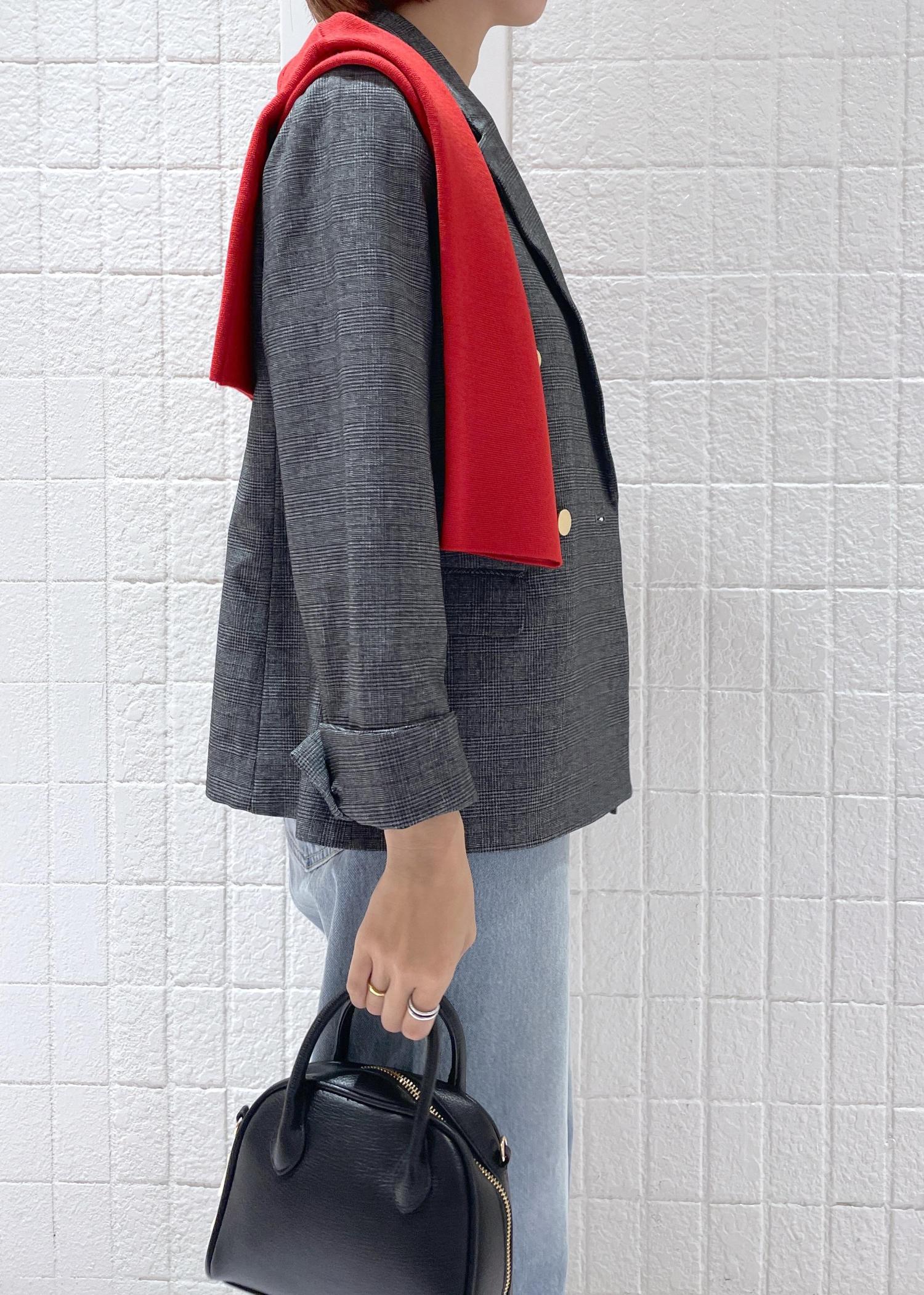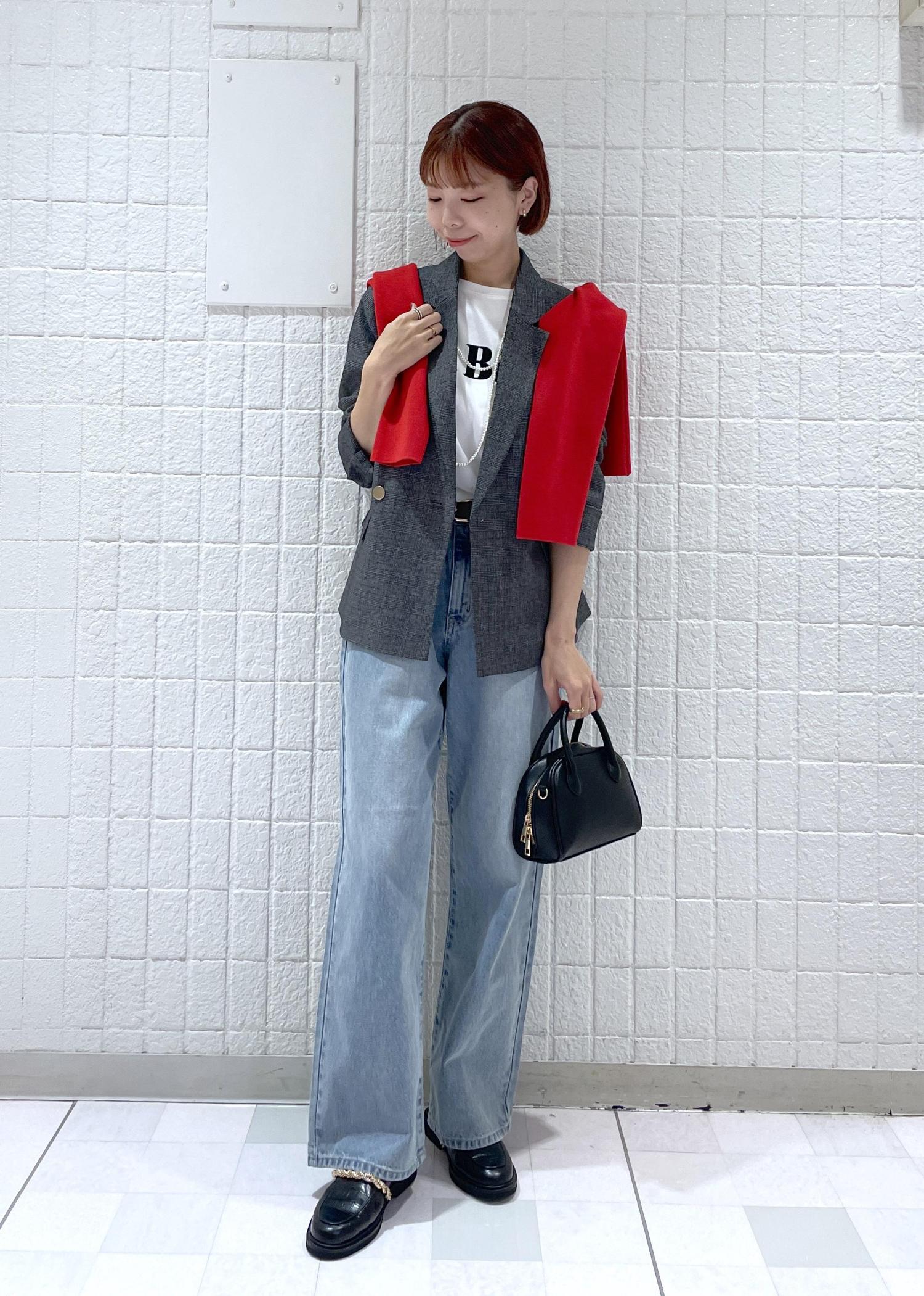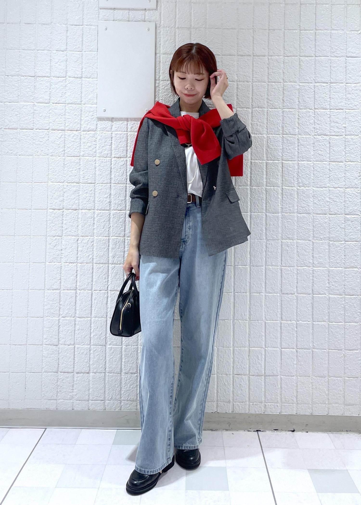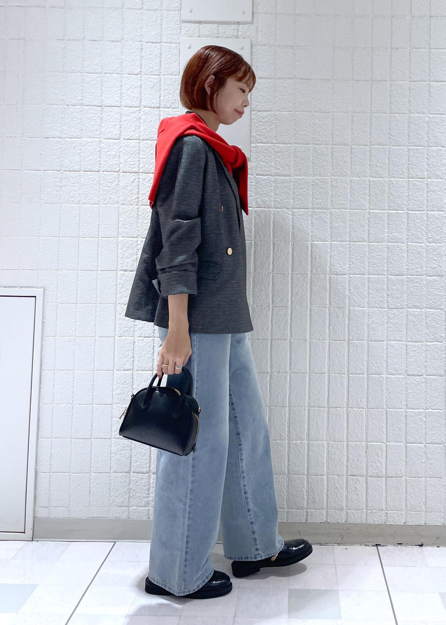 肩まわりはインナーに薄手のニット合わせでジャストサイズでした。