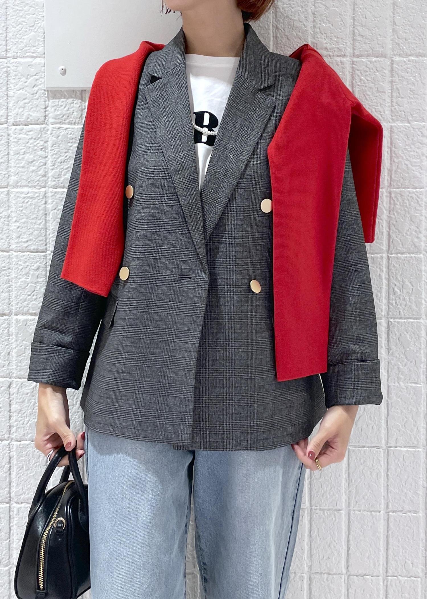 金ボタンがアクセントになったクラシカルなデザインなのでオンオフでコーディネートしやすく、