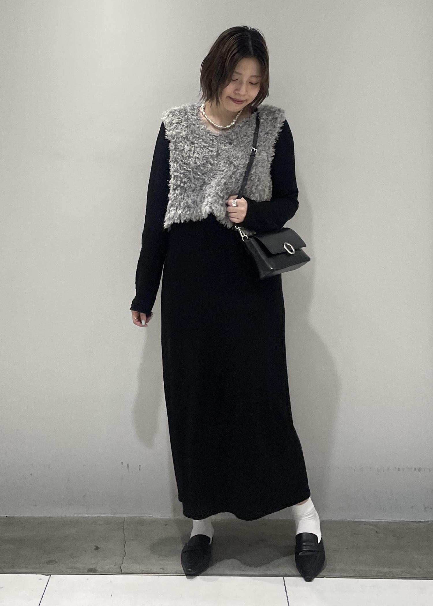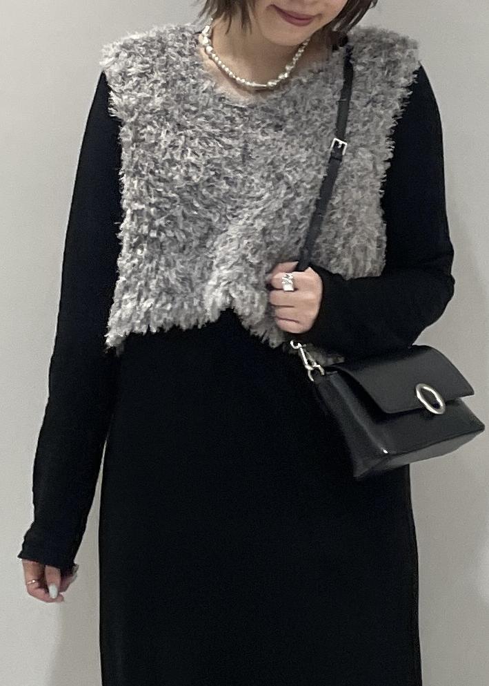 私は今回ワンピースにふわふわのショートベストを合わせて秋冬のムードを出してみました!!