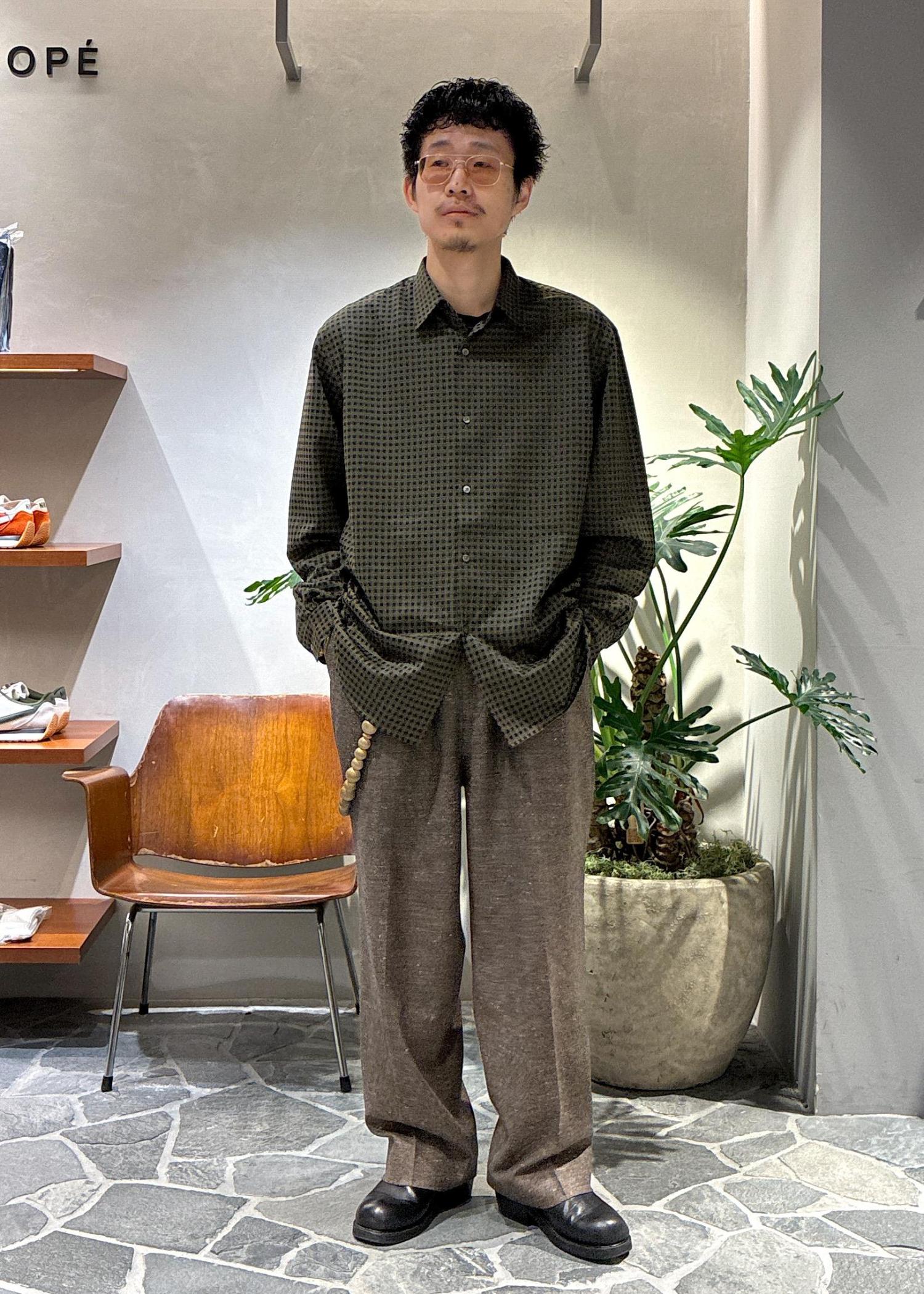 インナーにはKANEMASA PHIL.のシャツ、ボトムスにはハードクロススラックスと、個人的に今季のかなりお気に入りなアイテムたちで合わせてみました