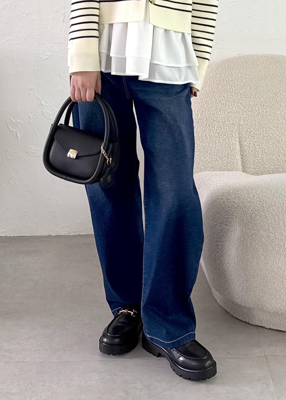 小物はブラックで合わせて、統一感を出しているのがポイントです。