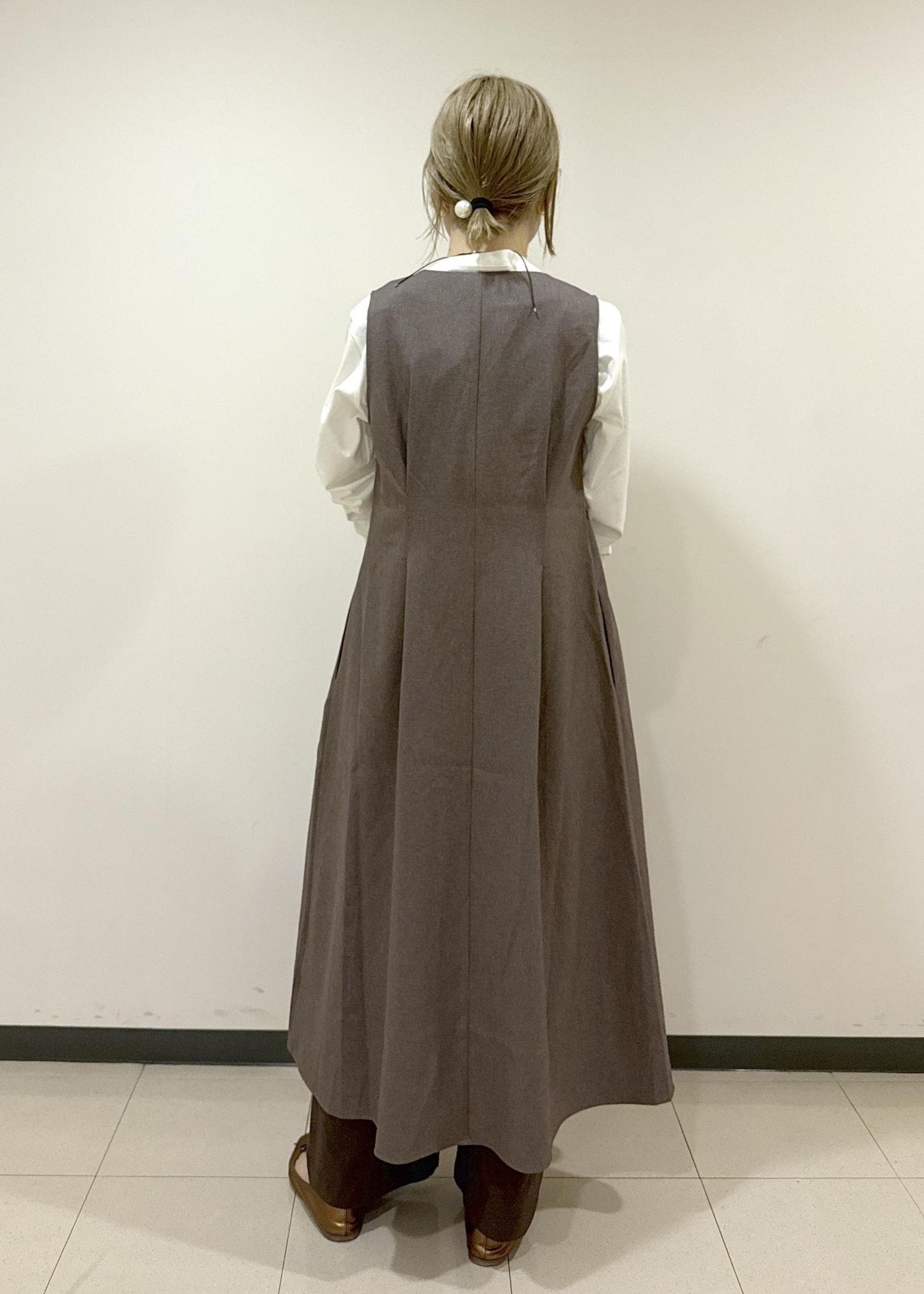 ROPÉ PICNICレディハンサムシリーズ ウールライクウエストタックジャンパースカート/セットアップ対応ベージュ系 / F¥7,491レビュー今回は羽織として着てみましたが、ウエストマークされているので着るだけですっきり見えます。