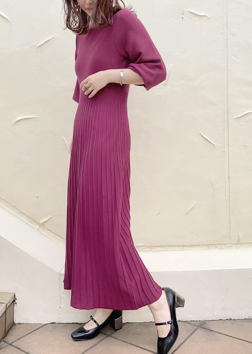 プリーツが縦のラインをすっきりと魅せるワンピースです!