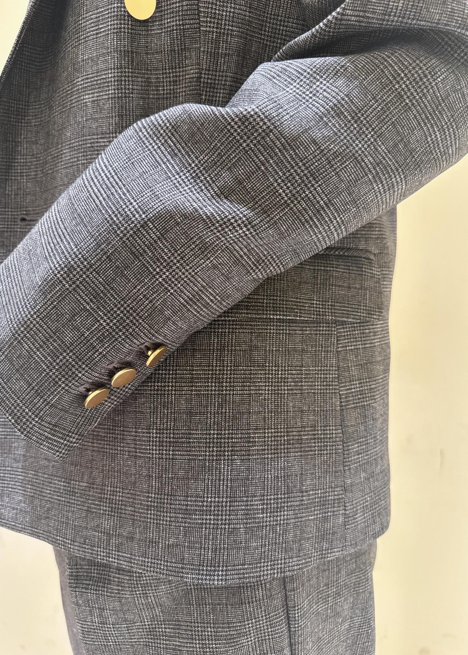 テーラード襟や金ボタンでカチッとした印象。