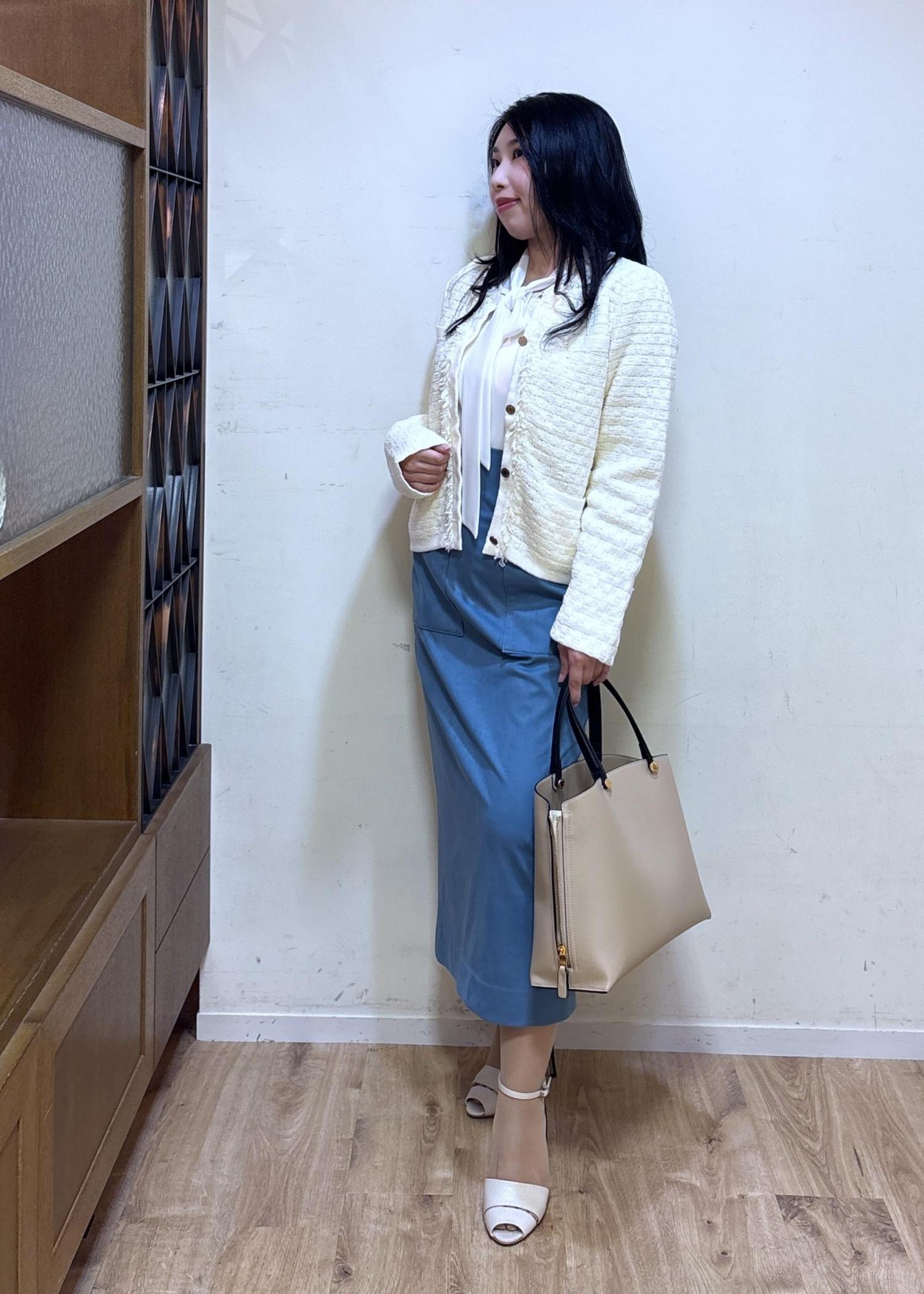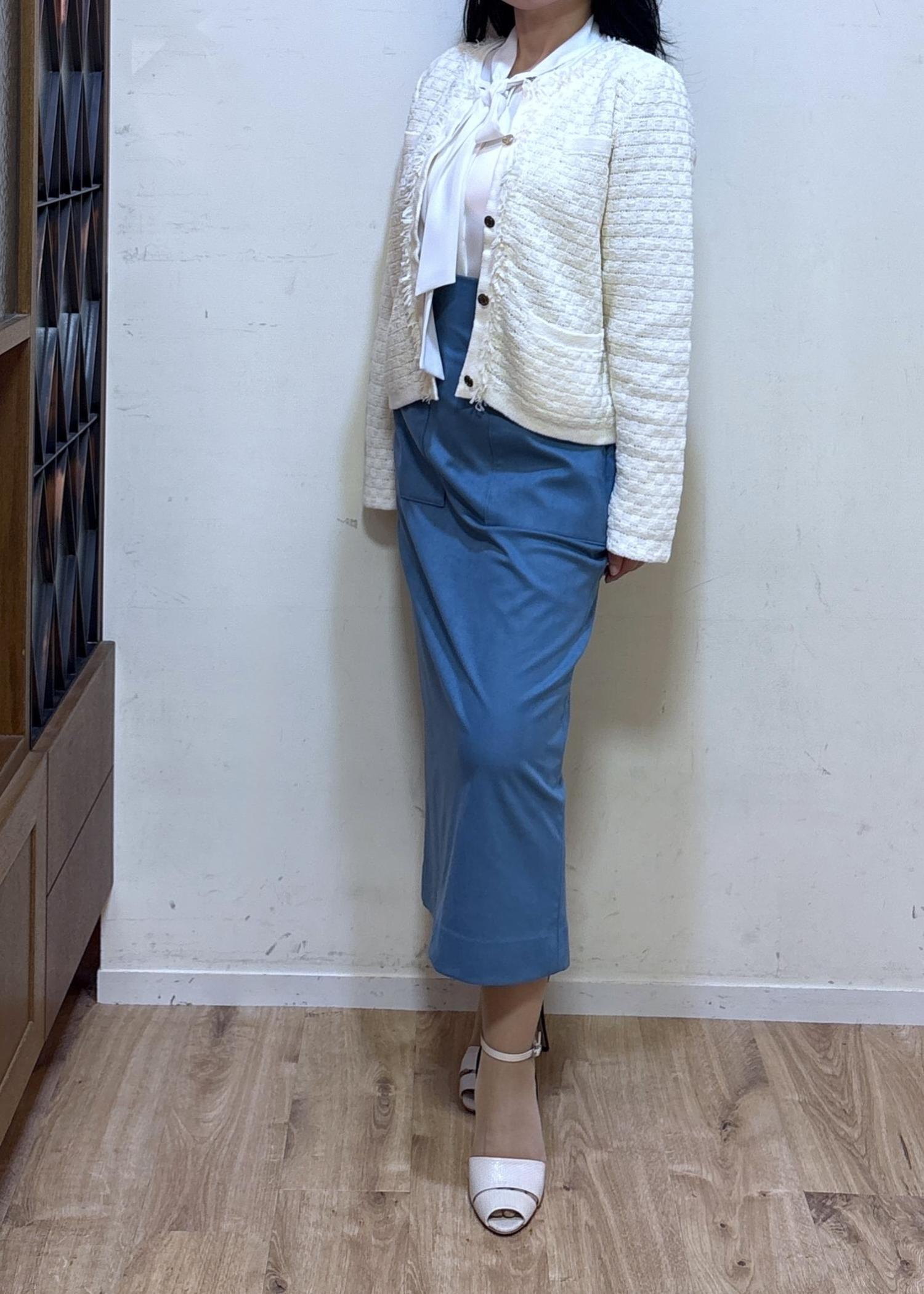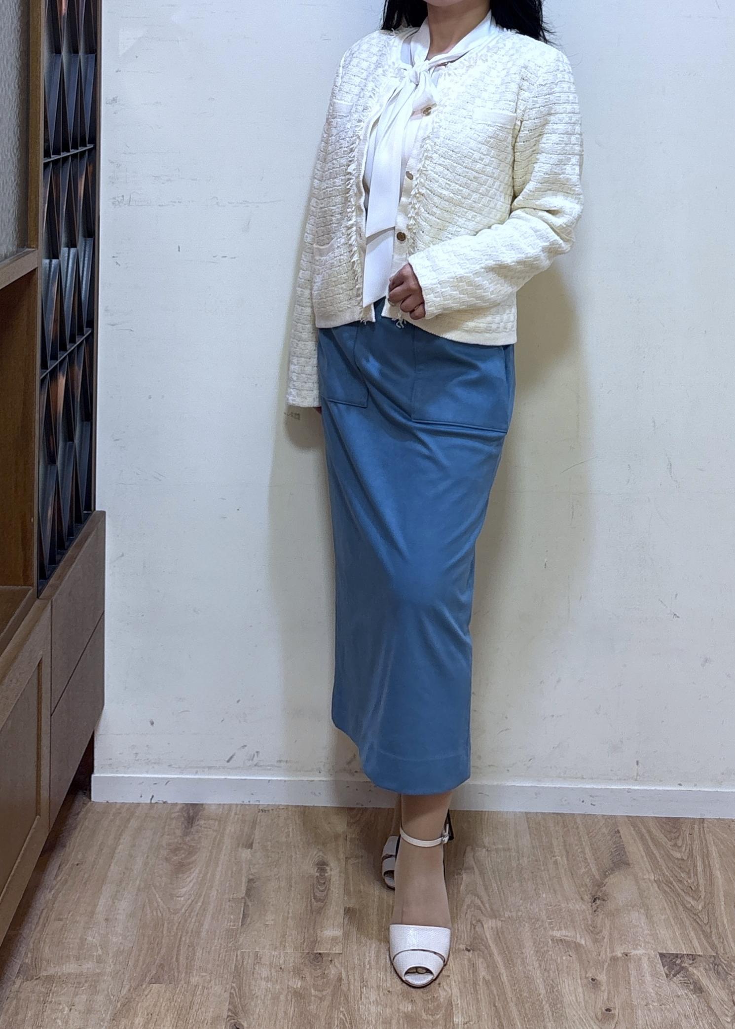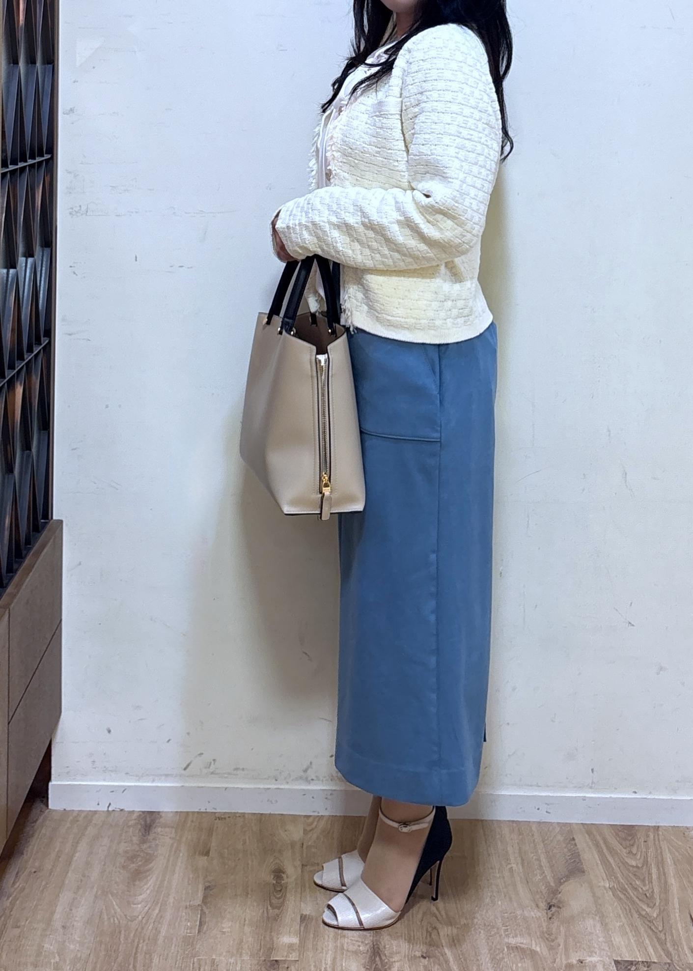 ROPÉ[美人スカート]スエードポケット付きタイトスカート/イージーケアブルー / 36¥25,300レビュー身長152cm 36サイズ着用