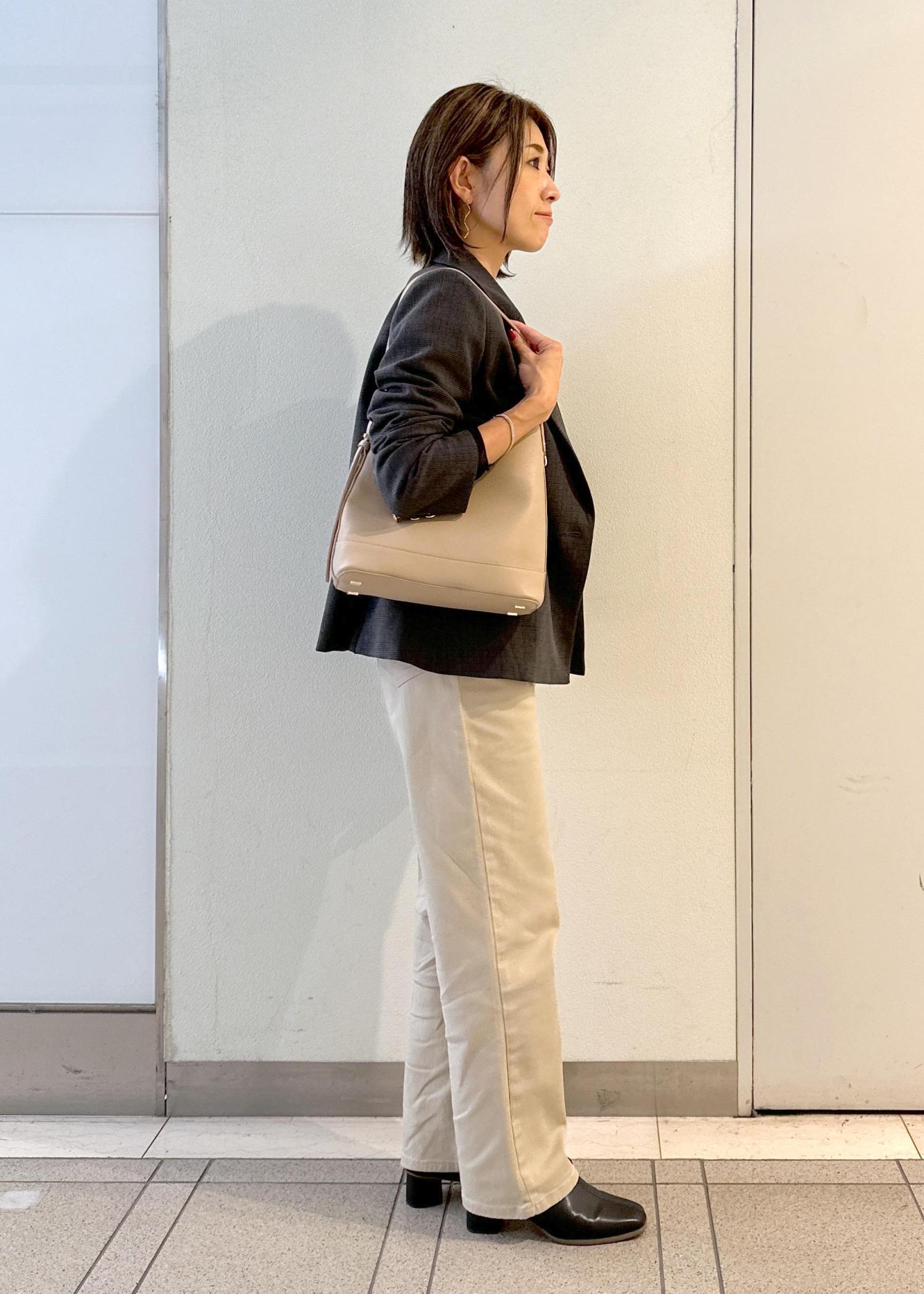 着丈もスッキリとしているので、スニーカーやフラットシューズの合わせもオススメです。 -