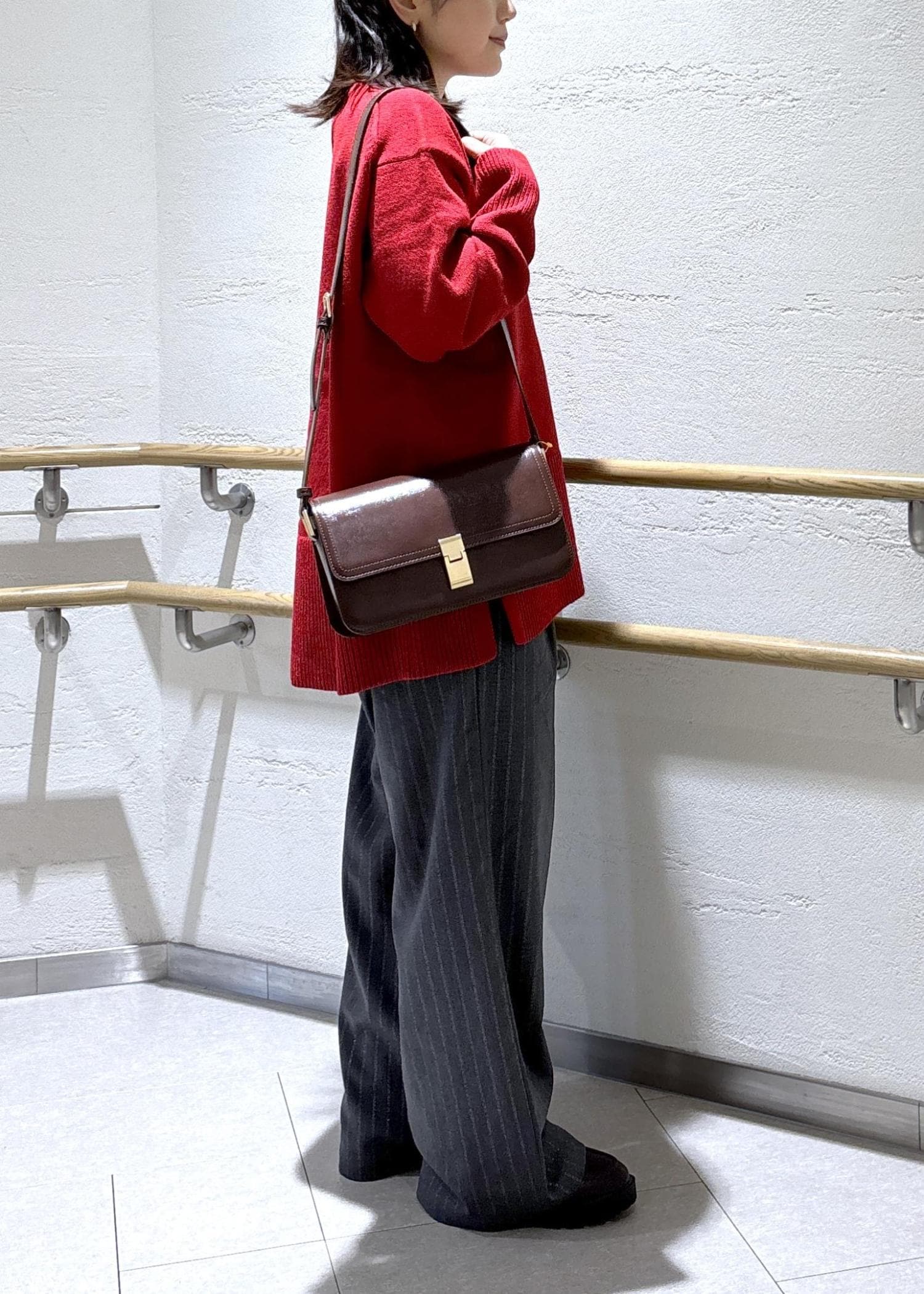 赤をポイントにボトムはイージーワイドパンツを合わせ、リラックス感のあるコーディネートにしました!