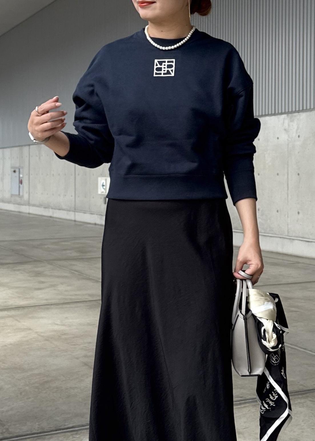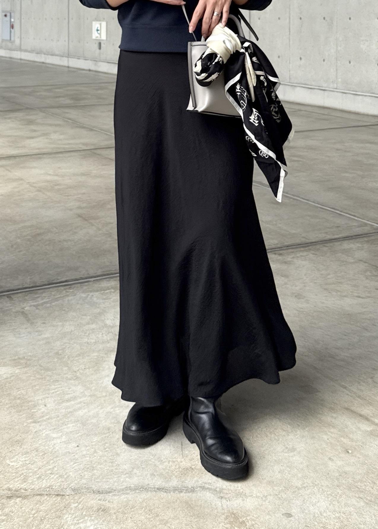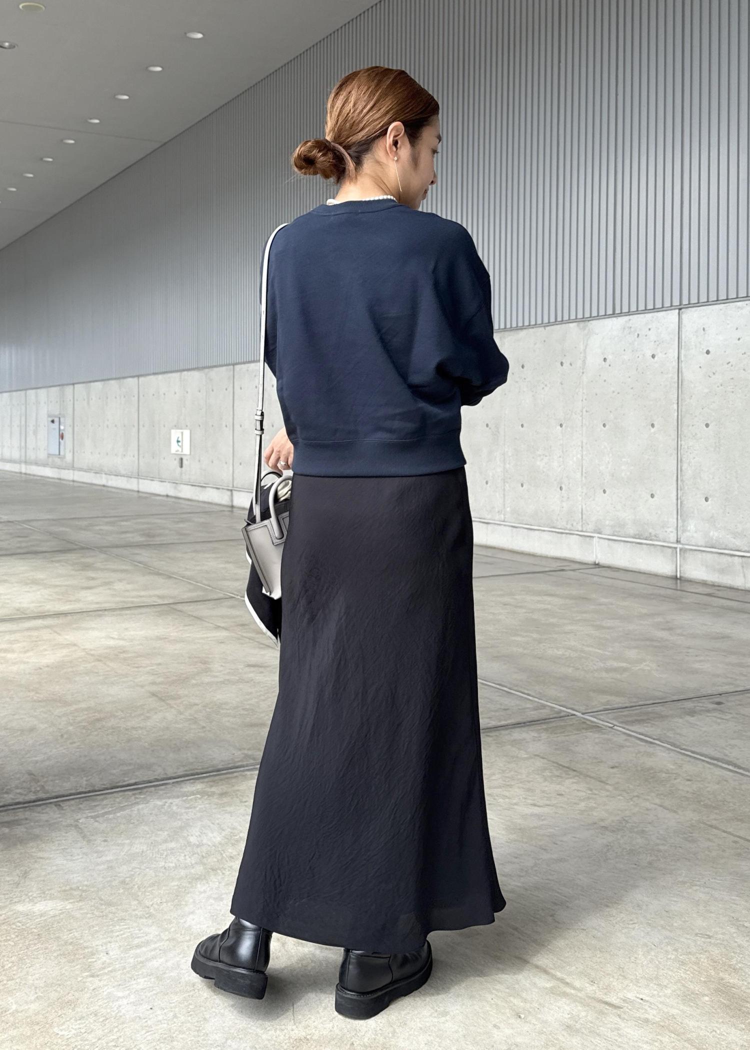 程よいマーメイドラインで、細めのウエストゴムなので着心地よくストレスフリーでお召しいただけます◎