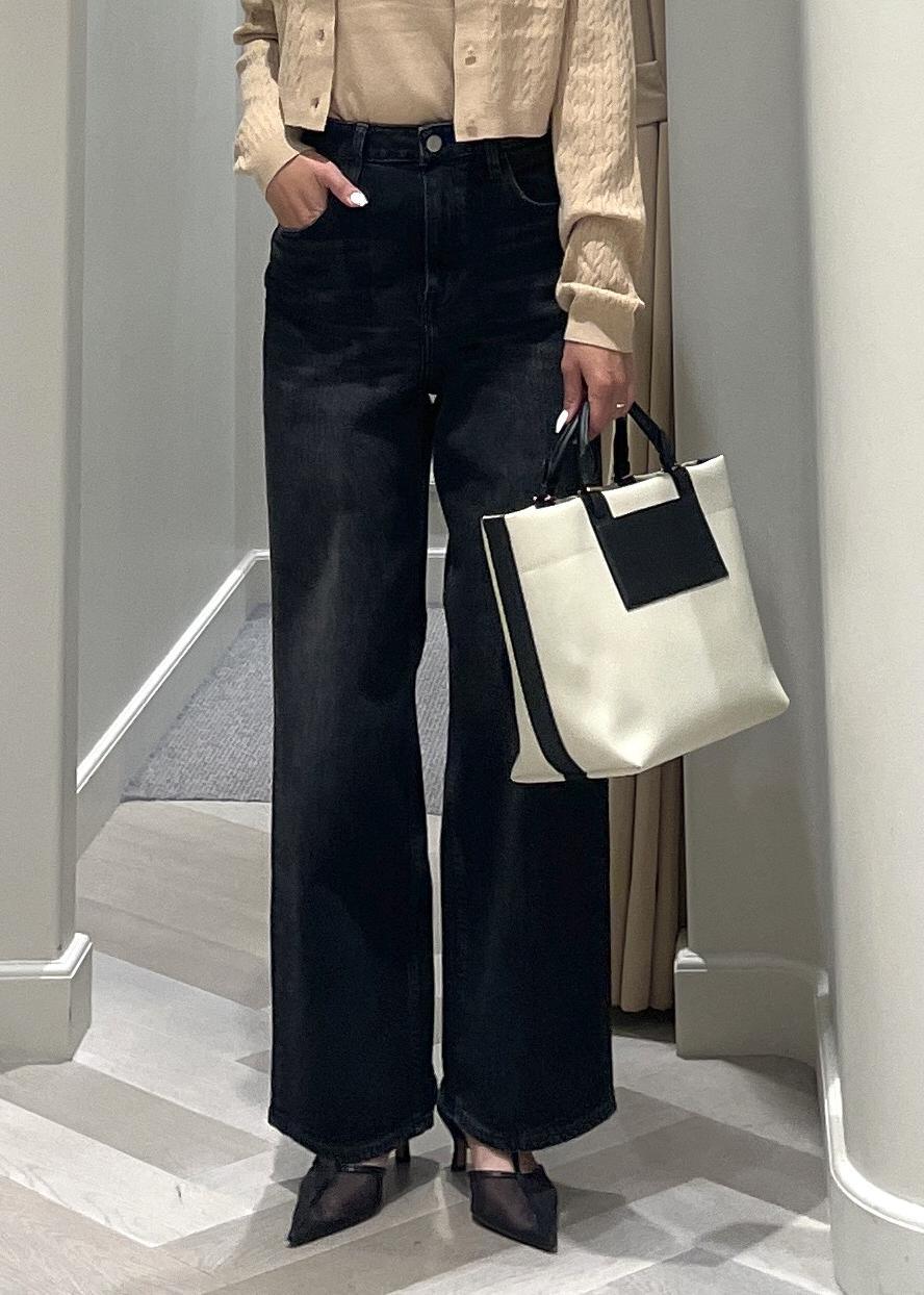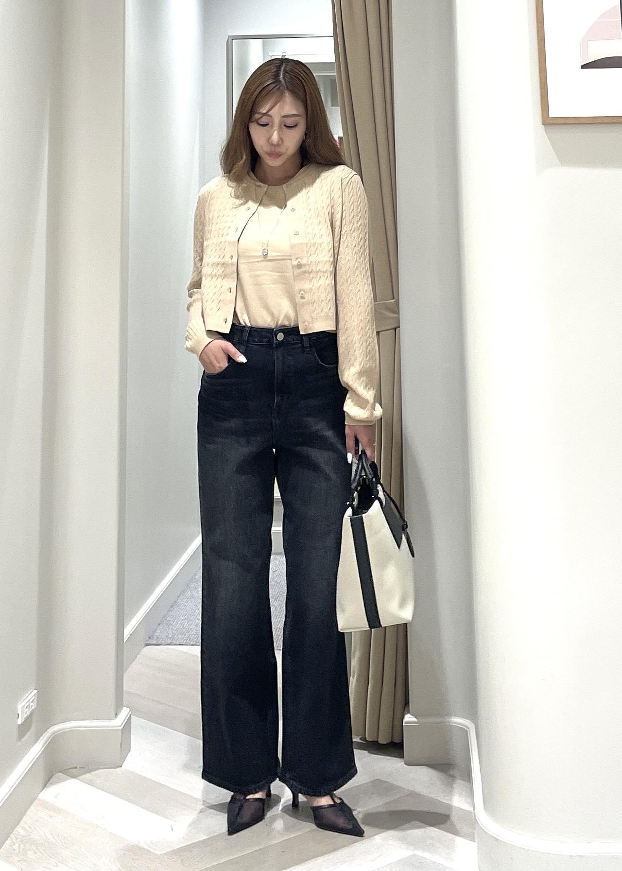 お腹周り表面の凹凸が無く、ラインが綺麗で足長効果あり。裾の長さは、ローファーなど5cm程の高さを履いて、ちょうど床に擦らないくらい。