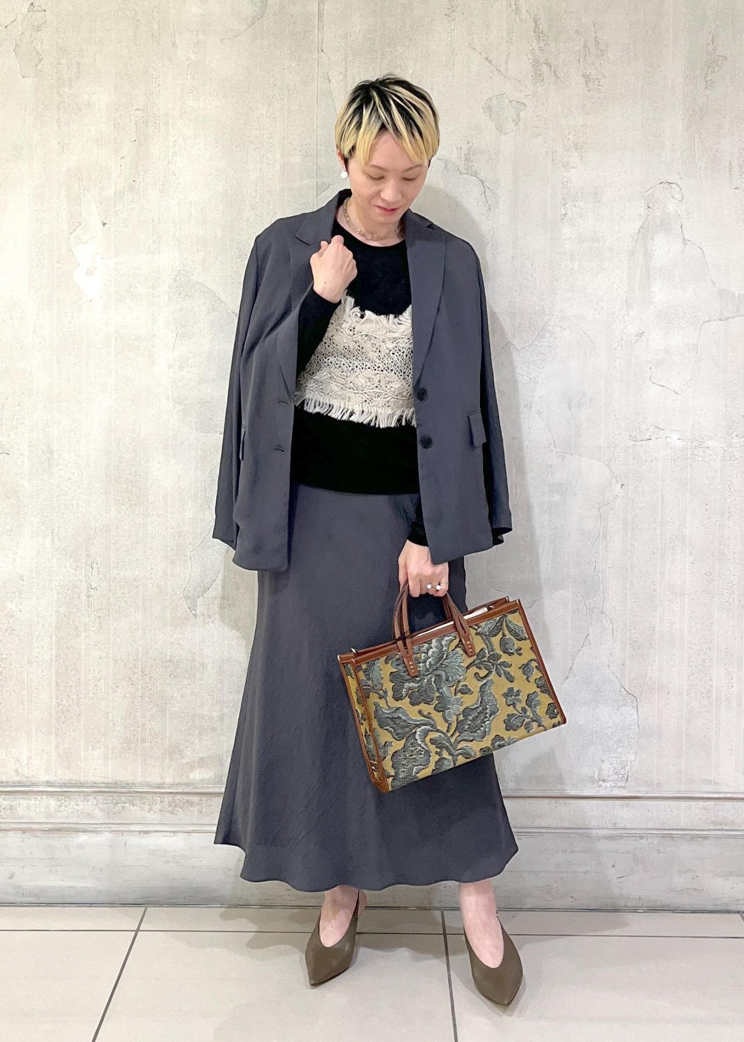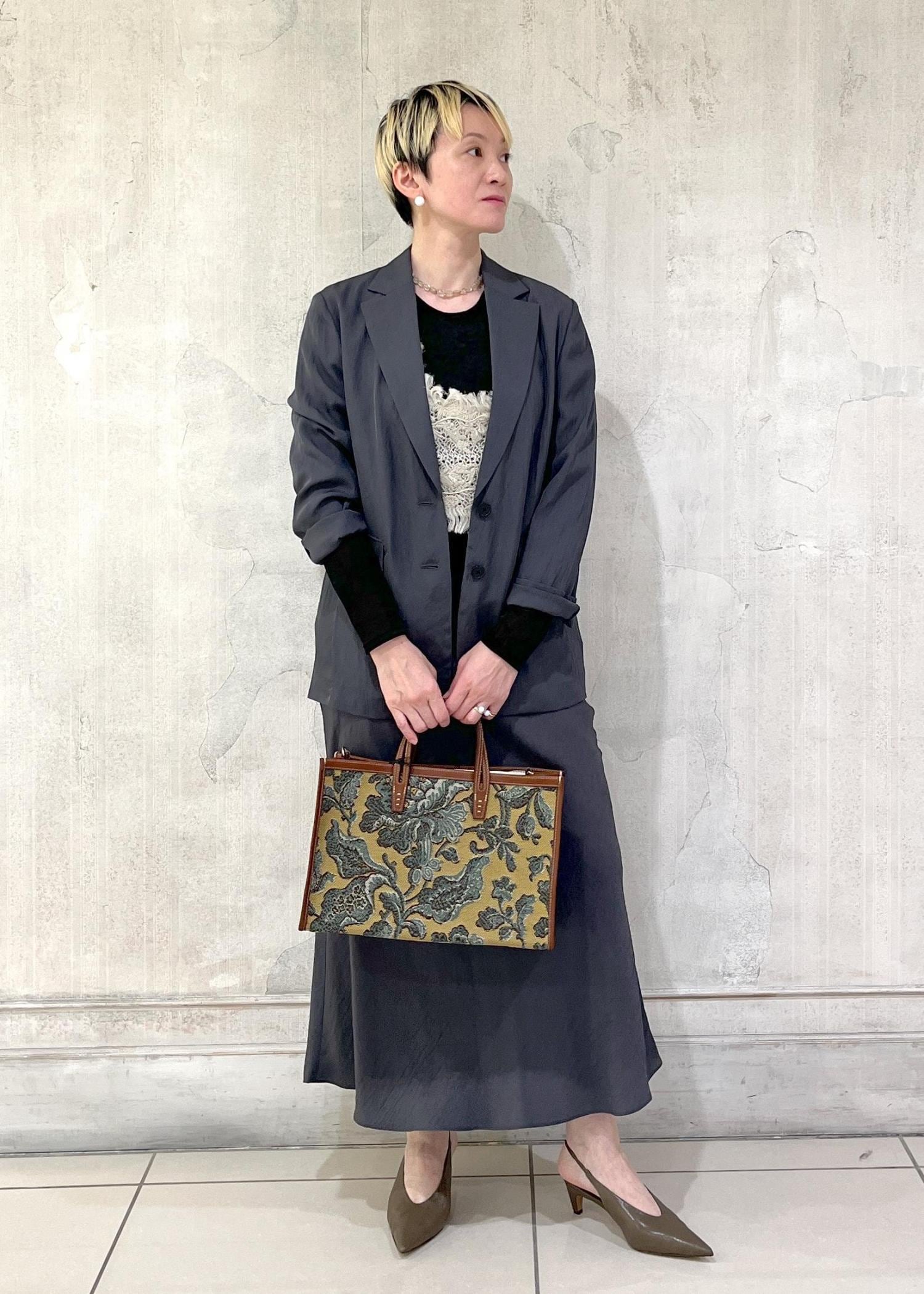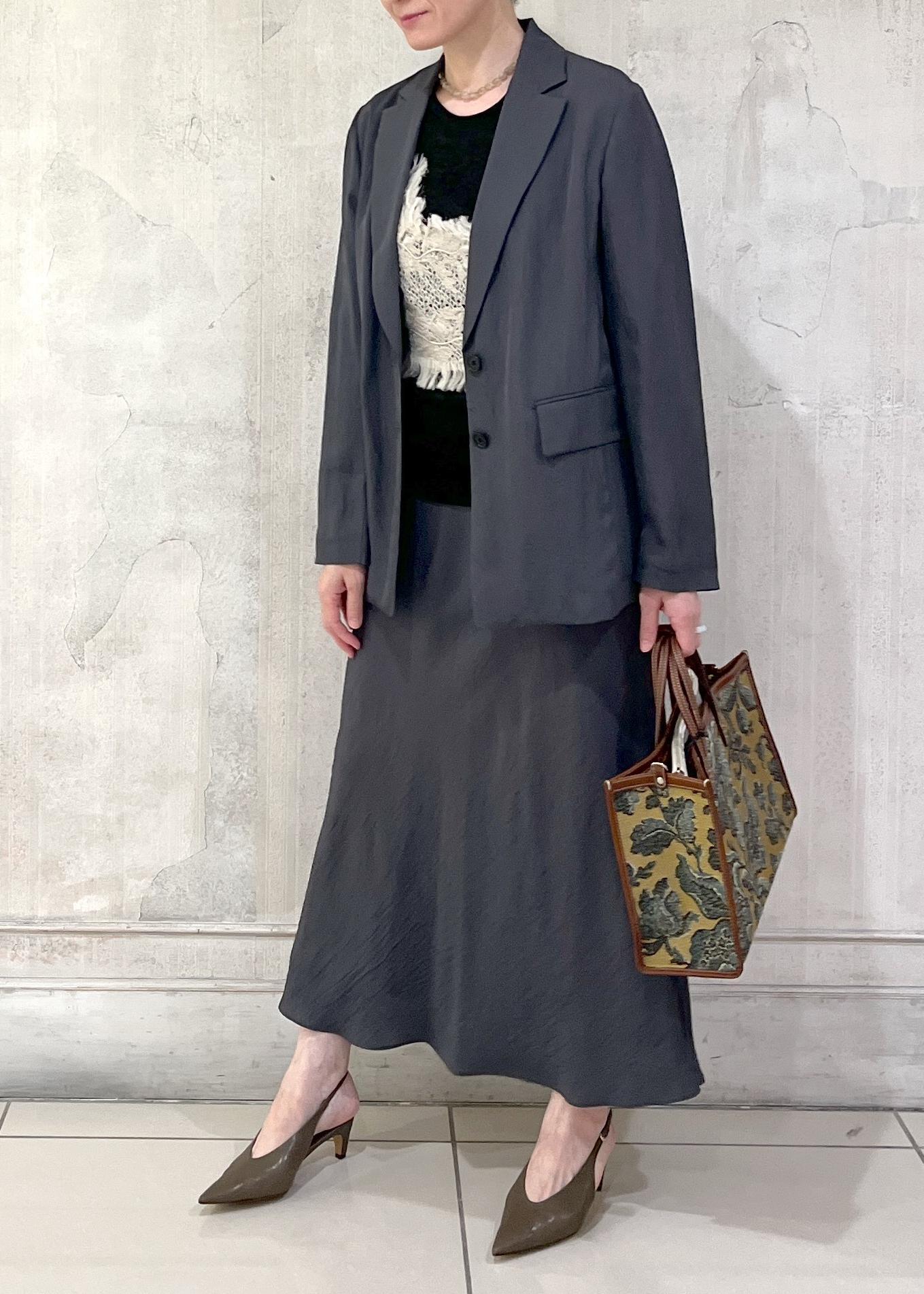 同素材のマーメイドスカートもあるので、セットアップでの着用も素敵です。 -