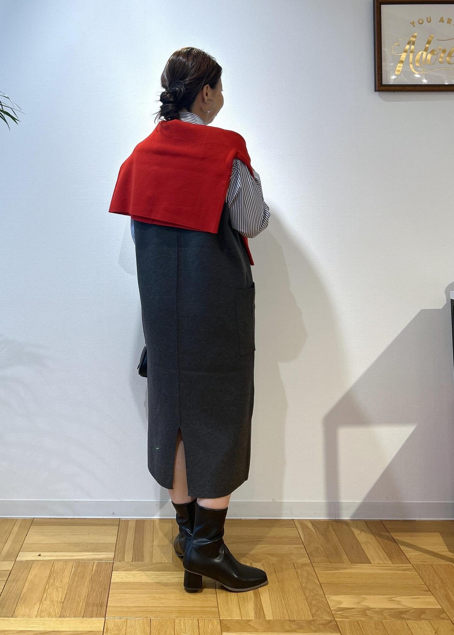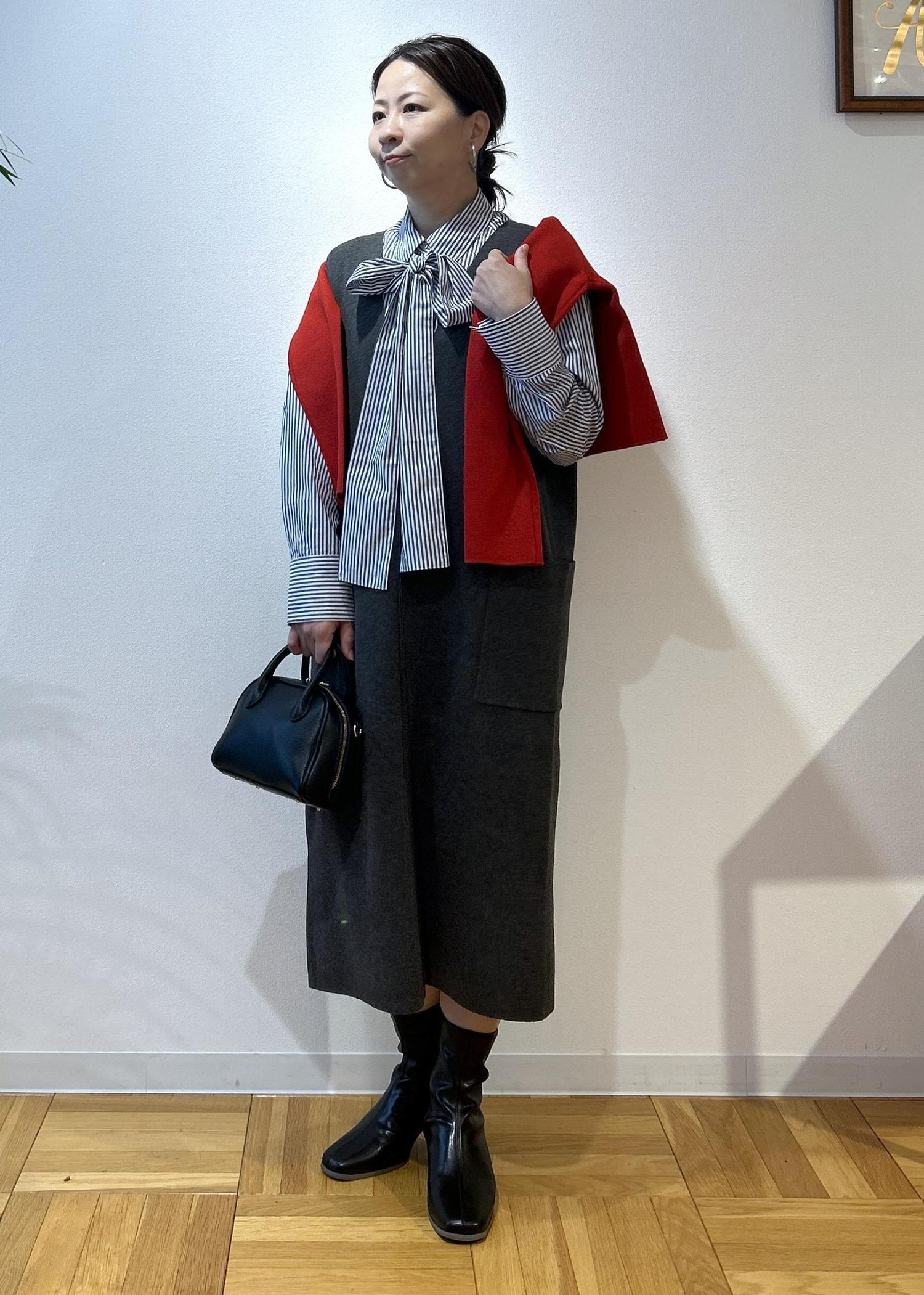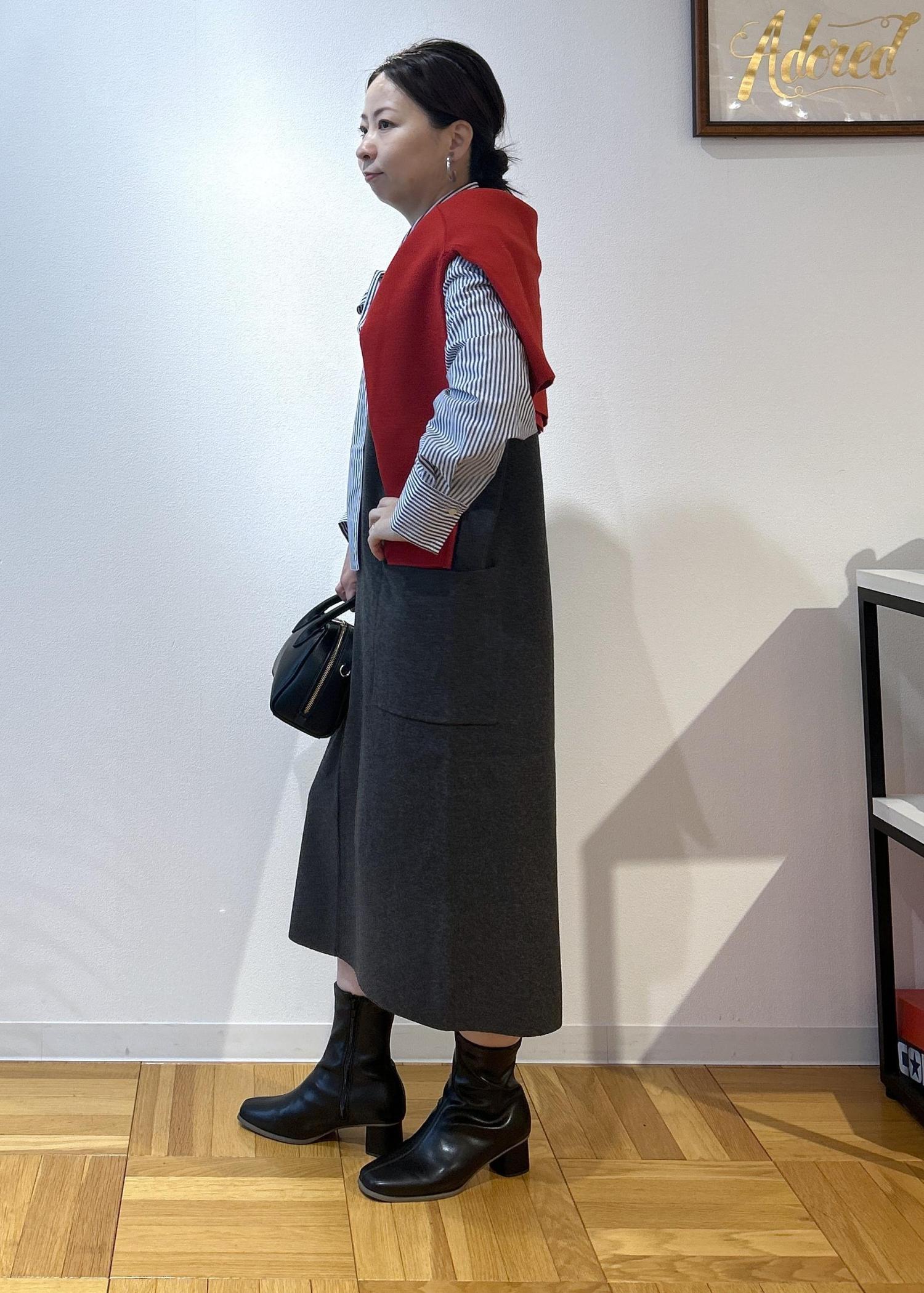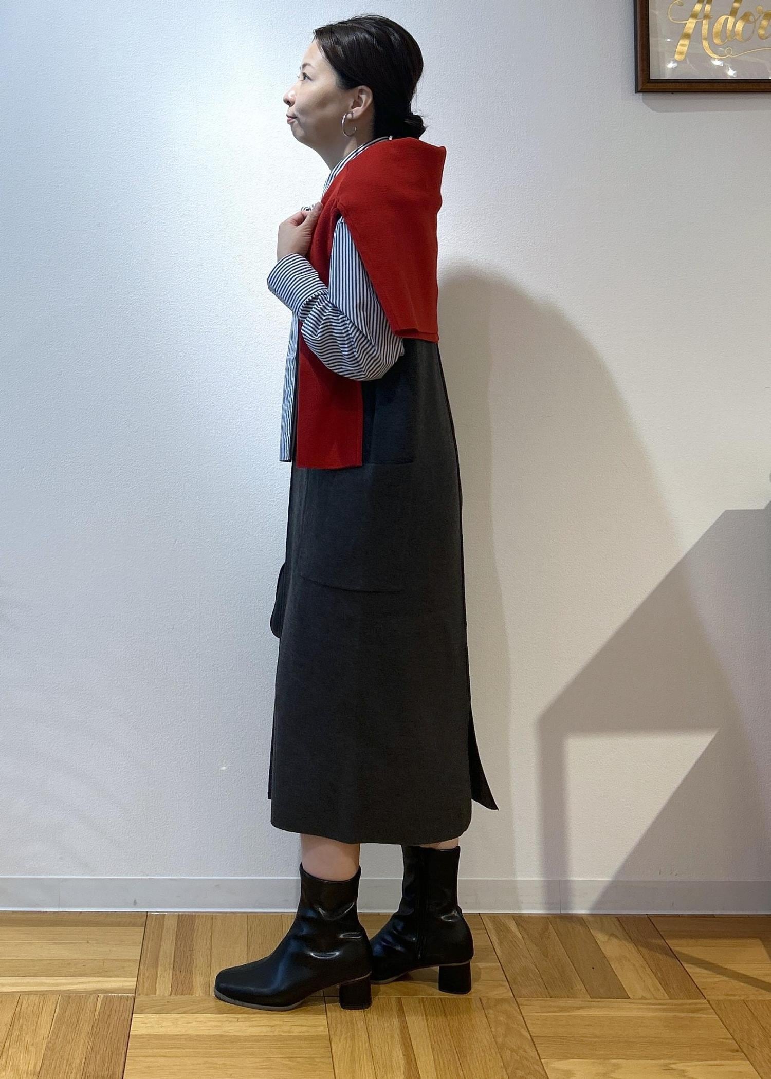 ROPÉ PICNICニットジャンパースカート/着丈が選べる・リンクコーデチャコール / M¥4,994レビューニットなので伸縮性があり、楽に着脱できます。深めなVネックのため顔まわりはスッキリ見せてくれます。今回はMサイズの着丈が短いものにし、155センチの私には膝下15センチくらいの長さでした。ショートブーツもいいけど、ロングブーツもかわいくなると思います。