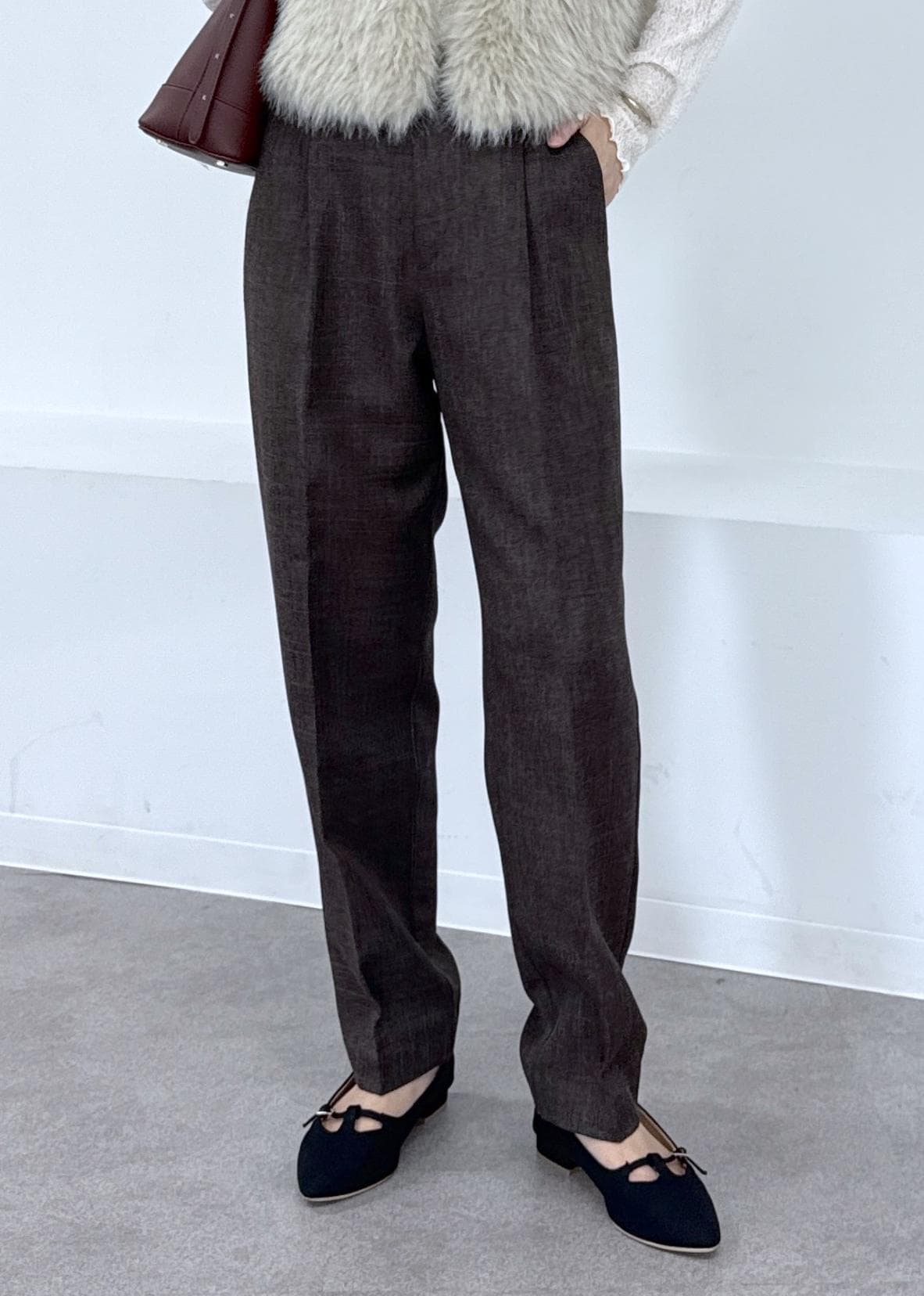 ROPÉ PICNICスリートーンツイードテーパードパンツ/セットアップ対応ダークブラウン / M¥5,489レビュー162㎝、ベルトでしっかりウエストに合わせた場合、足の甲に触れるか触れないかくらいの長さでした。タック入りなので腰回りにゆとりがありつつ、下にかけてスッキリ綺麗なラインで履けます。