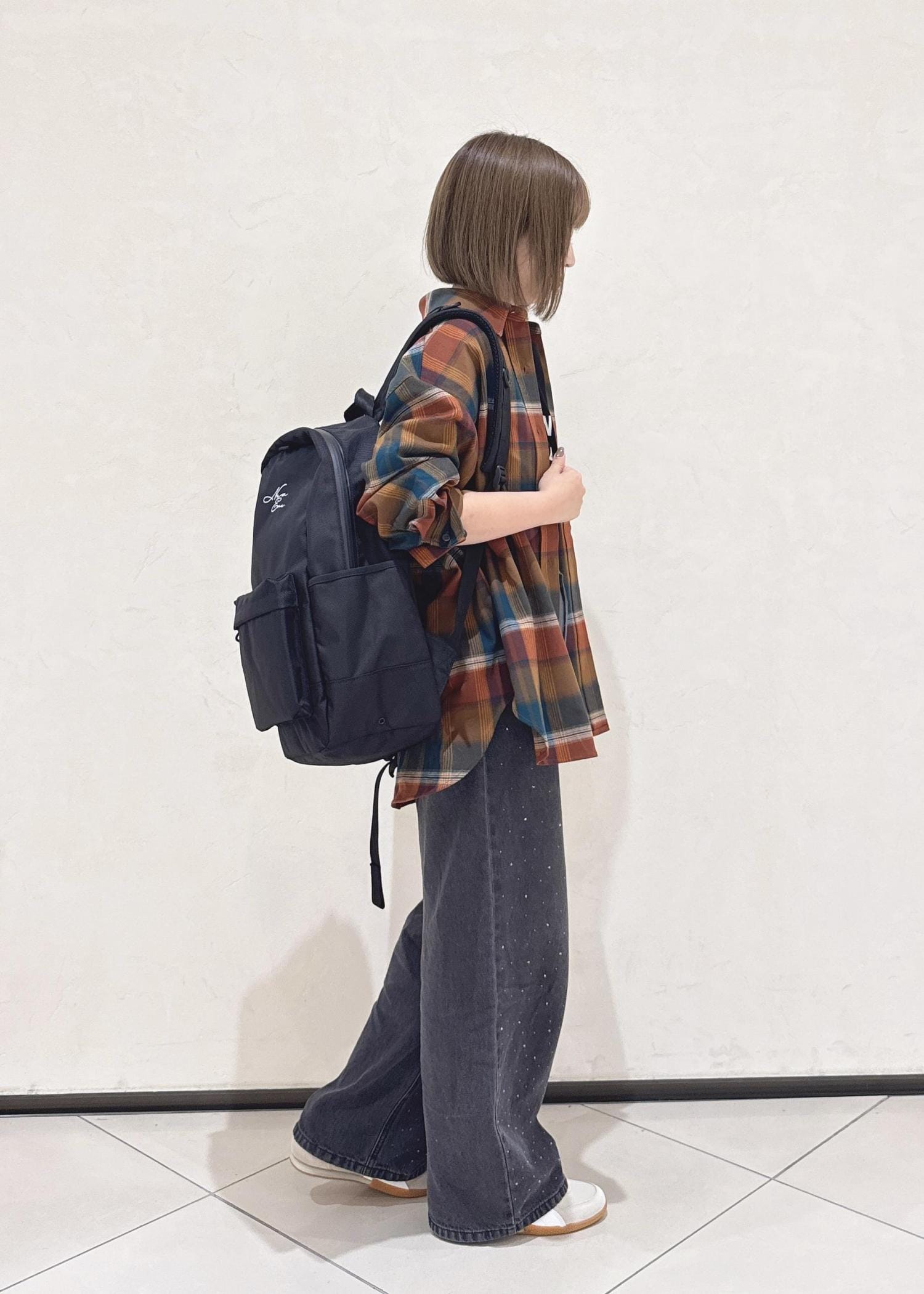 チェックシャツはオーバーサイズなので、もっと寒くなっても中に着込むこともできます◎