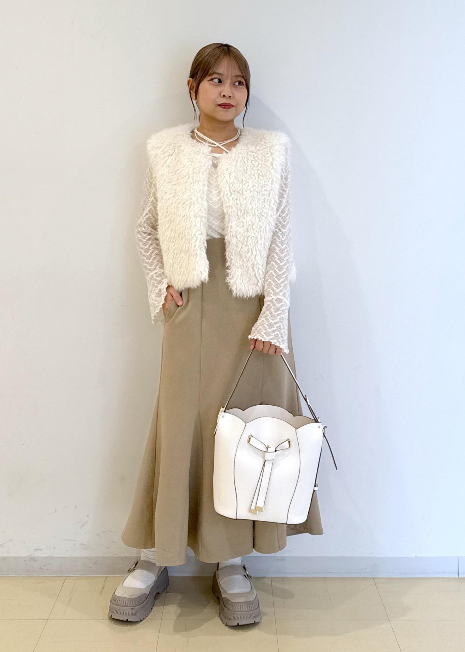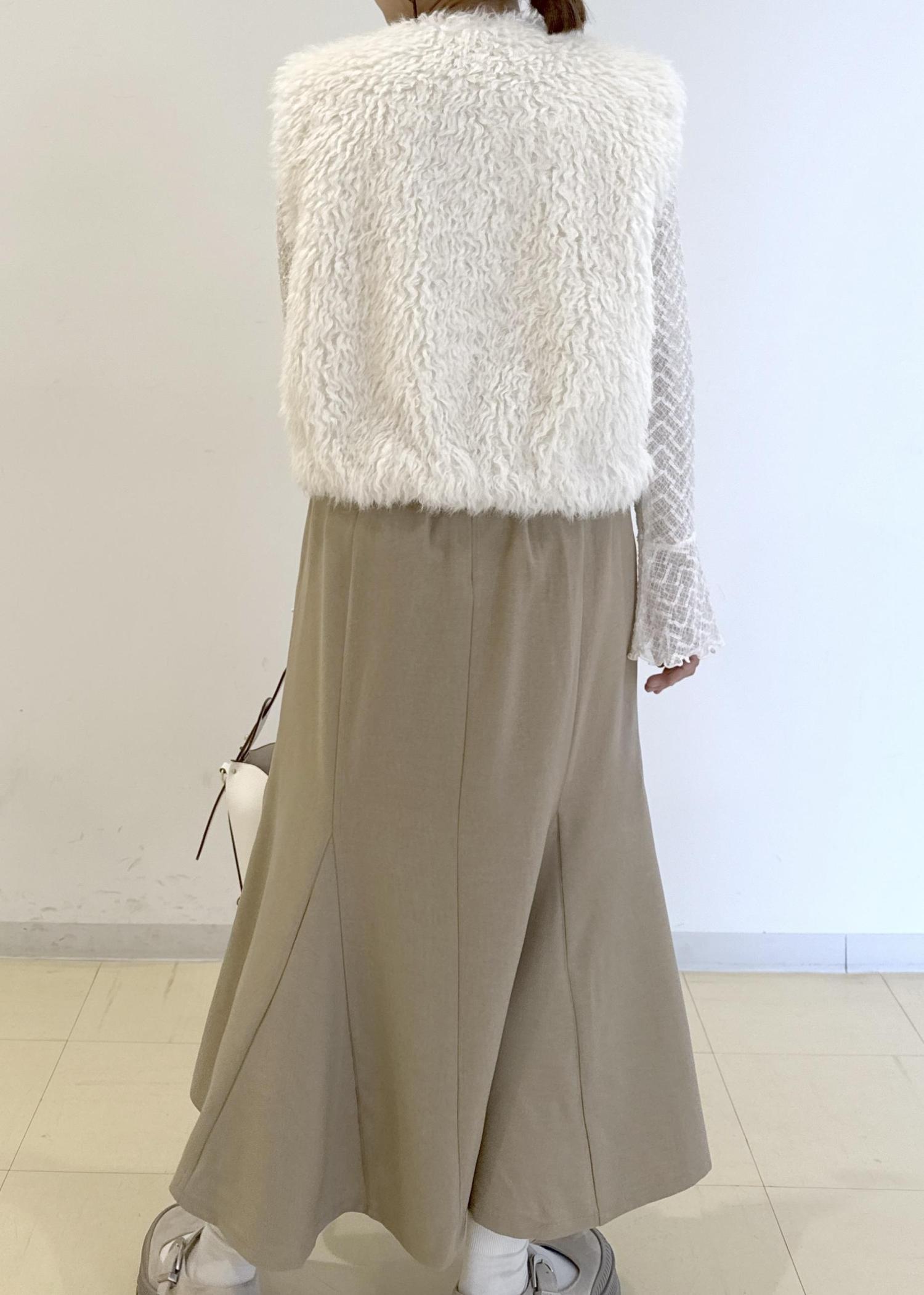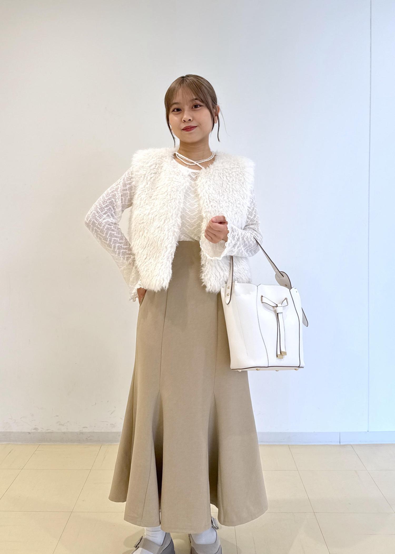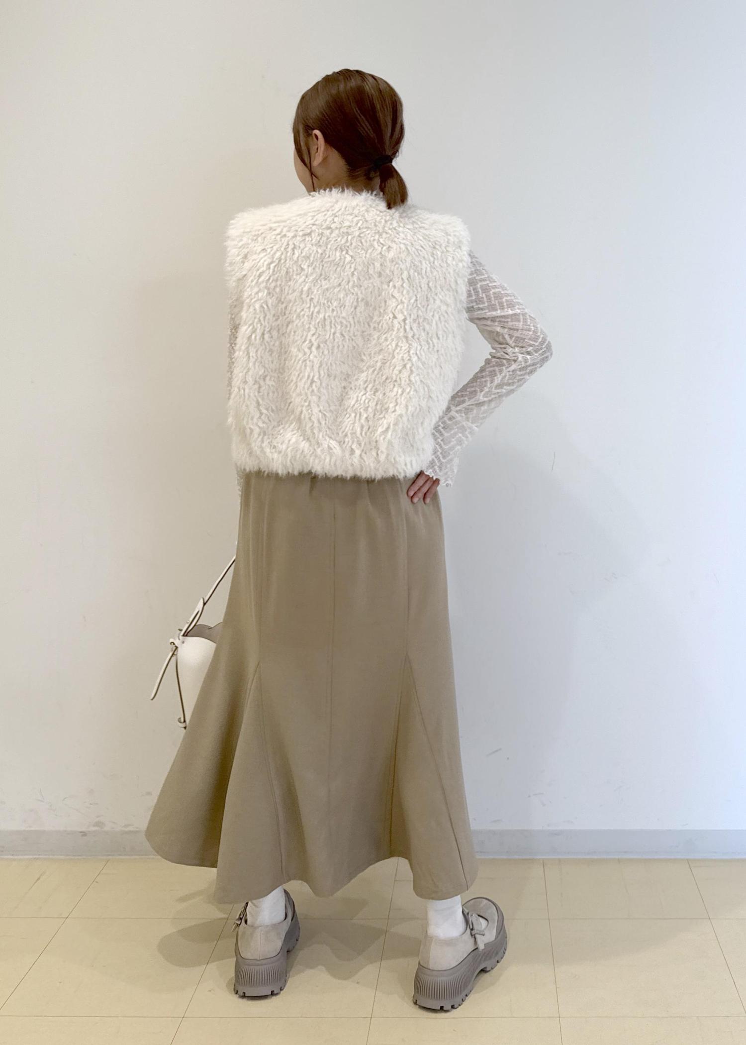 VISアソートファーショートベストキナリ / F¥8,899レビュー着膨れしがちなファーベストですが、骨盤にかかるくらいの丈感なのですっきり見えます!