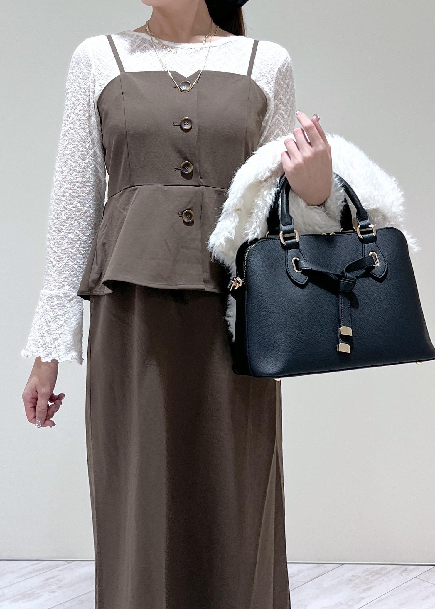 VISビスチェドッキングライクキャミワンピースダークブラウン系 / F¥7,689レビュー背中部分がゴムなのと肩ひもは調節可能です◎タイト過ぎないので歩きやすさもあります!今の時期はタンクトップ合わせ、秋は半袖→長袖と雰囲気を変えて着回しを楽しめます♡