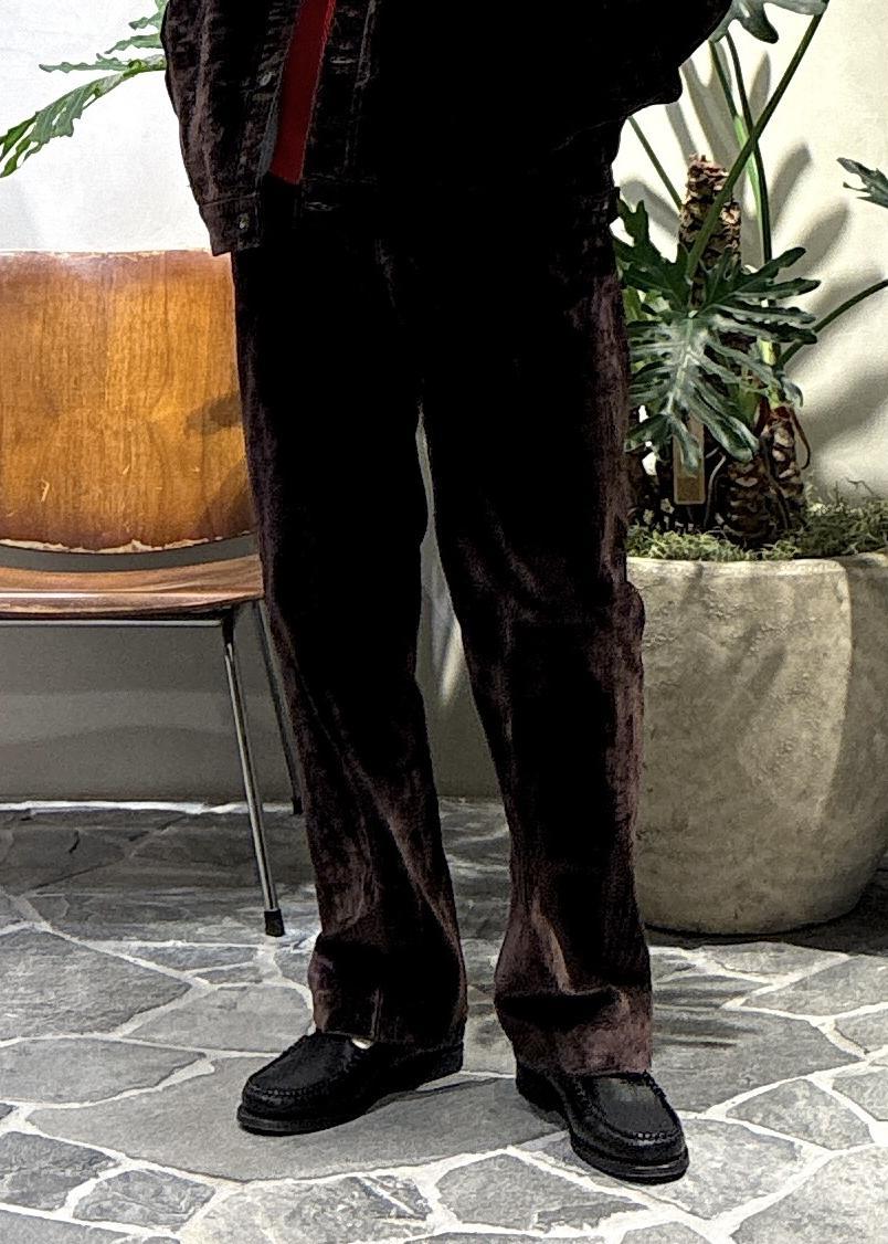 ADAM ET ROPÉ HOMME【ISKO】フロッキーデニム ストレートスラックス / ADAM ET ROPE' JEANS -IMAG-ダークブラウン系 / L¥29,700レビュー足回りはすっきりめで、ストレートにストンと落ちるか綺麗なシルエットです。今回は少し緩めのシルエットにしたかったので、Lサイズで着用しております。