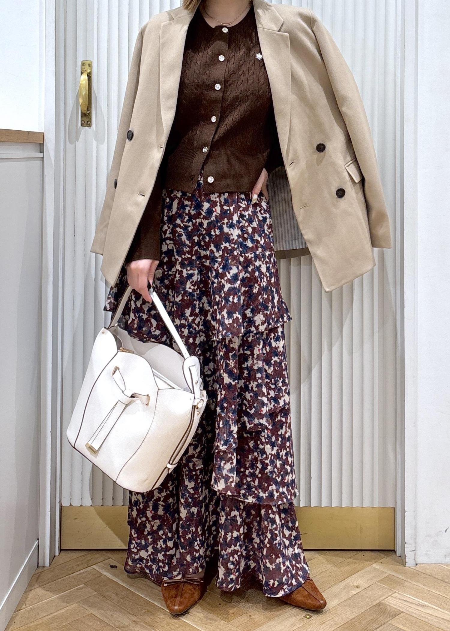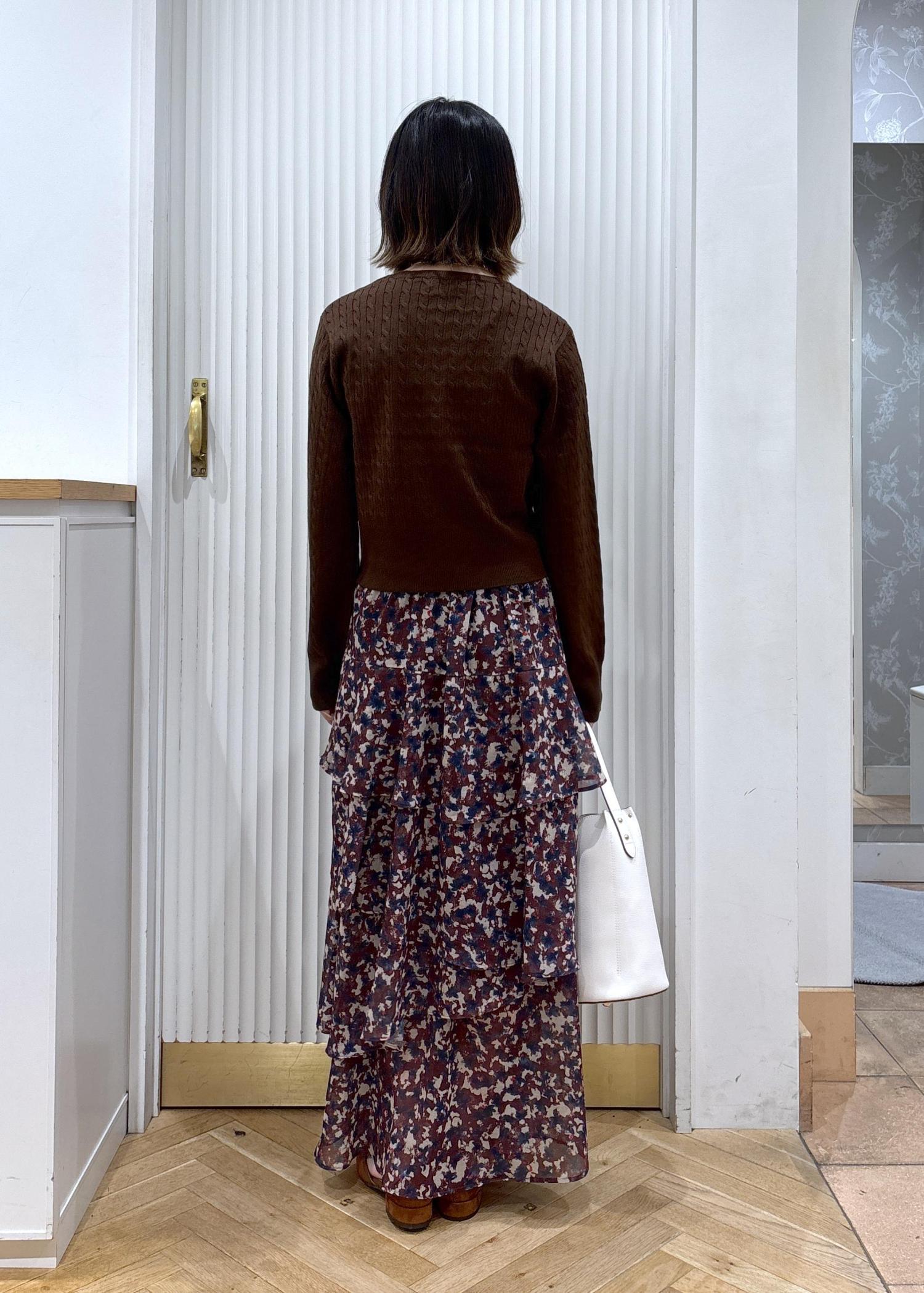 VIS花柄アソート楊柳ティアードスカートブラウン系 / F¥3,845レビュー一枚履くだけでコーディネートが華やかになります!