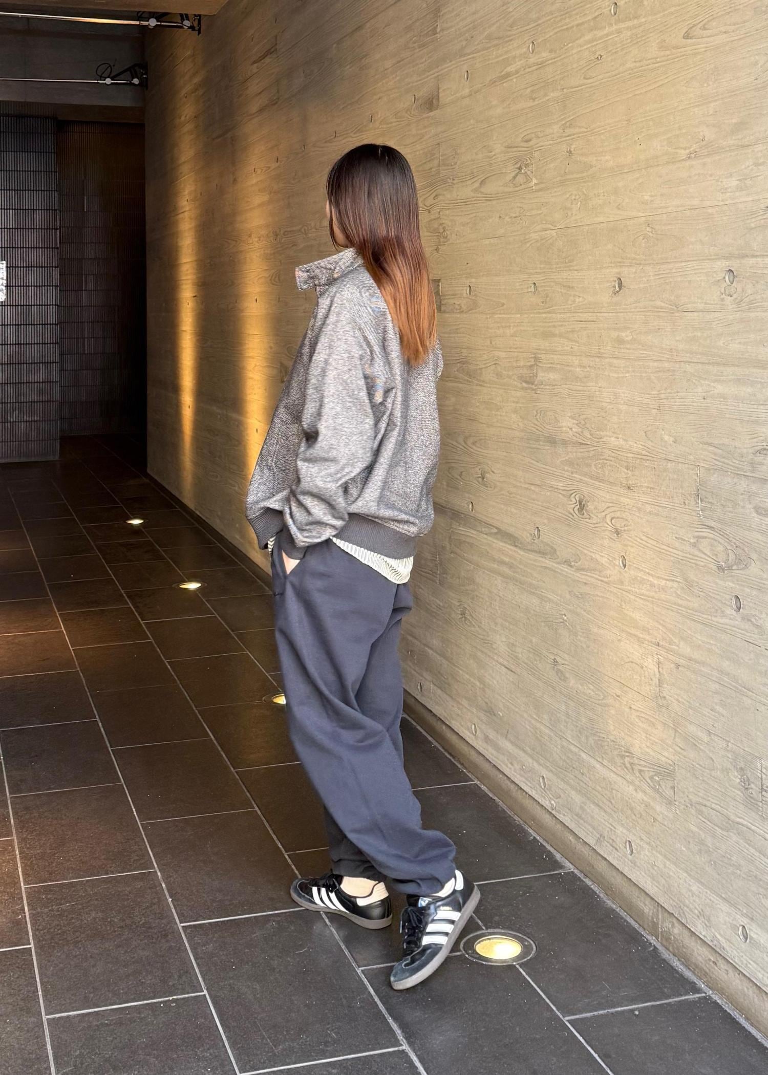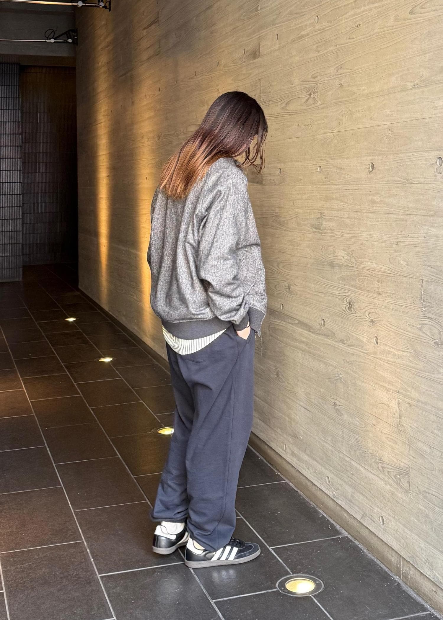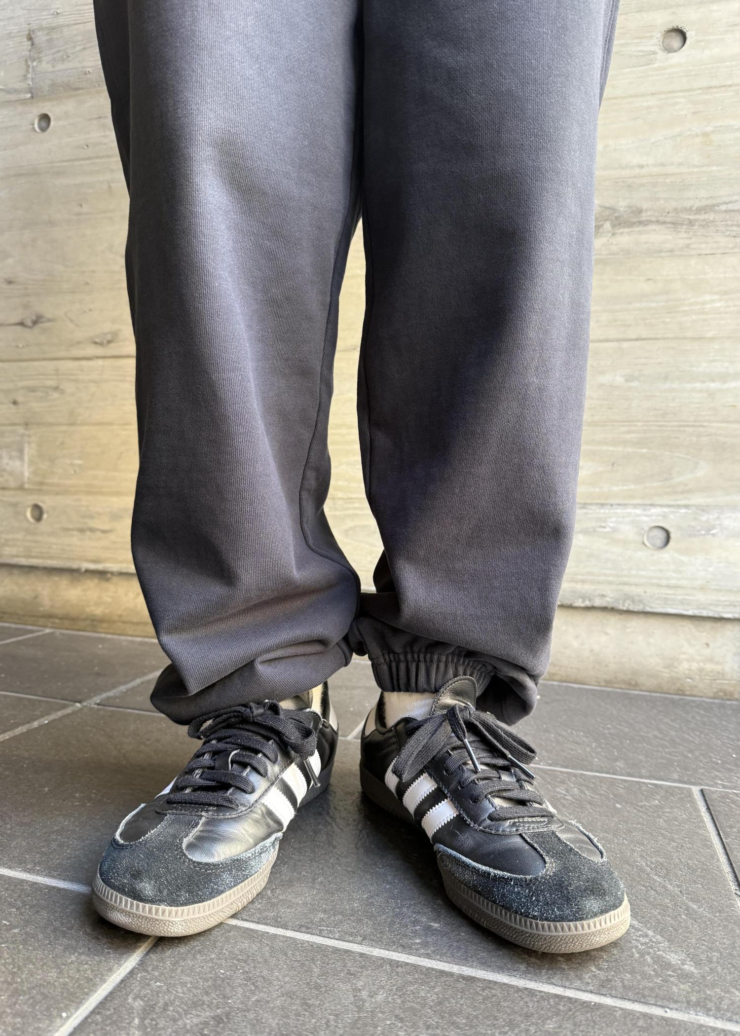 スウェットパンツは調節可能なウエストドローコード付きで、ウェルトポケットを備えており、裾はリブ無しのゴム仕様となってます。