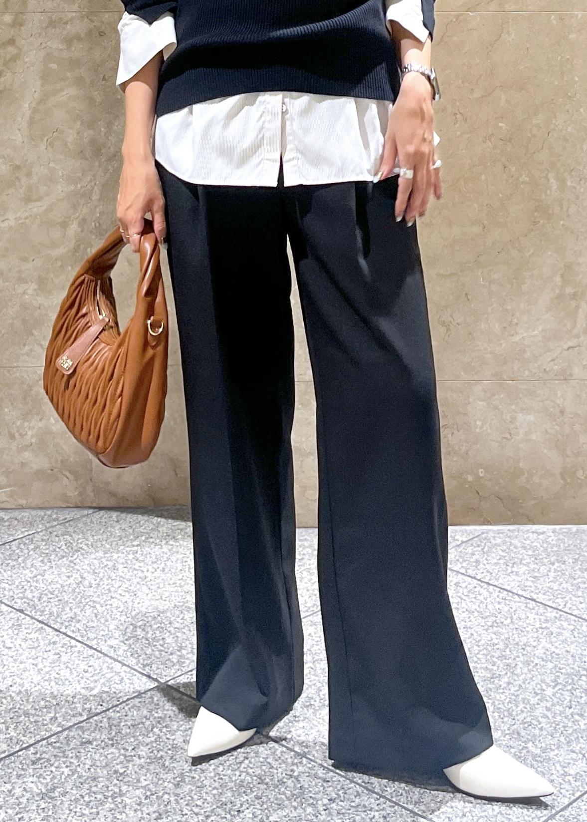 どんなトップス、シーンにもマッチする、そして長く着られるサラっとした素材感なので、かなり重宝しそう、、! -