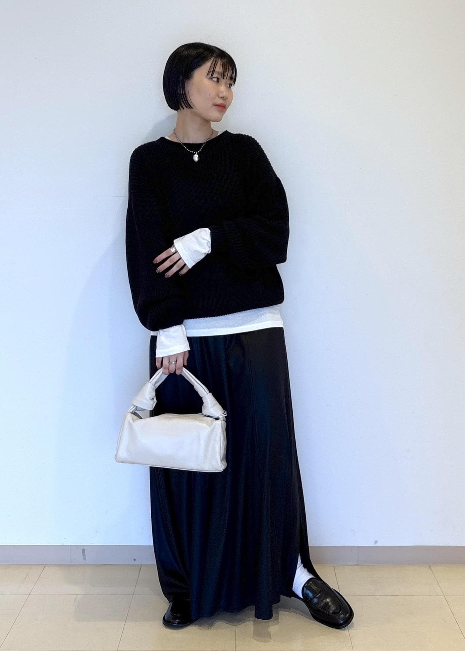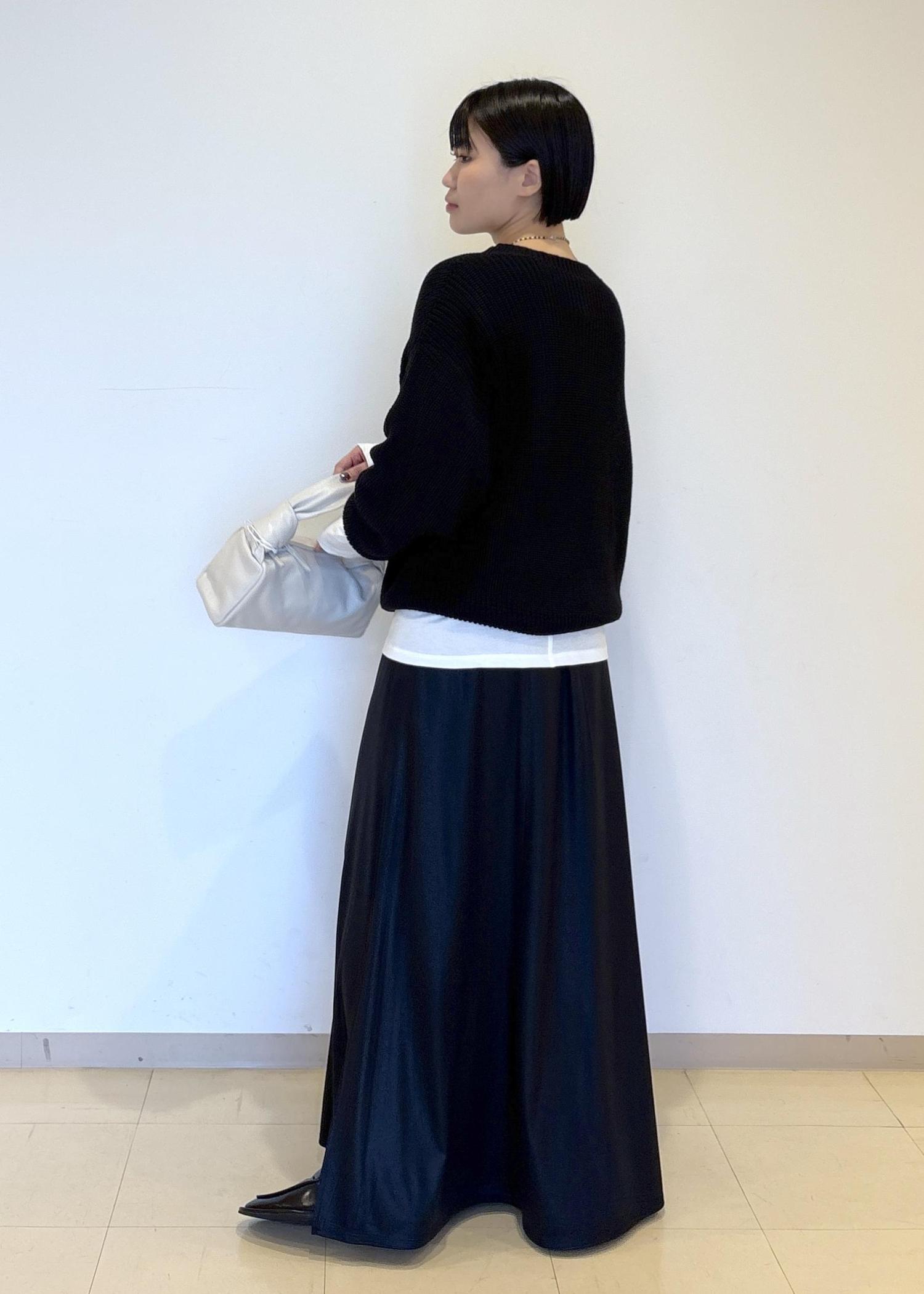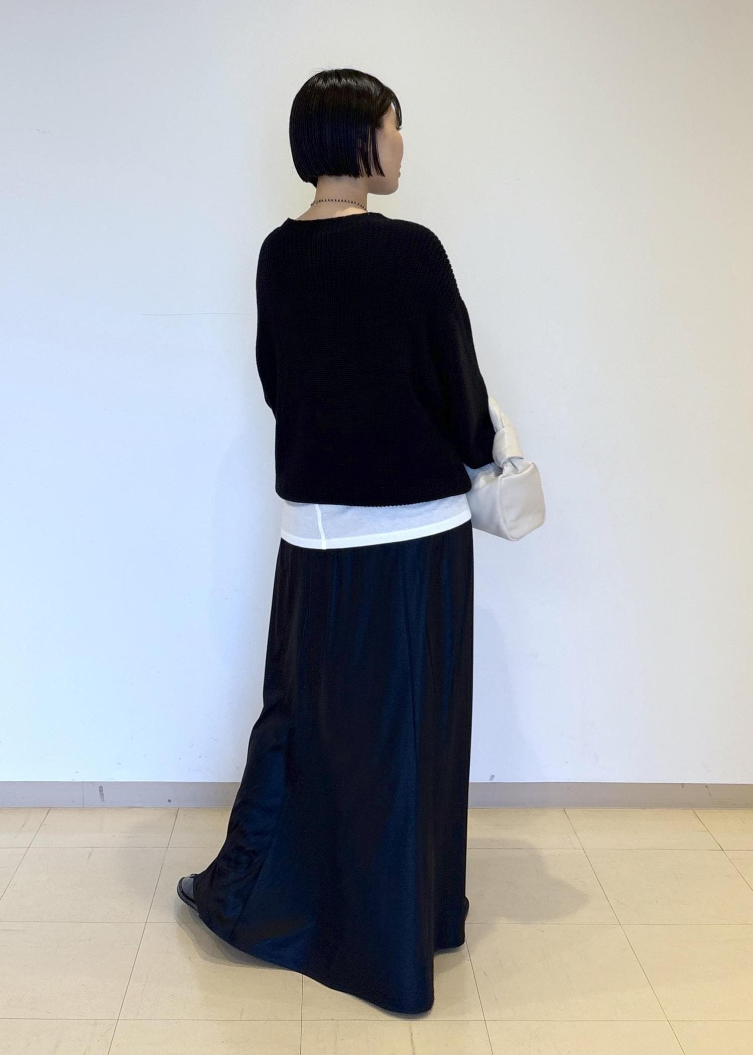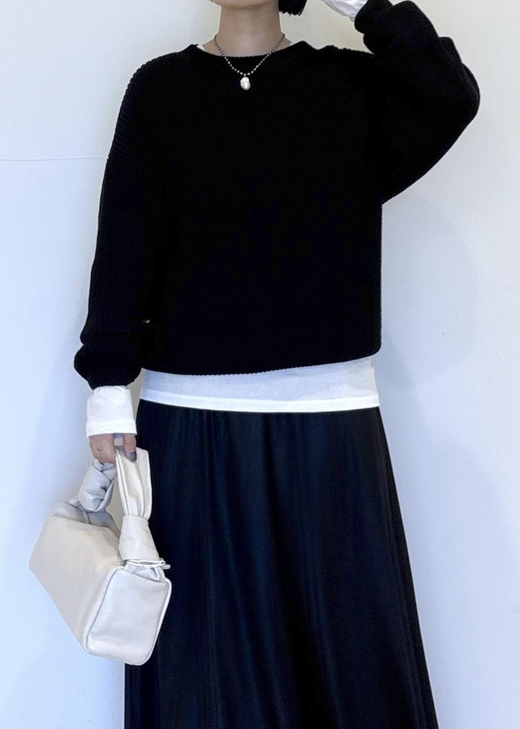 今回はざっくり編みで、ボリューム感のあるコットンニットを着てみました。