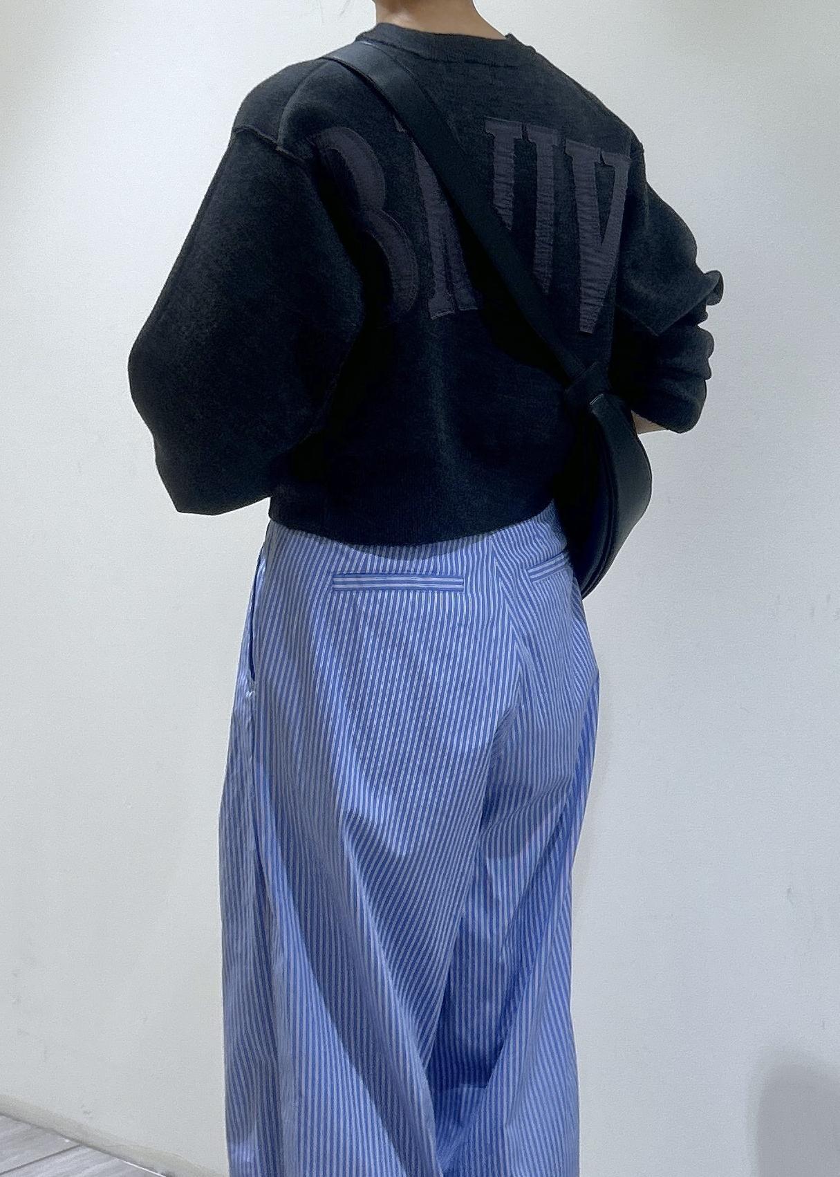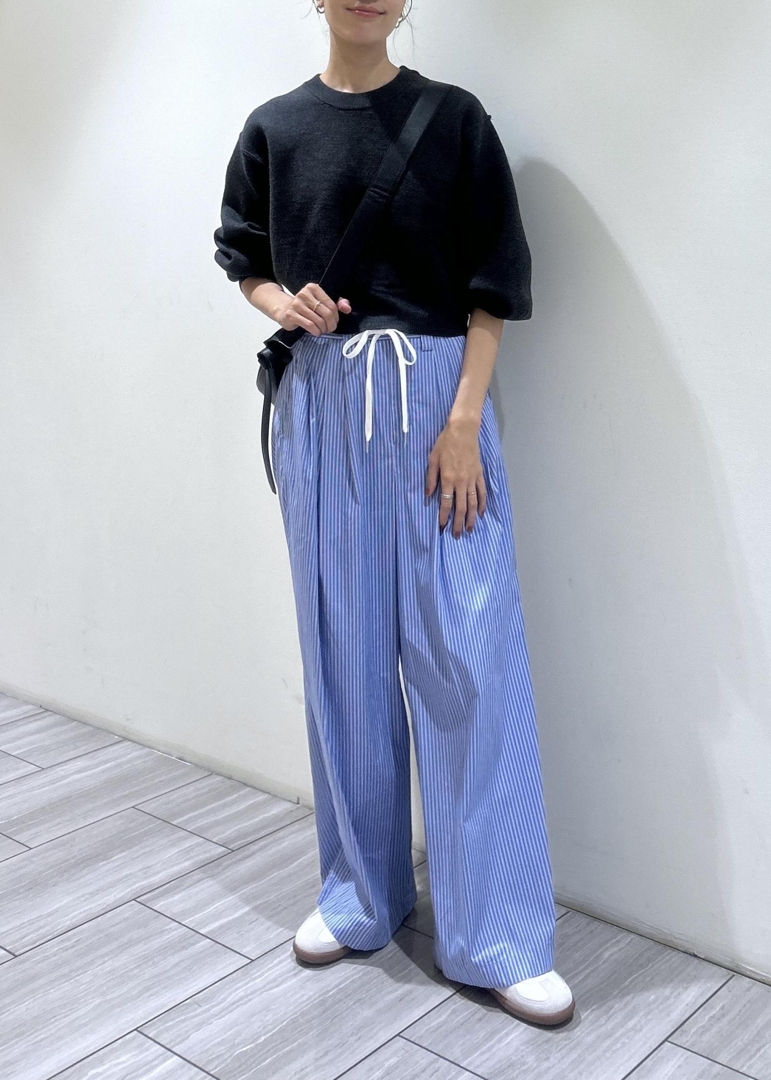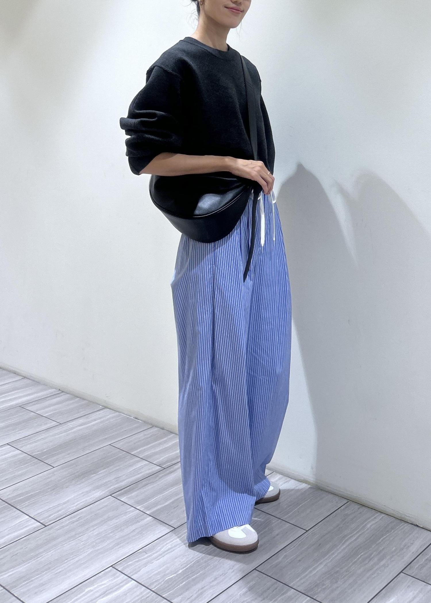 ストライプのシャツスラックスとの合わせで、大人のカジュアルを楽しめます♪