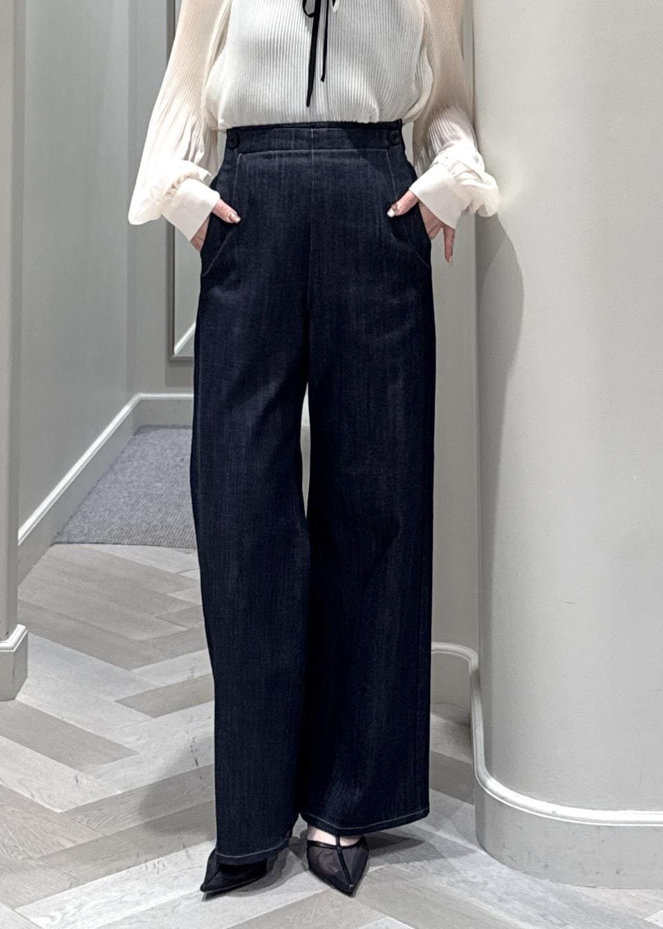 ROPÉストレッチデニム セーラーパンツ/イージーケアネイビー系 / 38¥30,800レビュー少し硬めのしっかりとしたデニム素材。