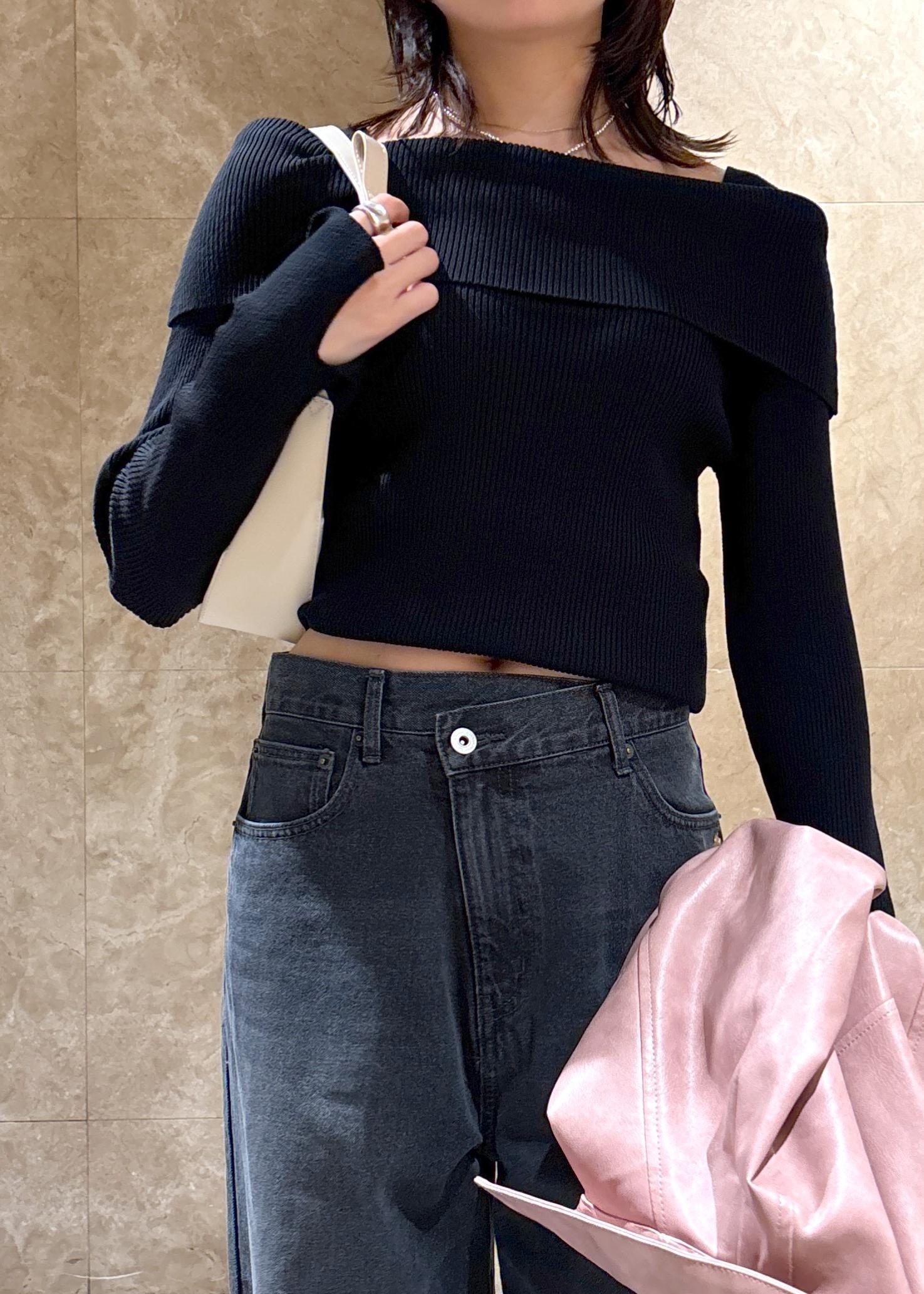 VISオフショルダーモチモチリブニットブラック / F¥5,489レビュー袖丈は長すぎず、ぴったりくらい。