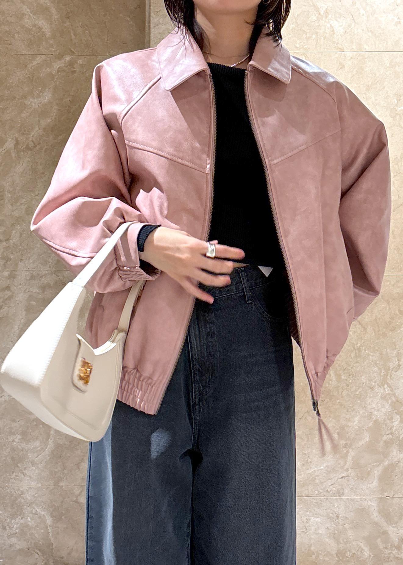 VIS合皮&スエードライクジップアップブルゾンピンク系 / F¥10,989レビューゆったりサイズで冬物の厚みがあるニットやスウェットなどの上からでもスムーズに着られます。