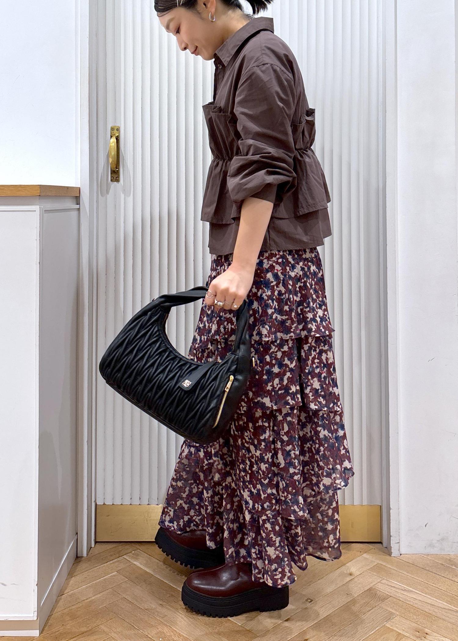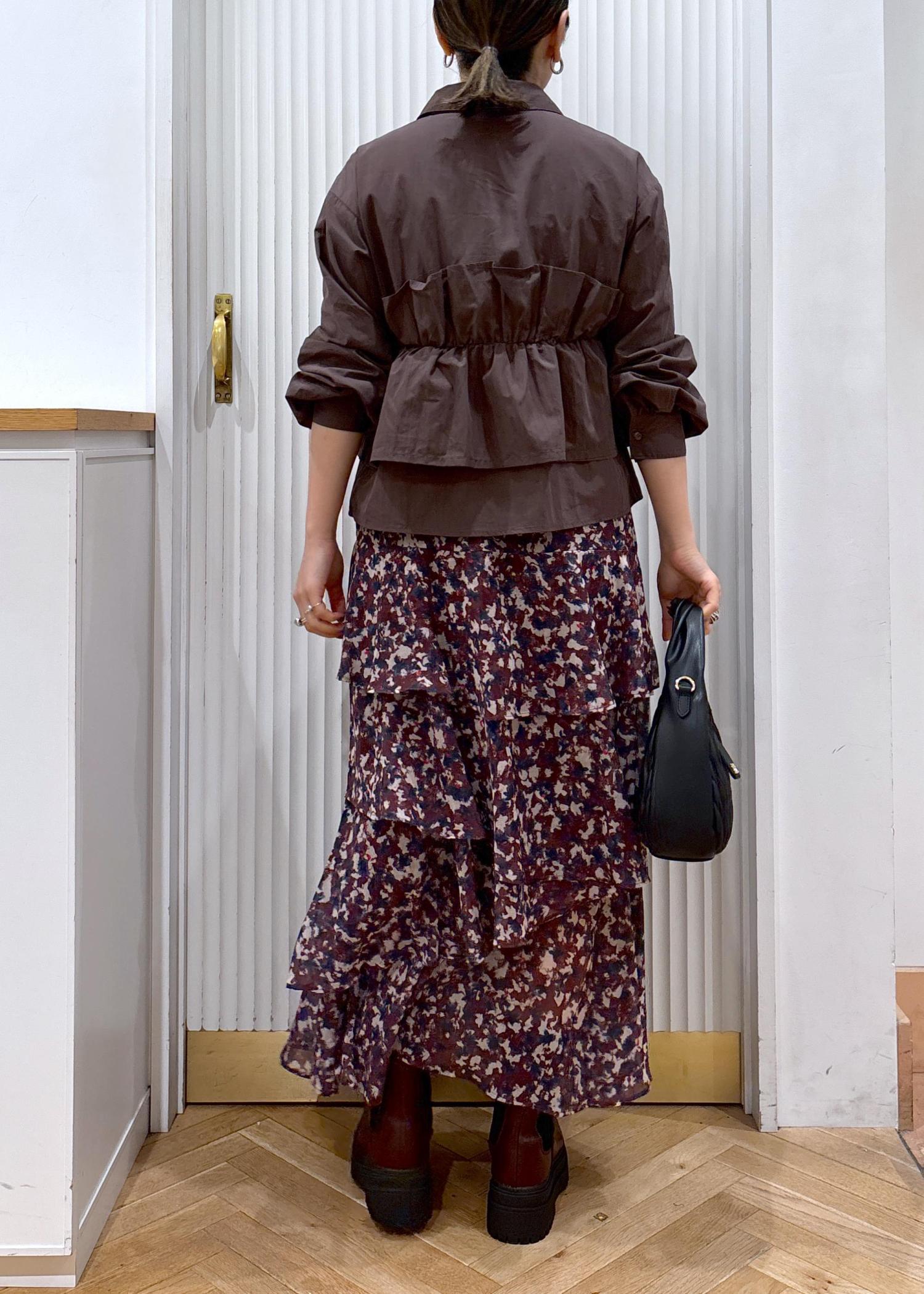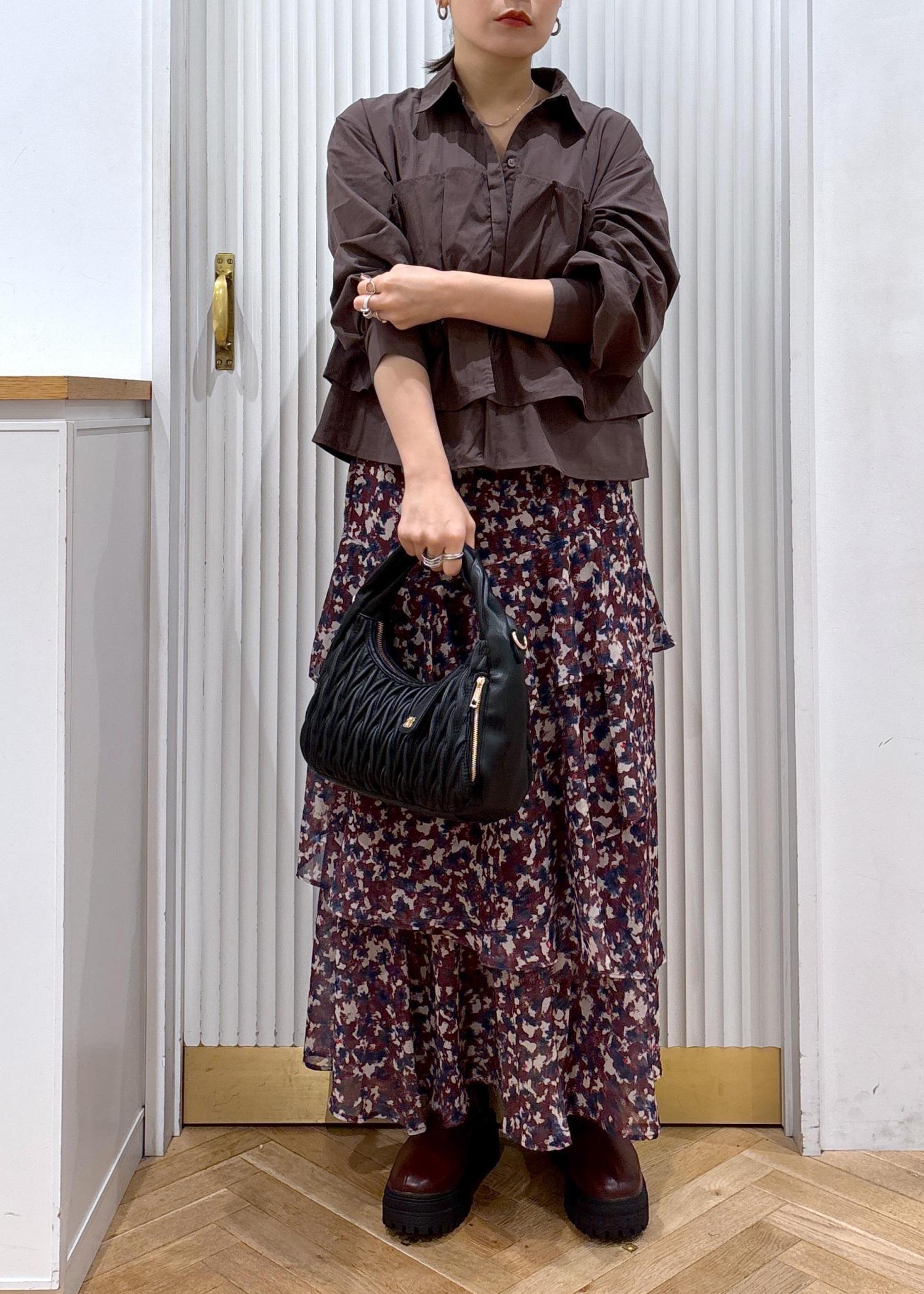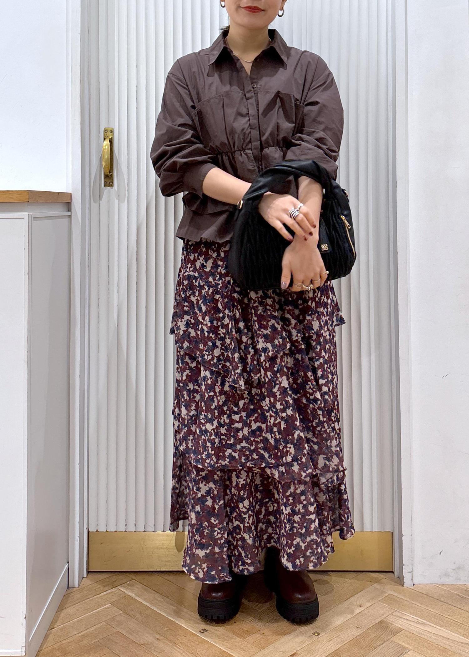 VIS花柄アソート楊柳ティアードスカートブラウン系 / F¥3,845レビューウエストが履きやすいゴムのデザイン。とても軽くてサラッとしたドライタッチな素材で、大変着心地が良く、楽でした。たっぷり4段のティアードが主役になる1着で、シンプルなトップスとの相性抜群。