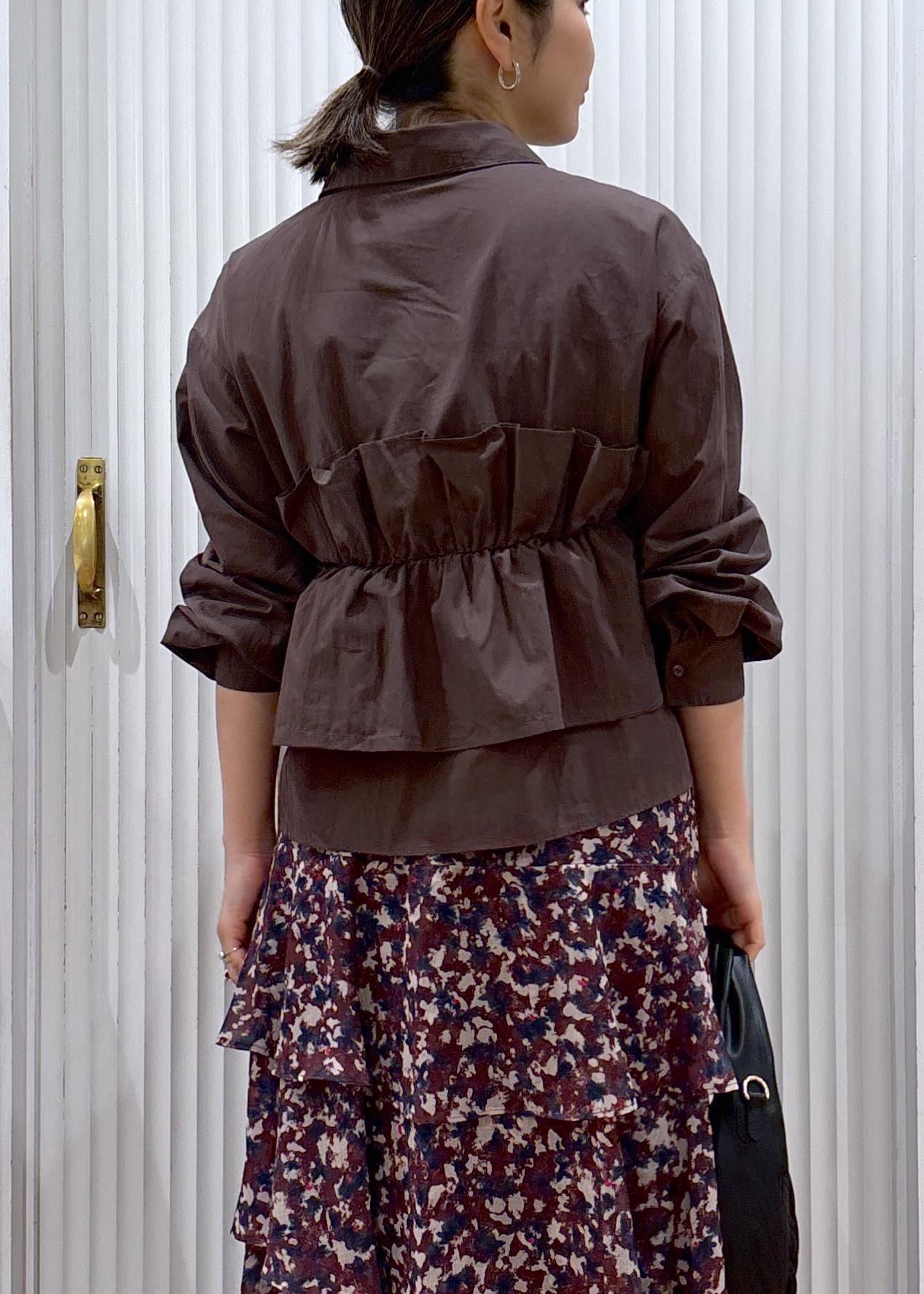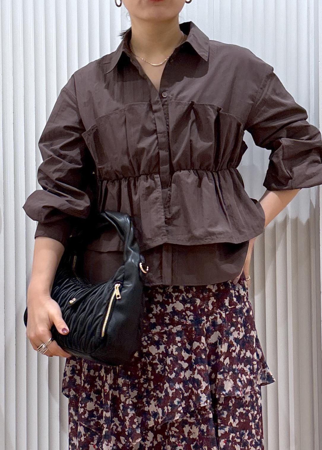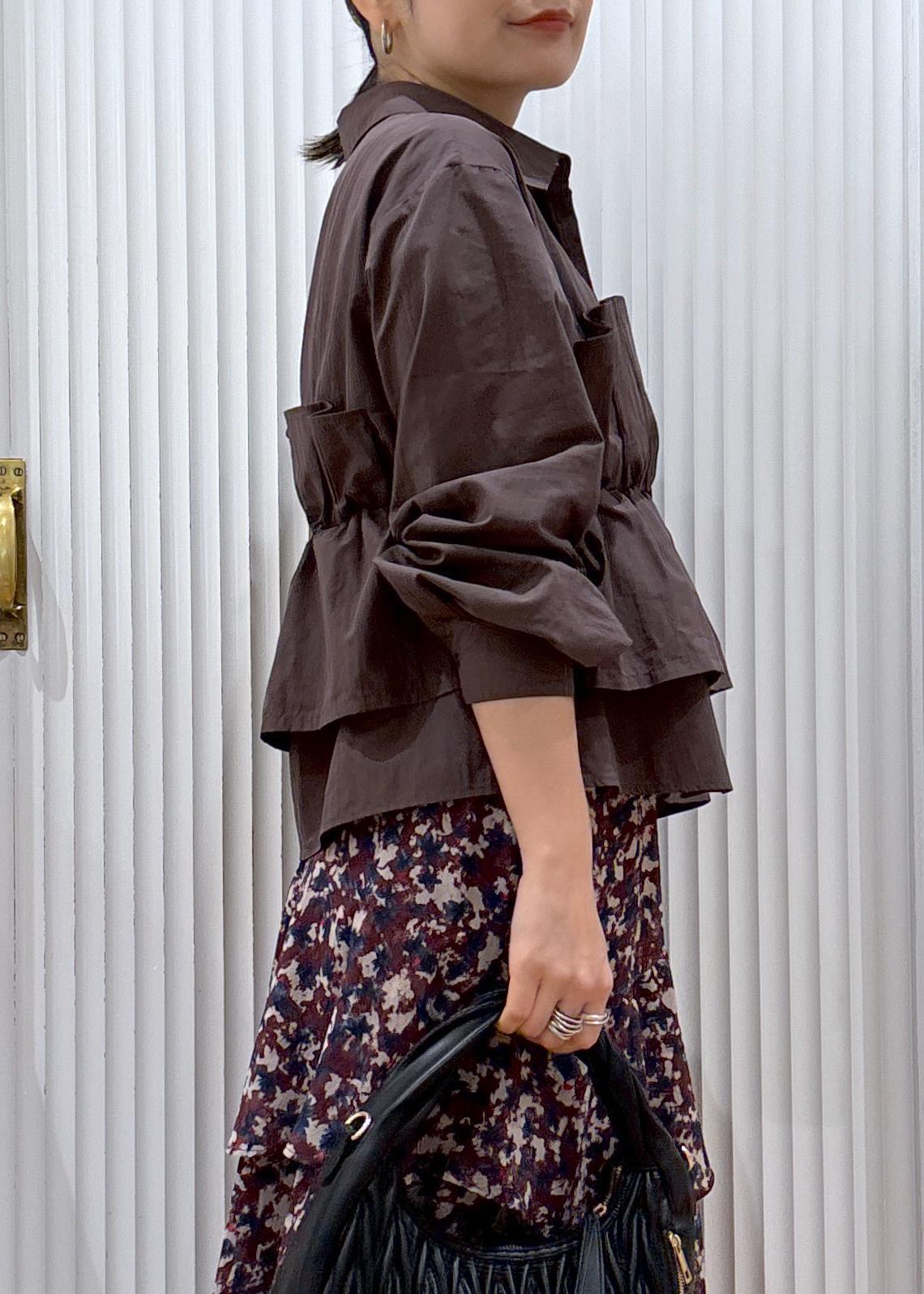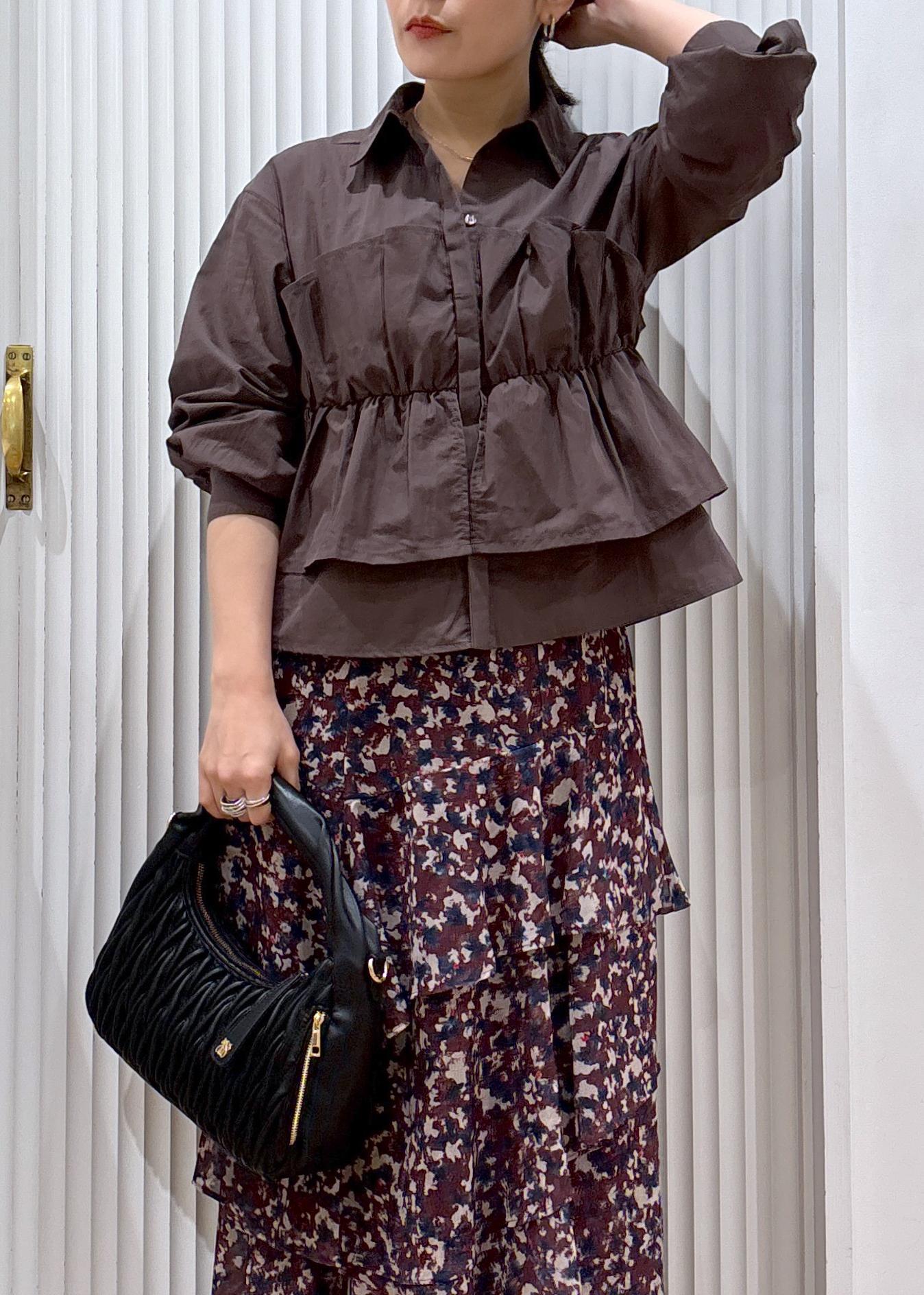 VISビスチェドッキングシャツ/イージーケアダークブラウン系 / F¥6,589レビュービスチェをレイヤードしたようなデザインが可愛いブラウス。薄手のサラッとした素材感。表面感があり、フロントデザインが映えるので1枚での着用はもちろん、ジャケットのインナーにも華やかさアップ間違い無し!