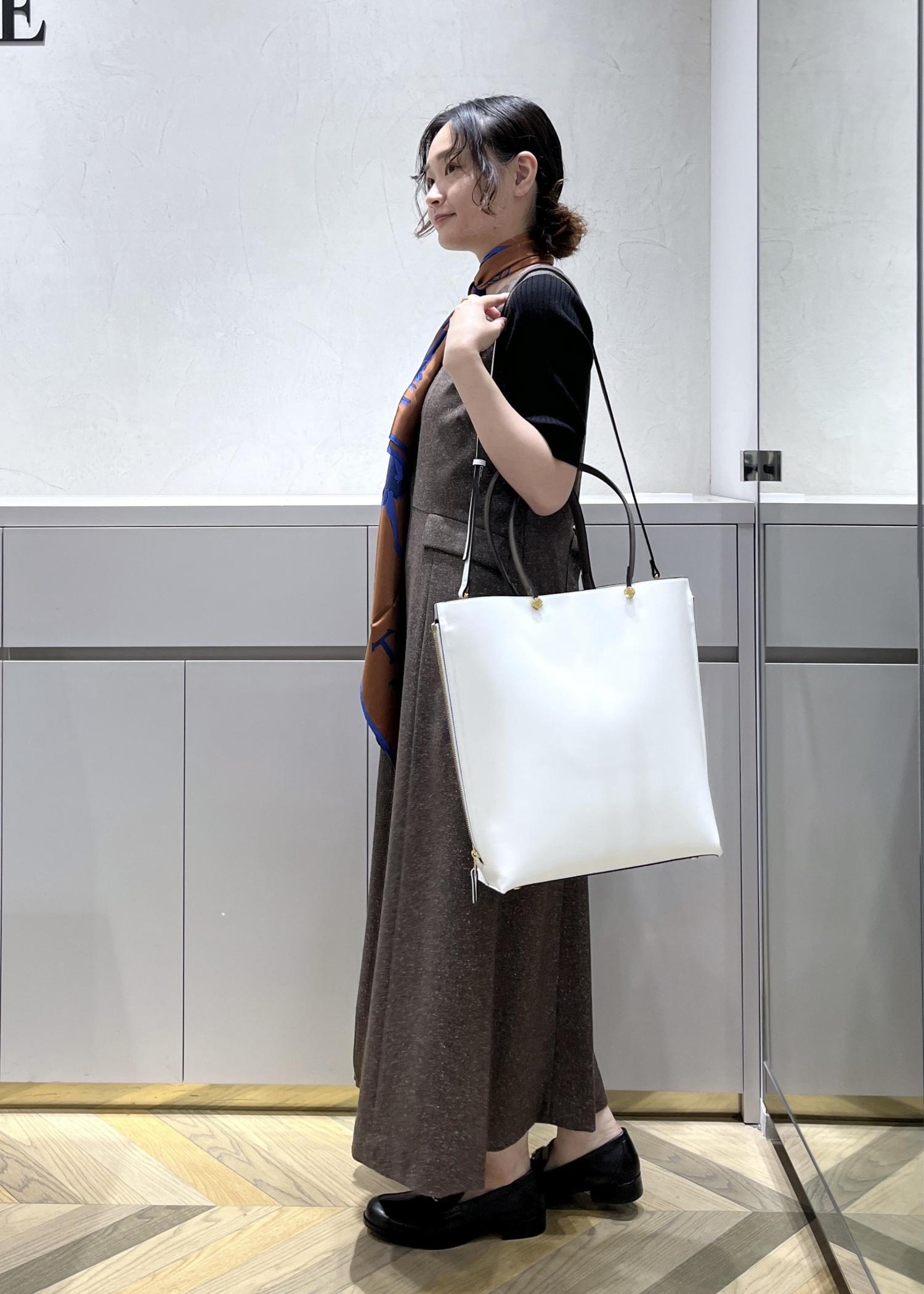 バッグはあえて明るいホワイトを合わせ軽さを出しました。