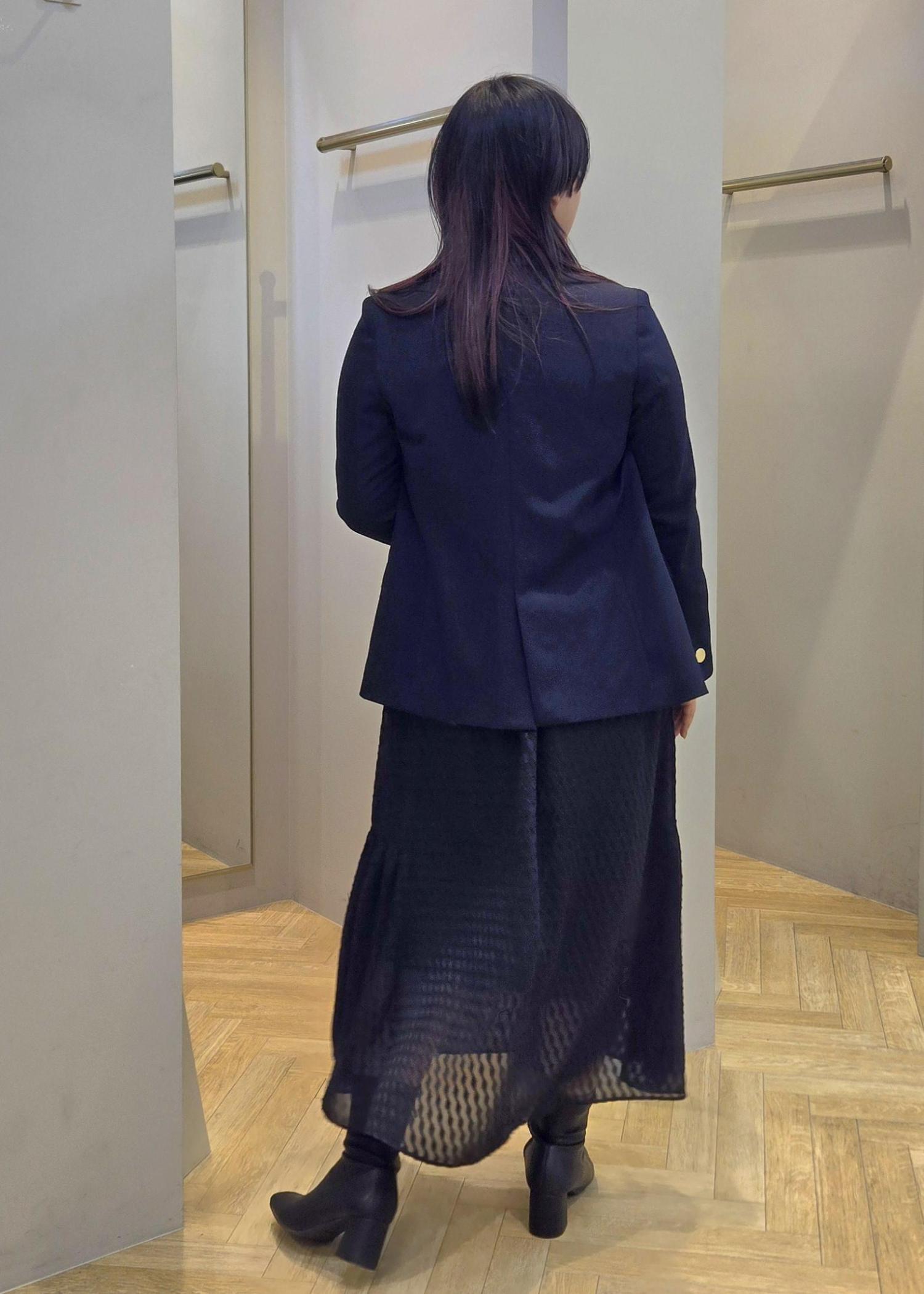 後ろ姿は女性らしいシルエットが綺麗です。