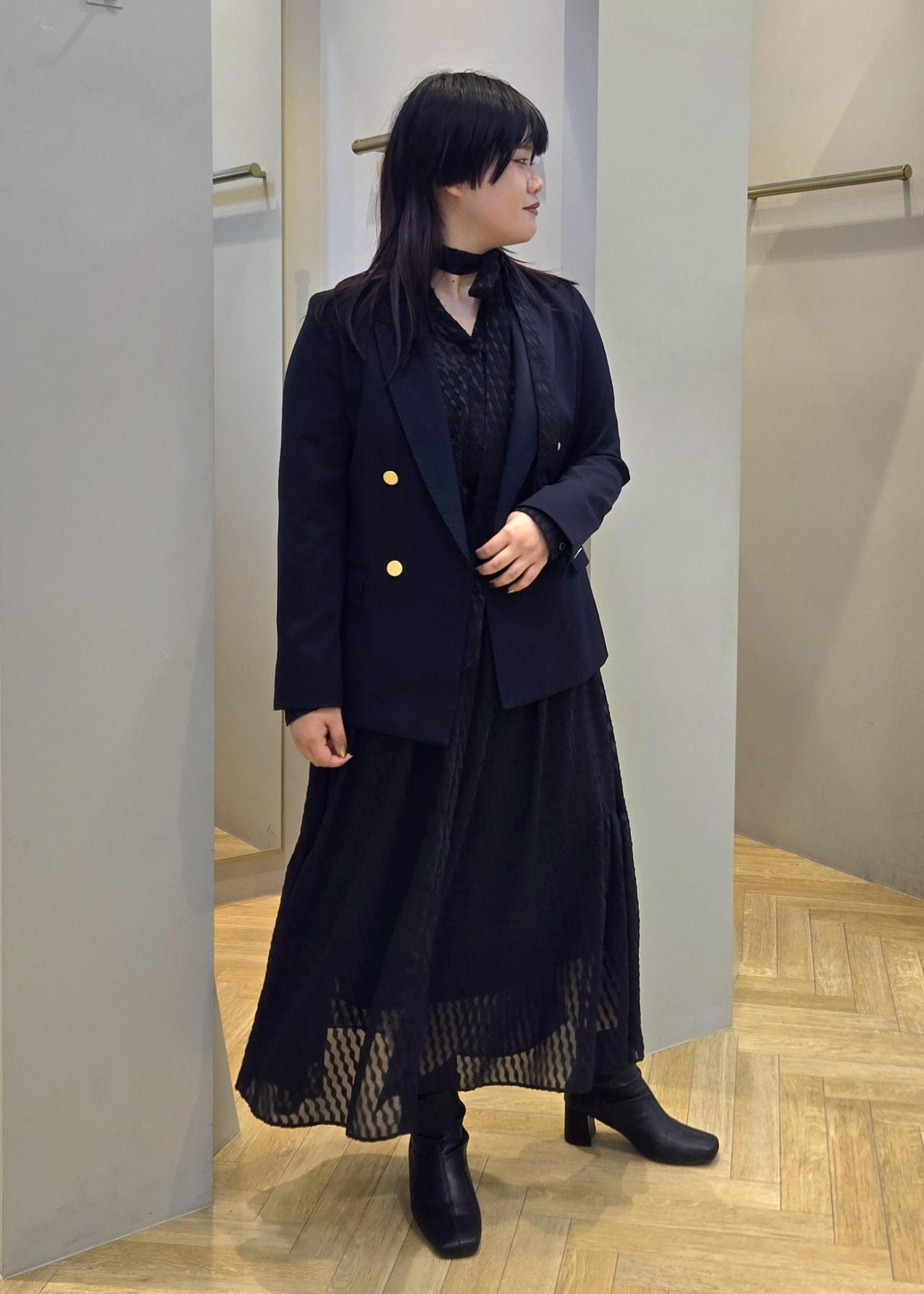 スッキリとしたシルエットですがウエストのデザインで女性らしい印象に見せてくれます。
