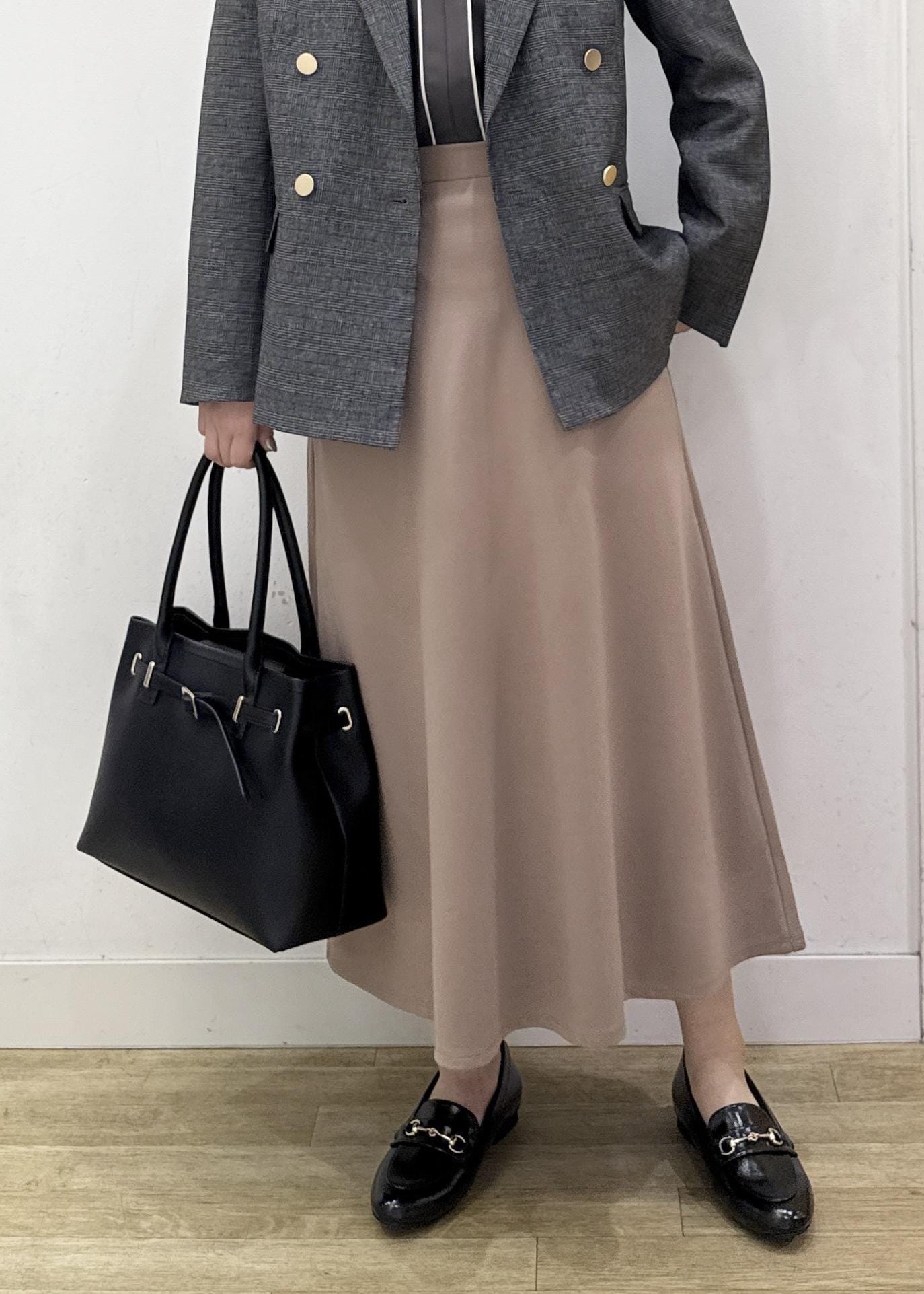 キレイなフレアシルエットで、キレイめからカジュアルまで幅広いコーディネートに合わせられるシンプルなデザインなのも◎ -