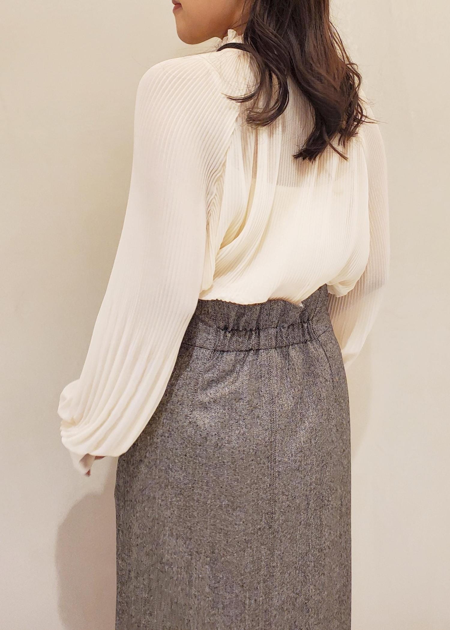分量があるように見えますが身体が大きく見えるような感じはなく、女性らしさを際立たせてくれるシルエットです。