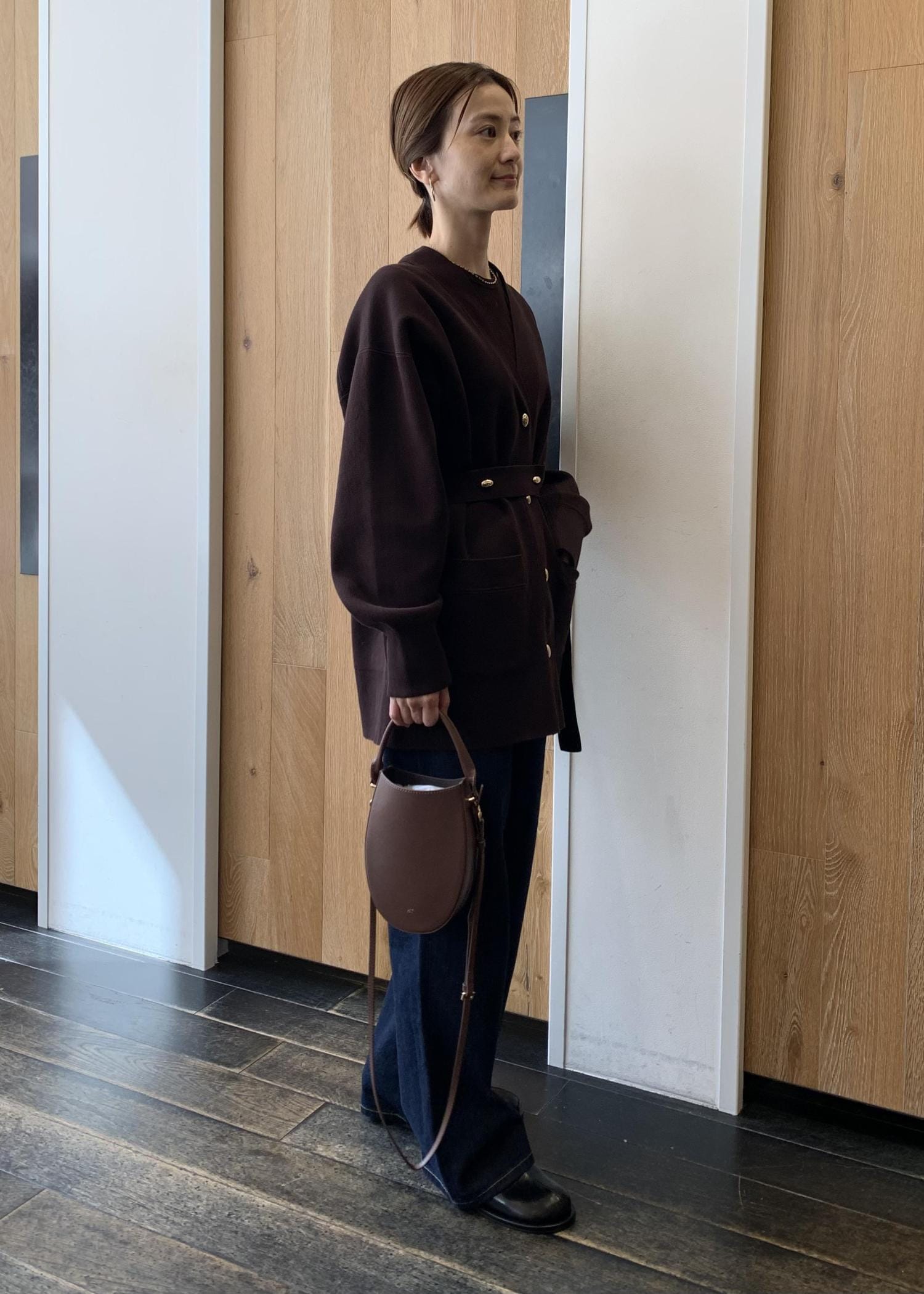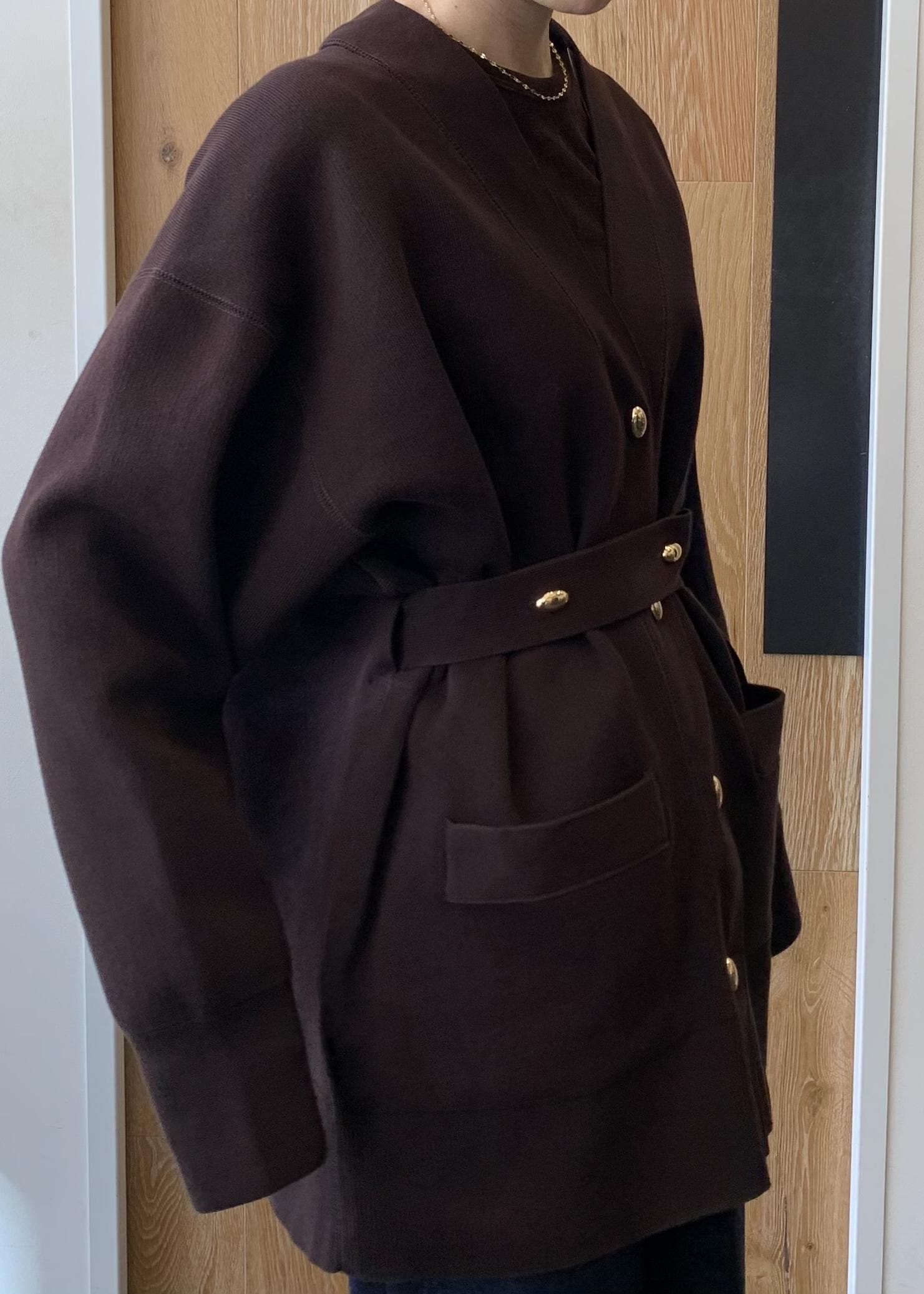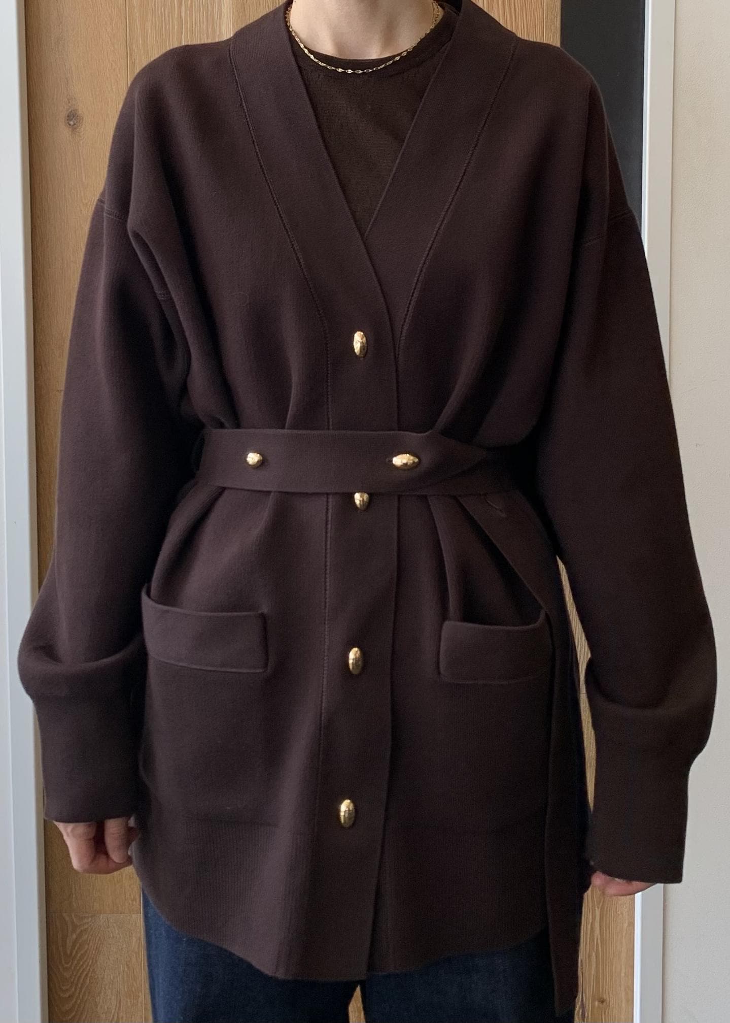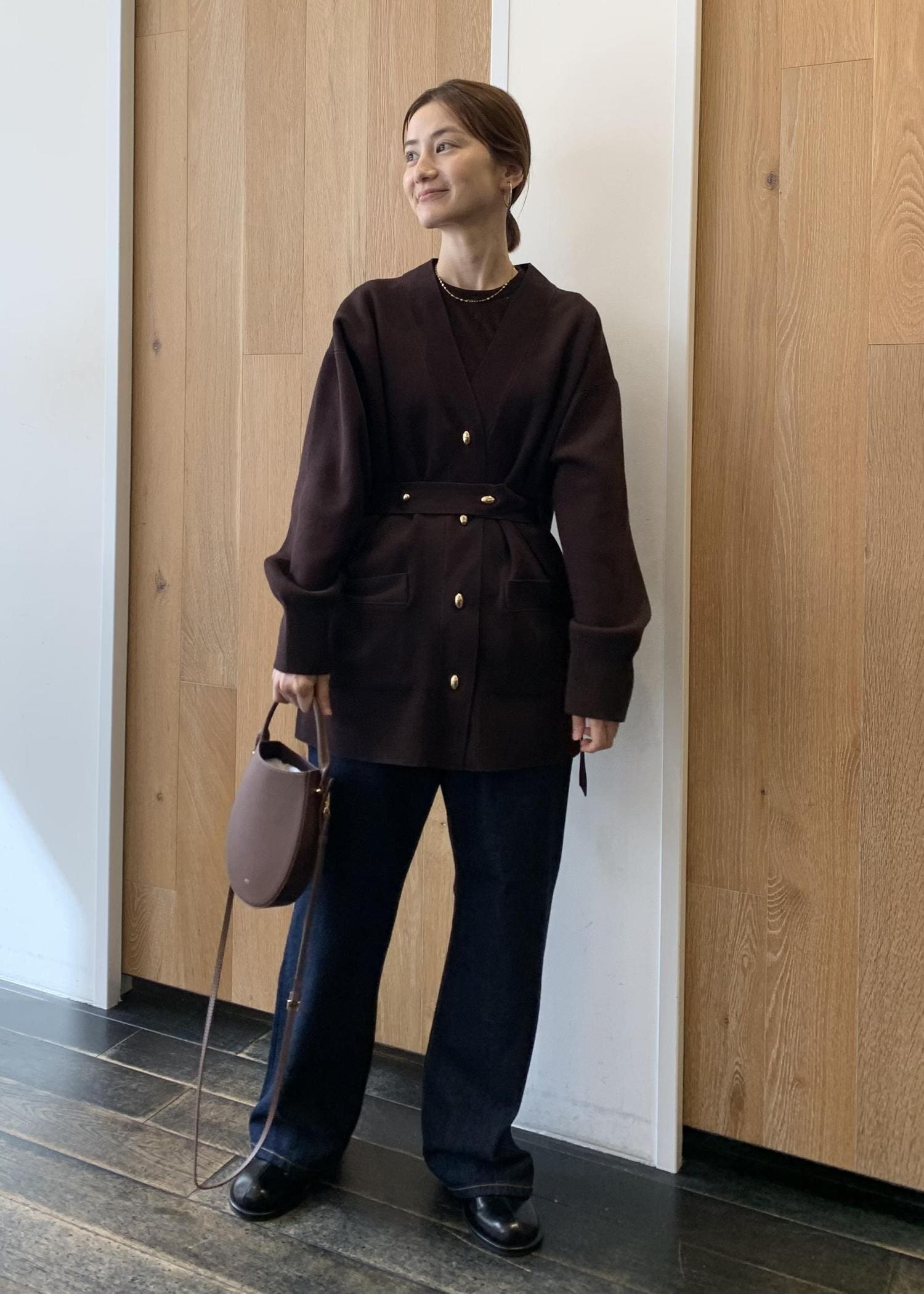 ADAM ET ROPÉ FEMME【サステナブル】マルチWAYベルテッドミドルカーディガンダークブラウン / F¥18,150レビュー去年も人気だったミドルカーディガンにベルトが付きました。金ボタンもポイントです。