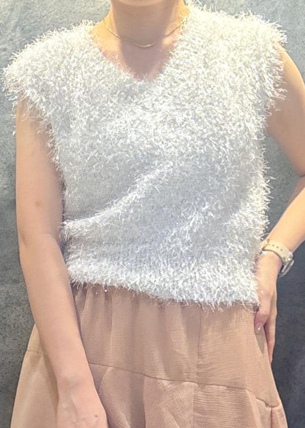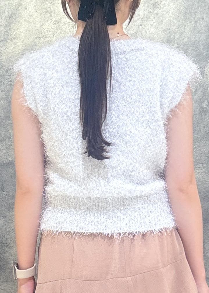 VIS【WEB限定サイズ:MT/着丈が選べる】【洗える】フェザーヤーンニットベストホワイト系 / M¥2,745レビュー身長155cmでお腹がしっかり隠れる長さです。