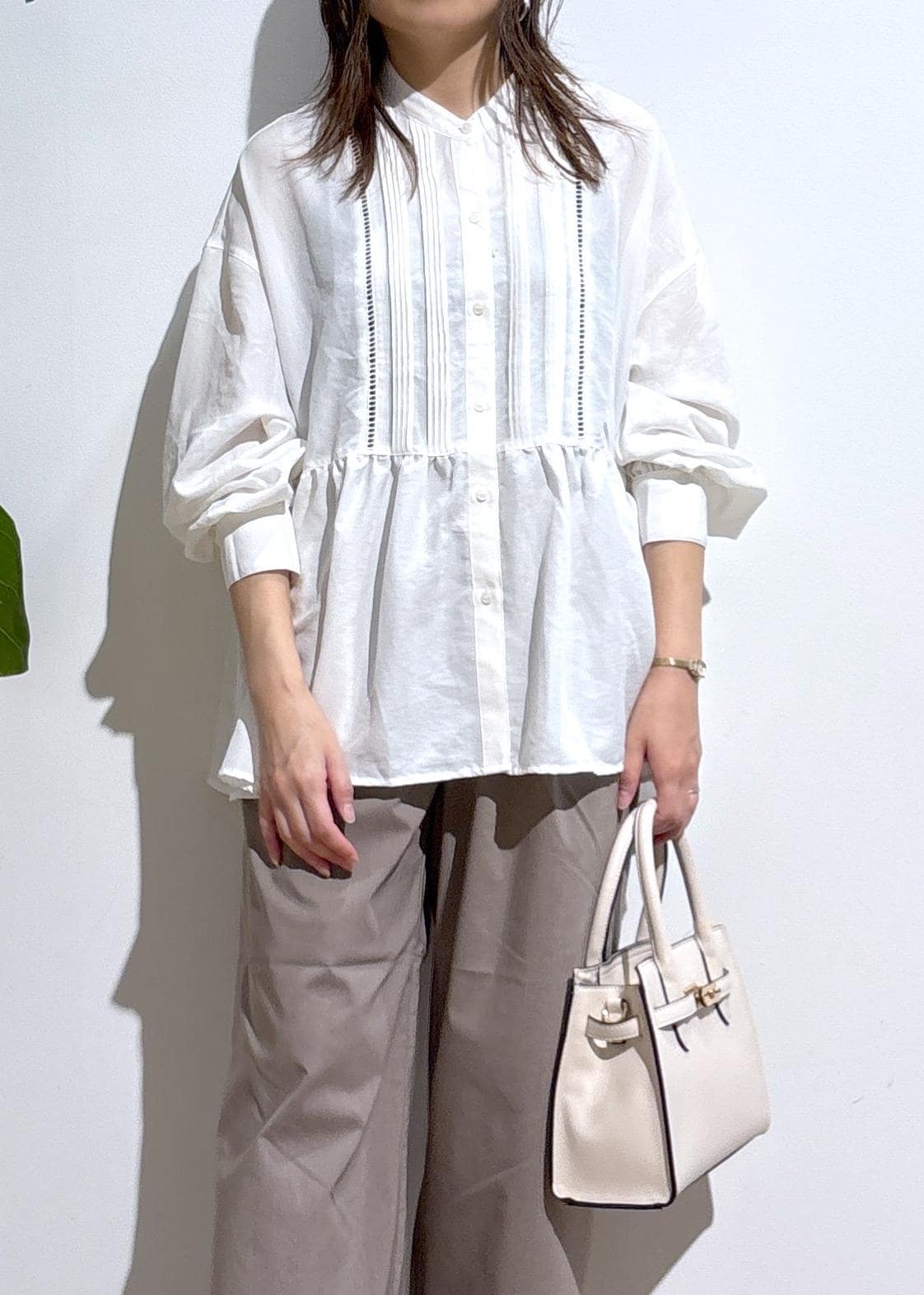 ピンタックデザインペプラムシャツ