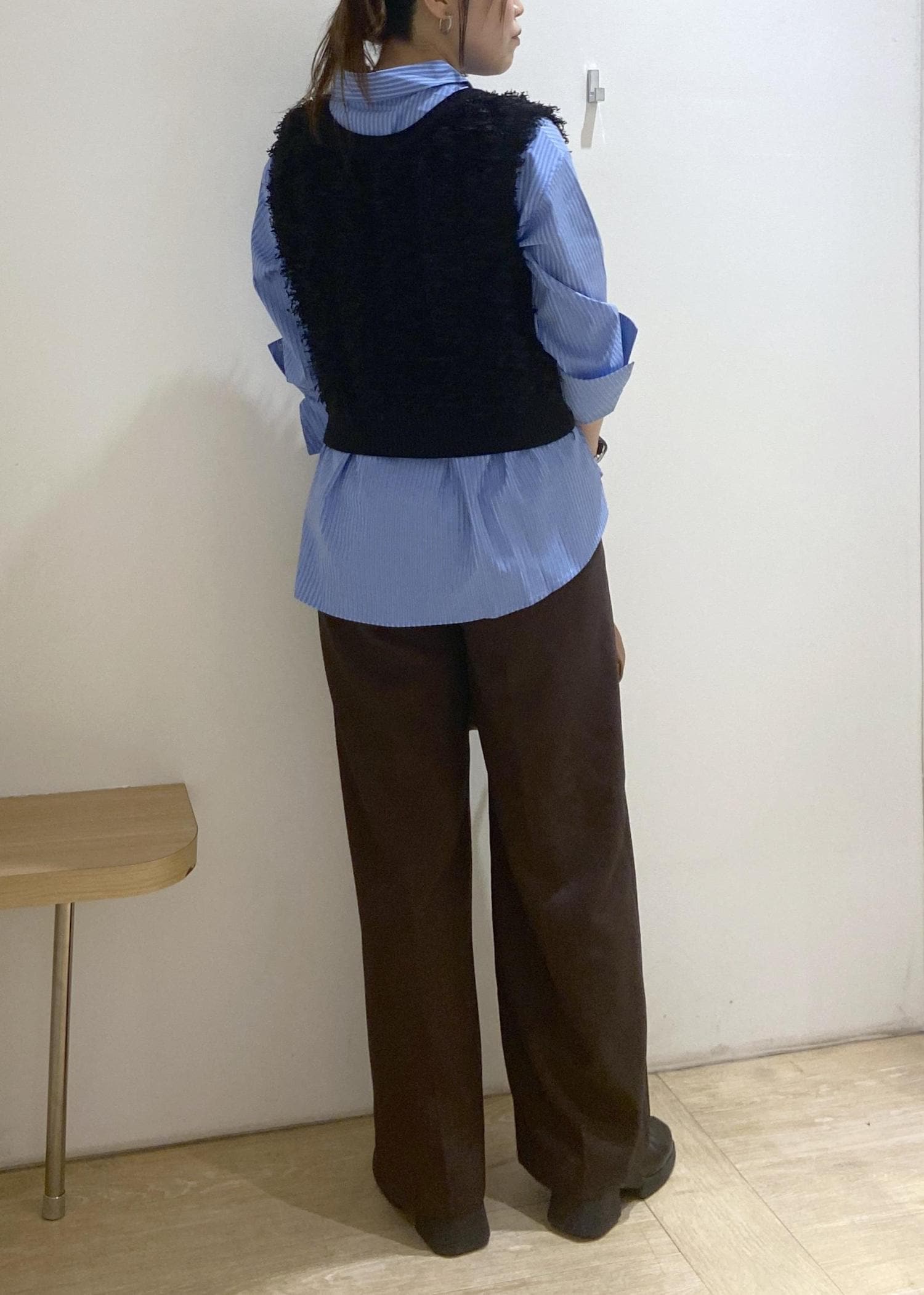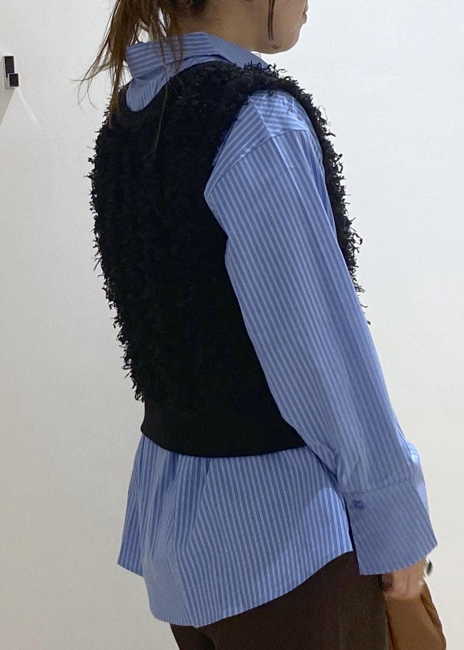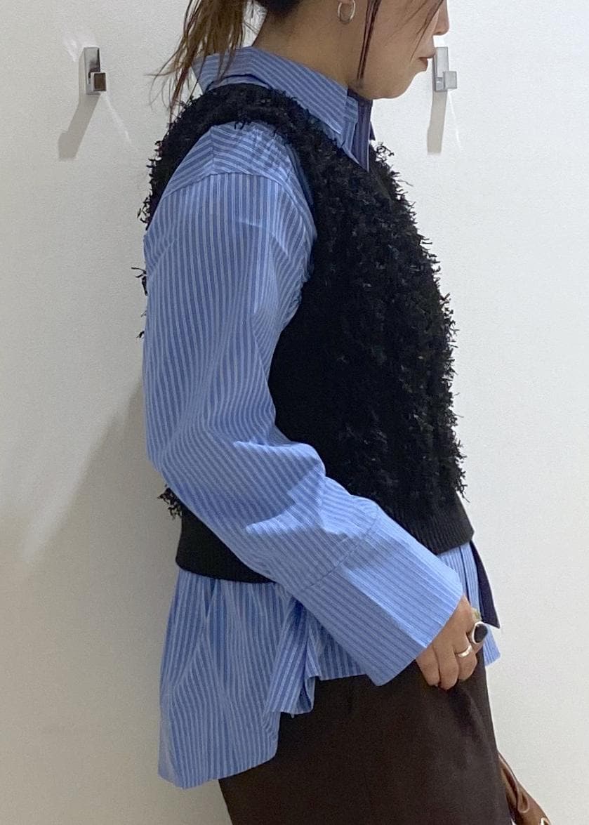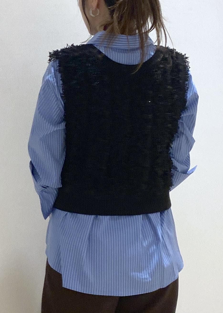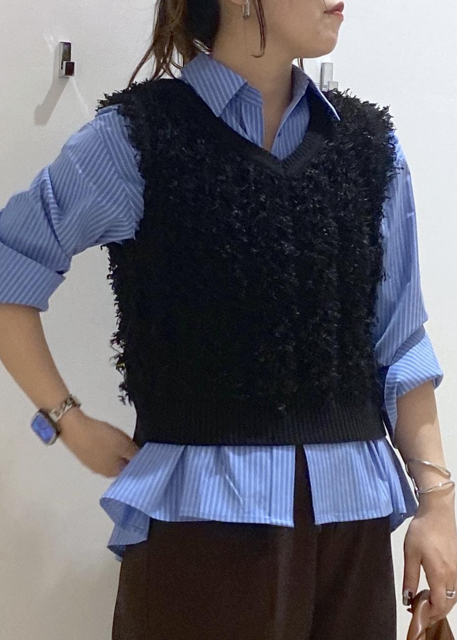 VIS【2WAY】フリンジニットベストブラック系 / F¥5,929レビュー大人でも着やすいフランジニットで、一枚でもシャツとレイヤードでもおすすめなアイテムです。