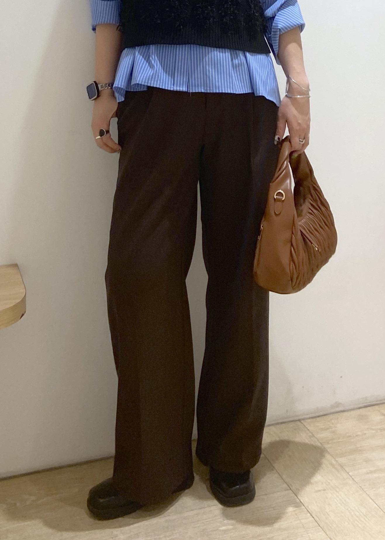 VIS【美easy】ウーリッシュワンタックワイドパンツ【セットアップ対応/洗える】ダークブラウン / L¥6,589レビューゆったりなウエストで、肌寒い季節に肌着や少し厚みのあるニットをインしやすいです。