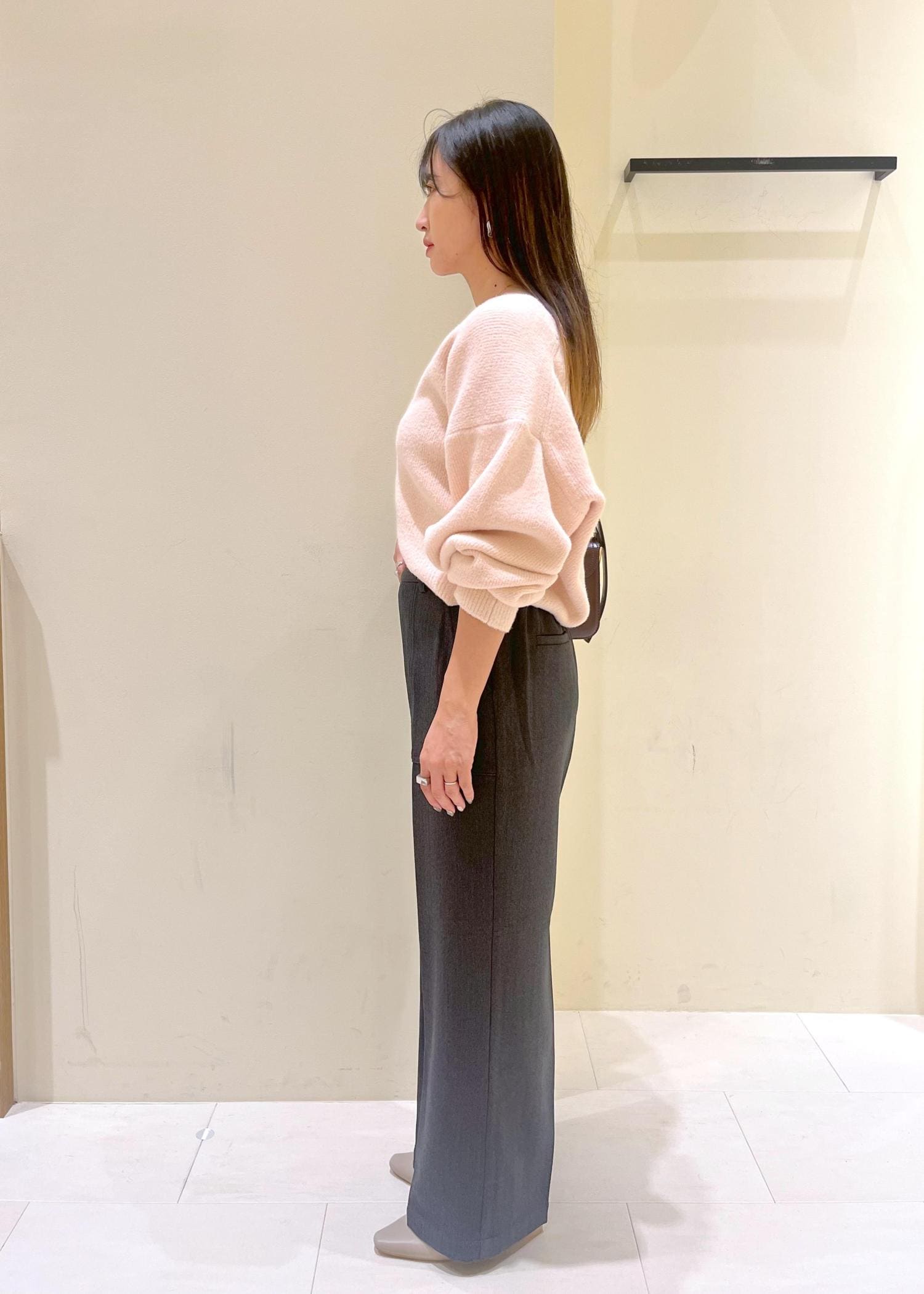 スッキリしたシルエットと丈感もしっかりあるので安心です。 -