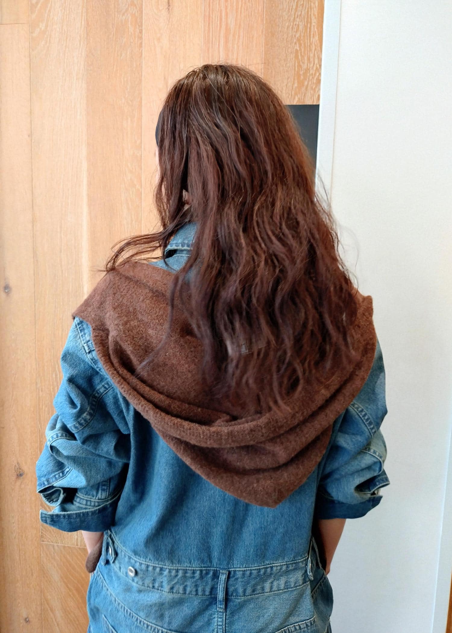 ADAM ET ROPÉ FEMMEBASOLマフラーニットキャップ&アームウォーマーブラウン / F¥17,600レビューフードとマフラーが一体になり、肩がけしてもこなれ感が出ます。