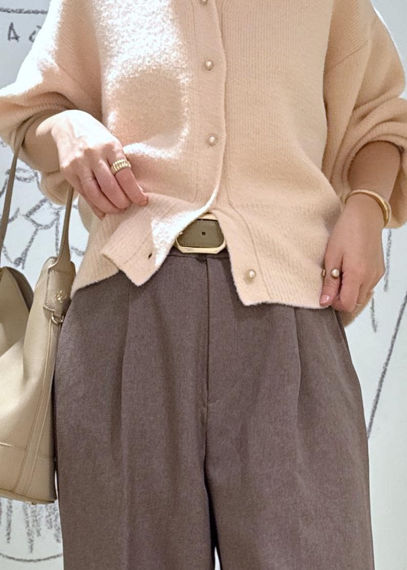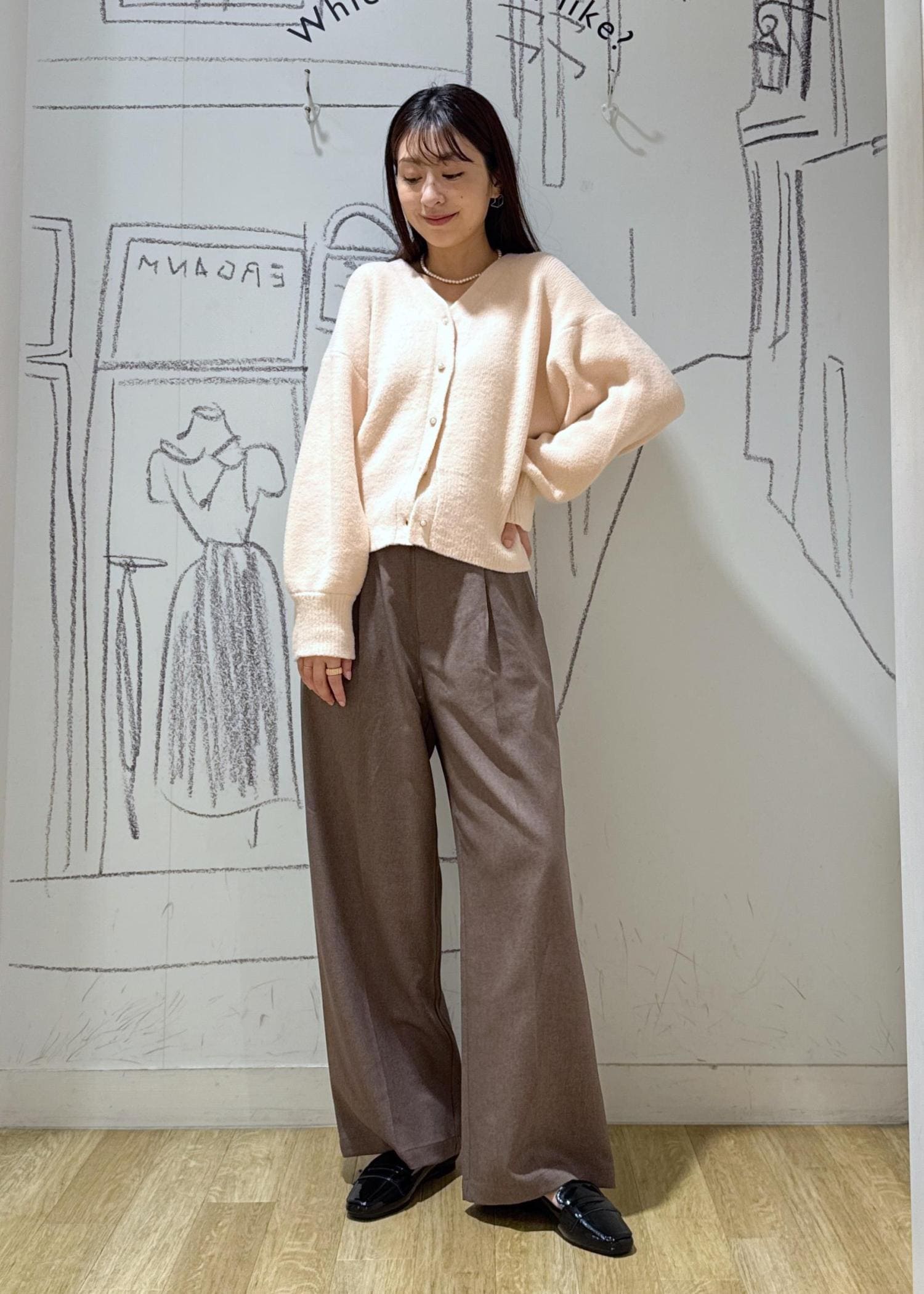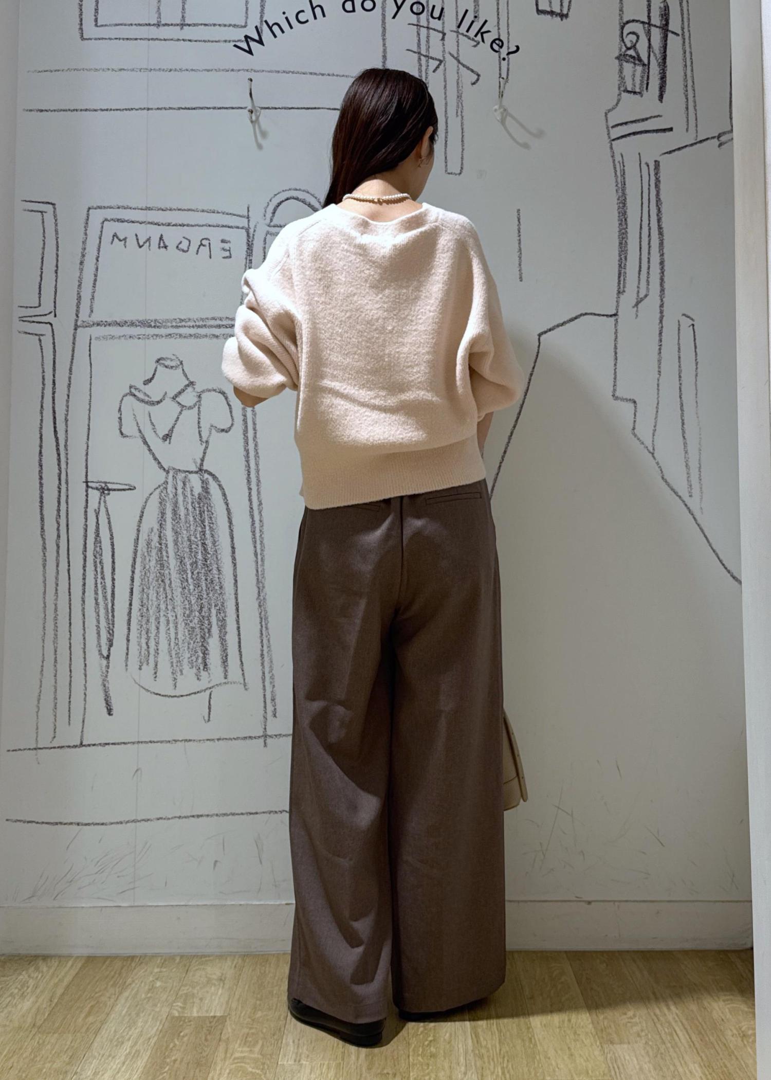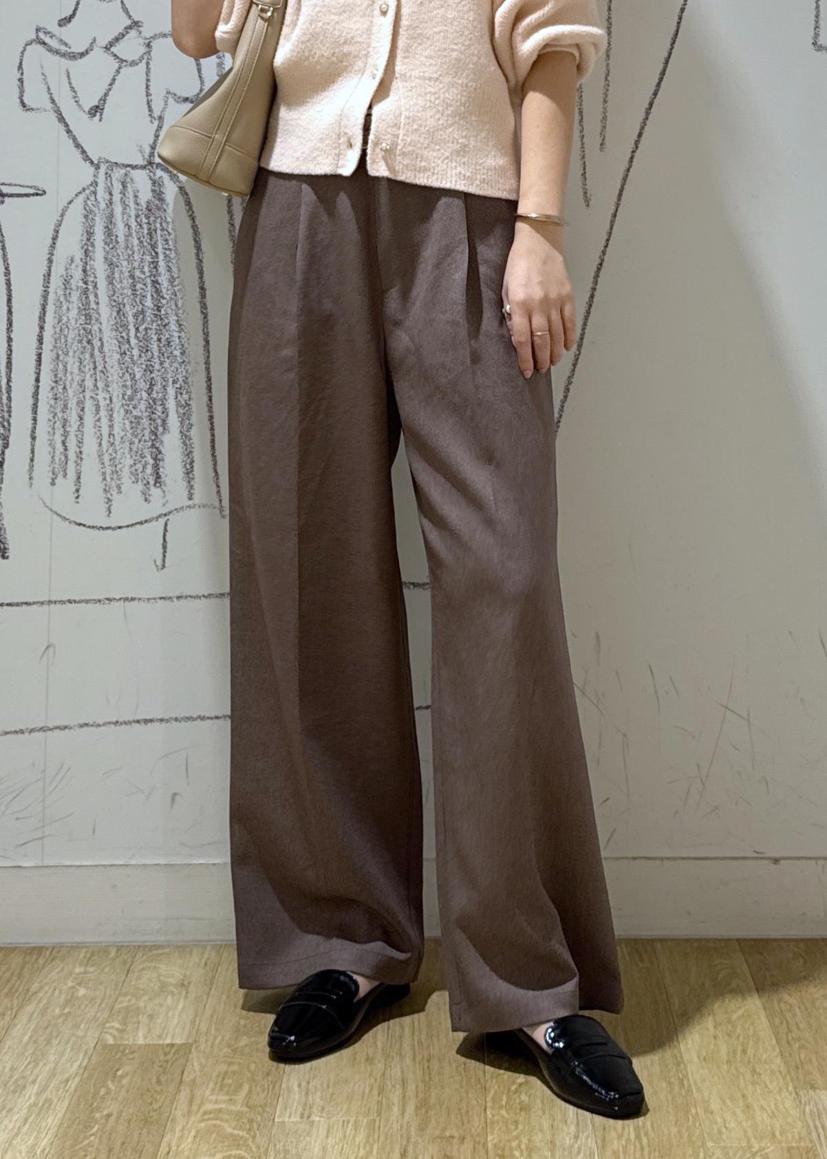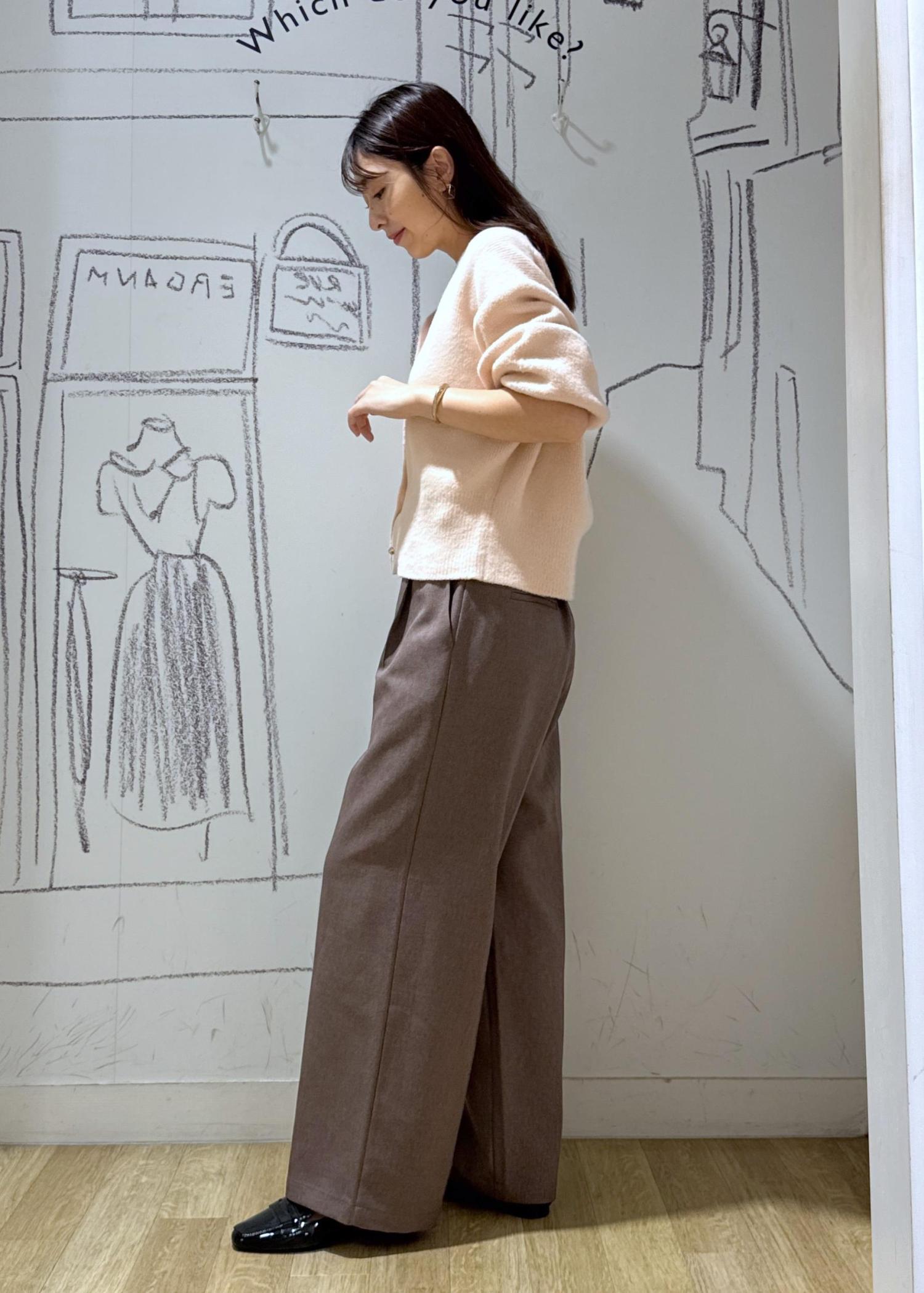 ROPÉ PICNICレディハンサムシリーズ ウールライクウエストタックセミワイドパンツ/セットアップ対応ベージュ系 / M¥5,489レビュー前回も人気だったパンツが再登場♪センタープレスやハリのある生地感は美シルエットと高見えを両立してくれます。カラーはベージュとブラウンの中間色といった感じです。162㎝でローヒールと合わせると丁度いいバランスで履けました。