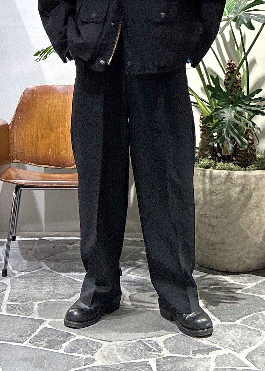 ADAM ET ROPÉ HOMMEハードクロス 2プリーツ スラックスブラック / M¥35,200レビューウエスト周りは大きすぎず、僕の体型でMでベルトは無くても腰できちんと止まるくらいのサイズ感でした。生地感とシルエットがとにかく美しく、履くだけでスタイリングの主役になるようなパンツです。